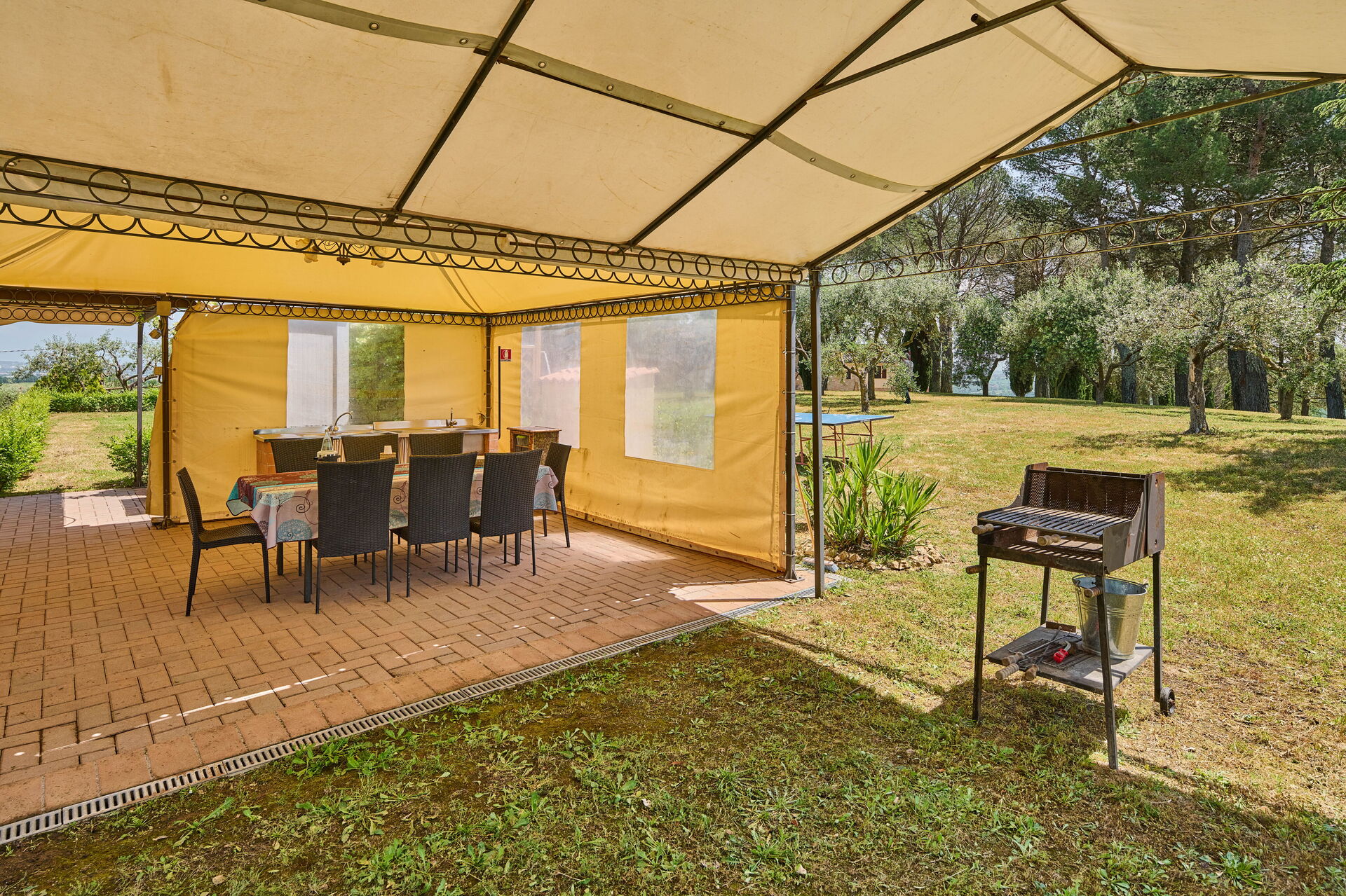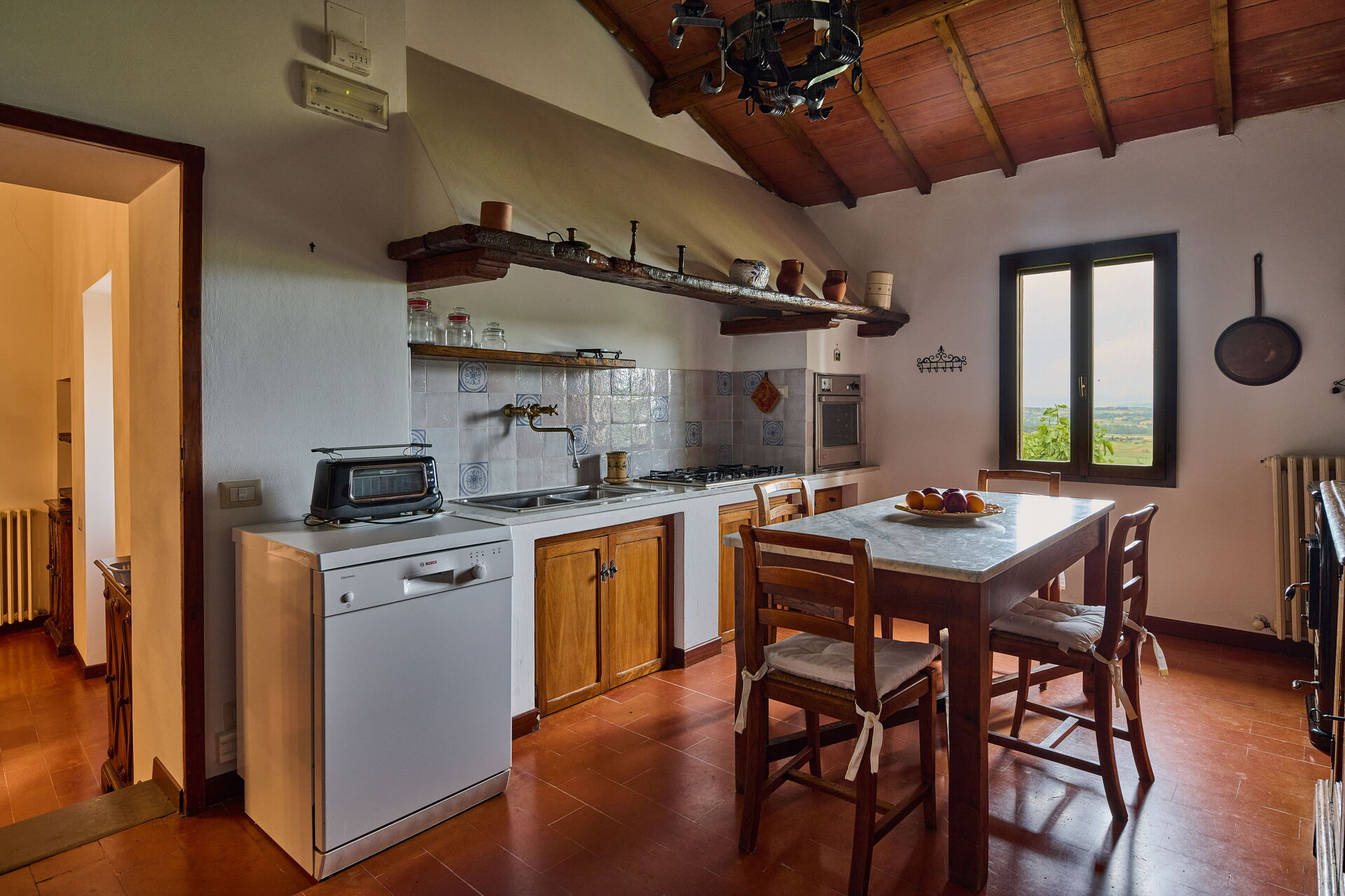 Bij aankomst wordt u ontvangen door de eigenaar of beheerder en vindt u een prachtige, schone en goed onderhouden woning met uitzicht over de heuvels ideaal voor een ontspannen vakantie in Umbrië. Hoe u de dagen ook doorbrengt - met excursies, winkelen, musea bezoek of rijdende door het prachtige landschap, zodra u thuis komt kunt u uitrusten samen met familie en vrienden bij het zwembad voor een perfecte afsluiting van nog weer een dag in Umbrië. Buiten zijn er ook een patio, barbecue en speeltuin. Eten met vrienden en familie is een grote onderdeel van de Italiaanse cultuur. Maak gebruik van de goed uitgeruste keuken om maaltijden te bereiden met lokale producten terwijl u op vakantie bent. De keuken biedt o.a. een koffiezetapparaat, magnetron oven, broodrooster, fornuis en ijskast, en natuurlijk ook voldoende servies en bestek voor minstens tien personen. Eet buiten net zoals een echte Italiaan, een patio met tuinmeubilair is perfect om te genieten van het heerlijke eten, de familie en het mooie Italiaanse klimaat.