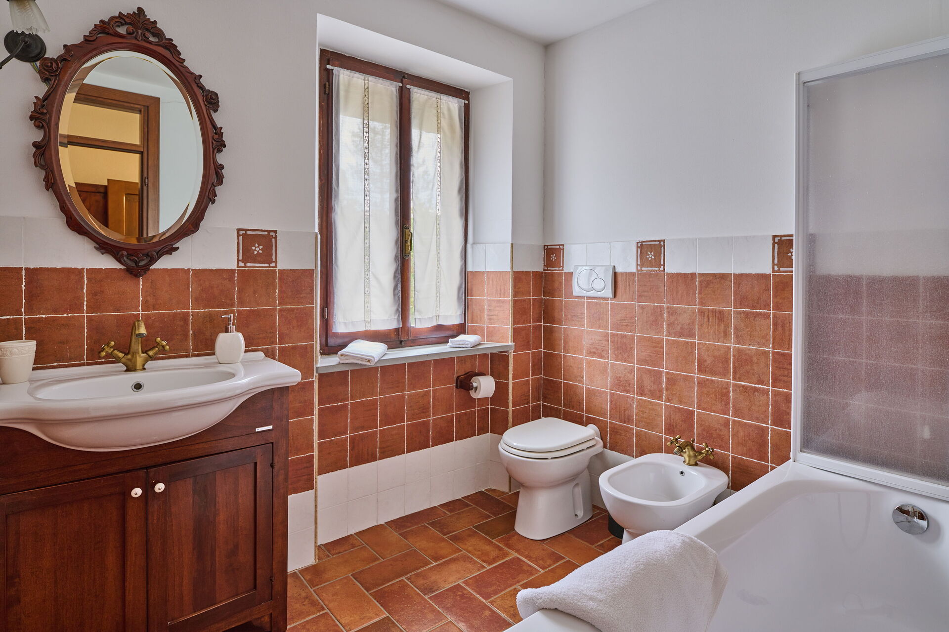 Badkamer 3 (10 m2): wastafel, toilet , bidet, douche, haardroger, wasmachine, hor.