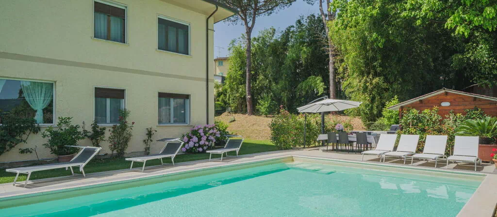 Gerry House 697.2 7 Personen 3 Slaapkamers 2 Badkamers van€ 130 per nacht Beschrijving Huis met 2 woningen "Gerry House", gerenoveerd in 2024, omgeven door velden. 2 appartementen in de woning. 2.4 km van het centrum van Camaiore, aan de rand van de plaats, 8.5 km van het centrum van Lido di Camaiore, 26 km van het centrum van Lucca, 8.5 km van zee, 8.5 km van het strand. Voor medegebruik: openluchtzwembad (12 x 6 m, 130 cm diepte, seizoensgebonden beschikbaarheid: 04.Mei. - 04.Okt.). Buitendouche, tuinmeubelen, barbecue, onderhoud zwembad door de eigenaar/tuinman. Voor alleengebruik: terrein met gazon en planten, wilde tuin. In het huis: centrale verwarming, wasmachine (voor medegebruik), Verwarming ter plaatse te betalen (20.Mrt. - 30.Okt.), verwarming alleen beschikbaar van 31.Okt. - 19.Mrt.. Parkeerplaats bij het huis. Levensmiddelenwinkel 1.3 km, supermarkt 1.4 km, restaurant 1.6 km, bar 950 m, bakkerij 750 m, fietsverhuur 11 km, bushalte 750 m, treinstation "Viareggio" 110 m, zandstrand "Lido di Camaiore" 8.5 km. Attracties in de buurt: Pietrasanta 9 km, Forte dei Marmi 16 km, Marina di Pietrasanta 12 km, Pisa 32 km, Carrara Cave Fantiscritti 45 km, Riomaggiore 5 Terre 78 km. Bekende meren kunnen gemakkelijk worden bereikt: Torre del Lago 17 km, Lago di Massaciuccoli 24 km. Wandelgebied Antro del Corchia Levigliani 28 km, Grotta all´Onda Casoli 12 km. Auto noodzakelijk. De eigenaar accepteert geen jeugdgroepen. Vergelijkbare accommodaties kunnen worden geboekt. De omgeving is gevoelig voor geluidsoverlast. Gelieve geen lawaai te maken en de rust te bewaren. Faciliteiten Zwembad Internet Internet Wifi Tuin Babybed Parkeren Afbetalingsplan Ligging Camaiore, Toscane, Italië Loading Lees Meer over de Omgeving van Camaiore Colette Fitzpatrick Villa Spotlight: De Meest Romantische Vakantie in Toscane in Villa Anna Read Colette Fitzpatrick Ontdek De Toscaanse Paleizen En Kastelen Die Gehuurd Kunnen Worden Op Onze Website Read Colette Fitzpatrick Villa Spotlight: Geweldig Uitzicht Op Toscane In La Casa Dei Limoni Read Colette Fitzpatrick Villa Spotlight: Een Ontsnapping Aan De Toscaanse Kust In Villa Maestosa Read Donna Quinn Bezoek het charmante stadje Camaiore in de heuvels van Versilia! Read Donna Quinn Bezoek Oude Forten aan de Kust van Versilia Read Eenvoudig & Veilig Vertrouwd door meer dan 300.000 gasten wereldwijd, waarvan velen terugkerende klanten zijn. Ontdek waarom boeken bij Easy Reserve de juiste keuze is. Waarom boeken via ons? Easy Reserve Bedrijf Recensies 4.77 /5 Uitstekend 3516 Bedrijf Recensies Persoonlijk Advies Neem contact met ons op voor hulp tijdens het selecteren van een vakantiehuis voor uw verblijf in het mooie Toscane. US: 1-800-761-6681 Bel ons BE: +32-7-848-3140 DK: +45-7876-8381 FR: +33-9-7512-2847 DE: +49-322-1421-9934 IE: +353-1-699-4137 IT: +39-055-535-7096 NL: +31-85-273-7065 ES: +34-900-933-285 GB: +44-560-065-6722 GB: 0-800-047-0256 US: 1-800-761-6681 US: +1-859-300-0072 Contact met EasyReserve Laagste Prijs Garantie Bij het huren van een vakantiehuis in Italië garanderen wij dat de prijs de laagste prijs online is. Een eenvoudige, probleemloze garantie. Duizenden tevreden klanten. Laagsteprijsgarantie