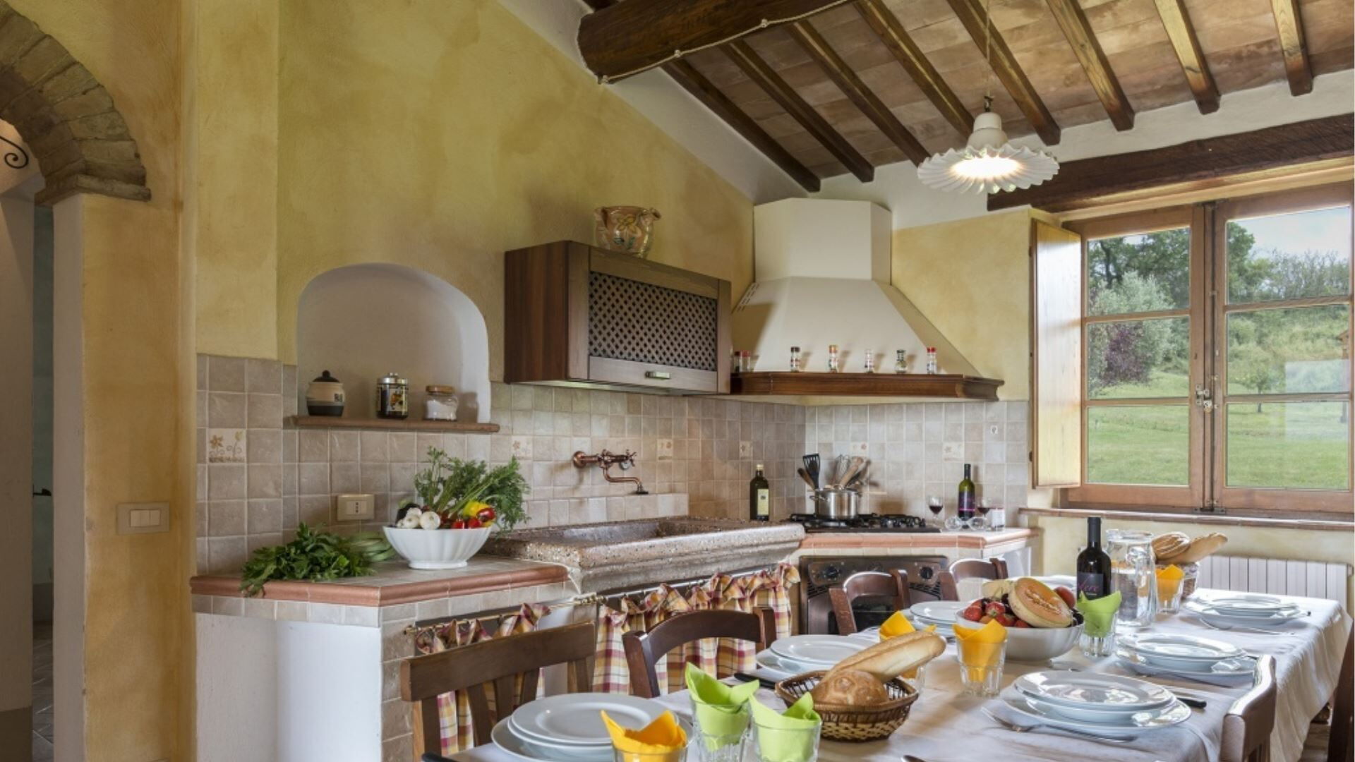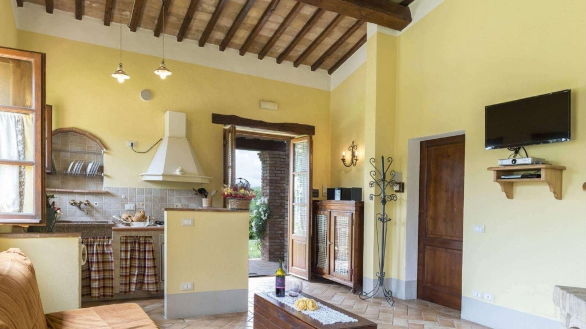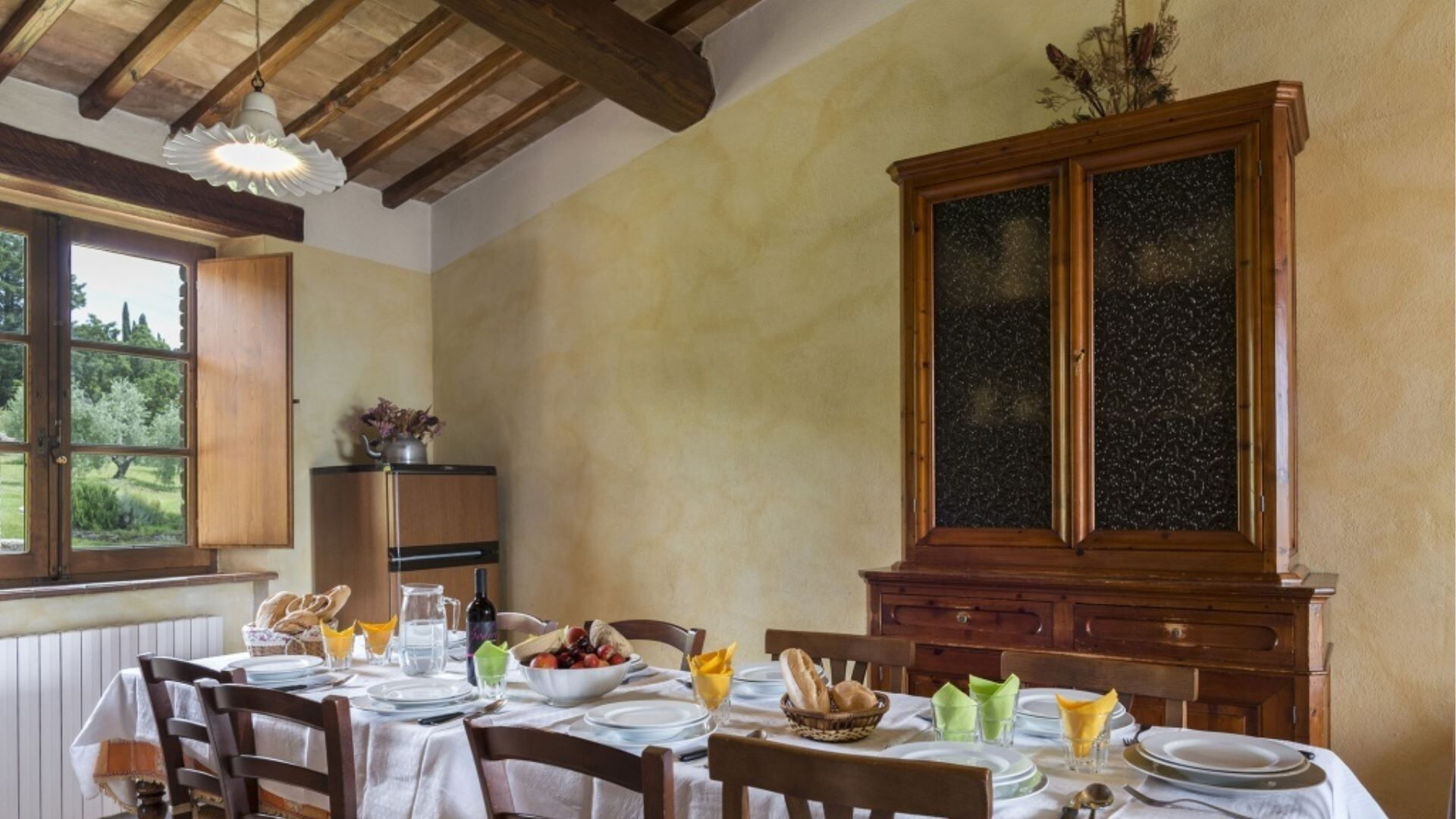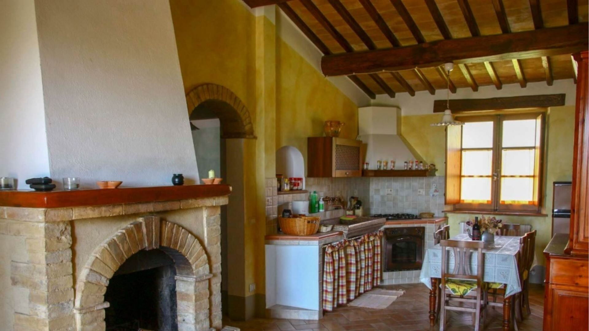 Uw verblijf in Podere Aurora omvat een uitgebreid scala aan voorzieningen die zijn ontworpen om comfort en gemak gedurende uw vakantie te waarborgen. De keukens in beide appartementen zijn volledig uitgerust met moderne apparatuur waaronder een koelkast, ventilatoroven en magnetron voor efficiënte maaltijdbereiding. Het appartement Faggio beschikt daarnaast over een compacte vaatwasser om het opruimen na het dineren te vereenvoudigen. Voor entertainment vindt u een televisie met Satelliet TV-toegang die internationale zenderopties biedt. Elk appartement beschikt over een traditionele open haard compleet met grilaanzetstukken en accessoires, wat een gezellige ambiance creëert tijdens koelere avonden en een alternatieve kookmethode biedt. Het barbecuegedeelte buiten onder de pergola biedt een andere uitstekende optie voor het bereiden van maaltijden terwijl u geniet van de tuinomgeving. Beide open haarden zijn uitgerust met alle benodigde gereedschappen en accessoires voor veilig en gemakkelijk gebruik. Deze voorzieningen combineren om een goed ingericht leefomgeving te creëren die voorziet in uw culinaire, entertainment- en comfortbehoeften.