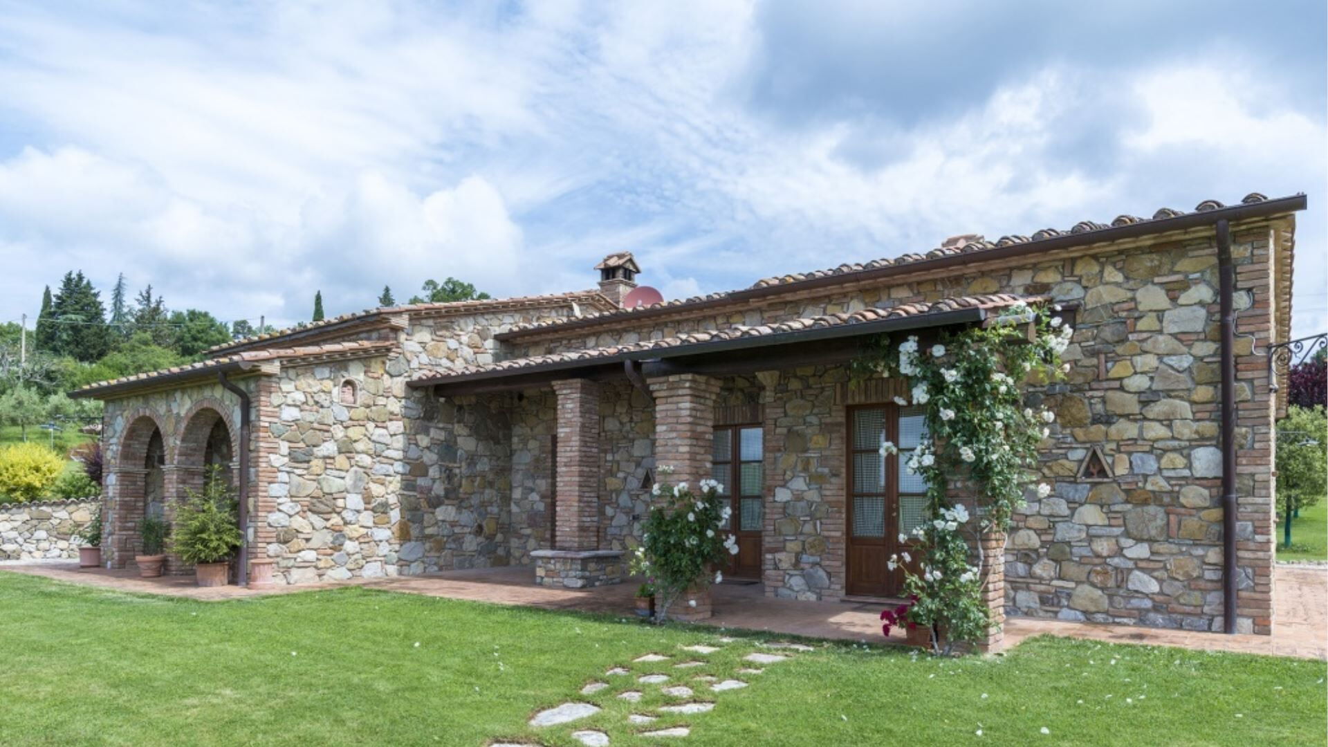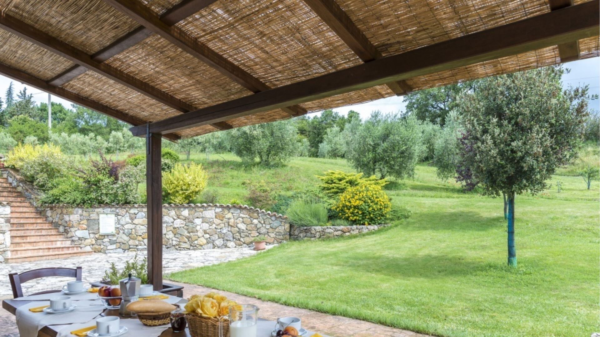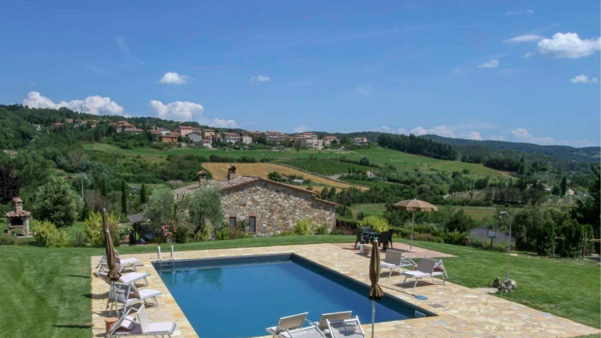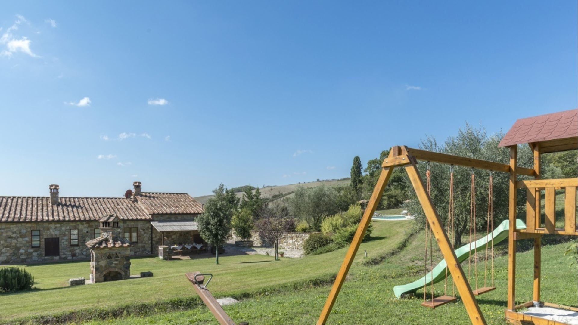 De buitenruimtes van Podere Aurora vormen een groene oase ontworpen voor zowel rustige ontspanning als gezinsvermaak. Het terrein is omgeven door een goed onderhouden tuin die is afgesloten met een hek met een gemiddelde hoogte van 160 centimeter, wat privacy en veiligheid biedt gedurende uw verblijf. Het middelpunt van de buitenruimte is het privézwembad, dat operationeel is tijdens het warme seizoen en verfrissende verkoeling biedt tijdens zomerdagen. Naast het zwembad vindt u comfortabele ligstoelen geplaatst voor zonnebaden en ontspanning. Een charmante pergola biedt een schaduwrijke buiteneetruimte waar u maaltijden kunt genieten die zijn bereid op het speciale barbecuegedeelte. De veranda strekt zich uit langs de villa met meerdere toegangspunten vanuit de binnenruimtes, waardoor binnen- en buitenleven naadloos worden verbonden. Kinderen kunnen genieten van het aangewezen speelgedeelte binnen het beveiligde tuinterrein, wat deze buitenomgeving geschikt maakt voor gezinnen.