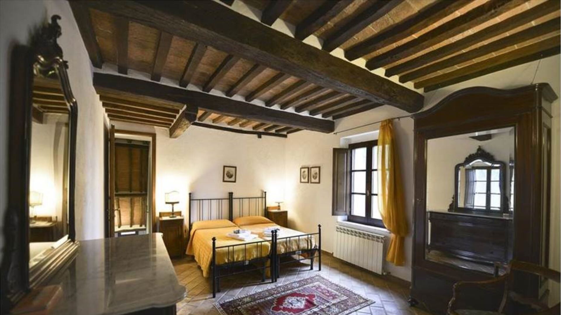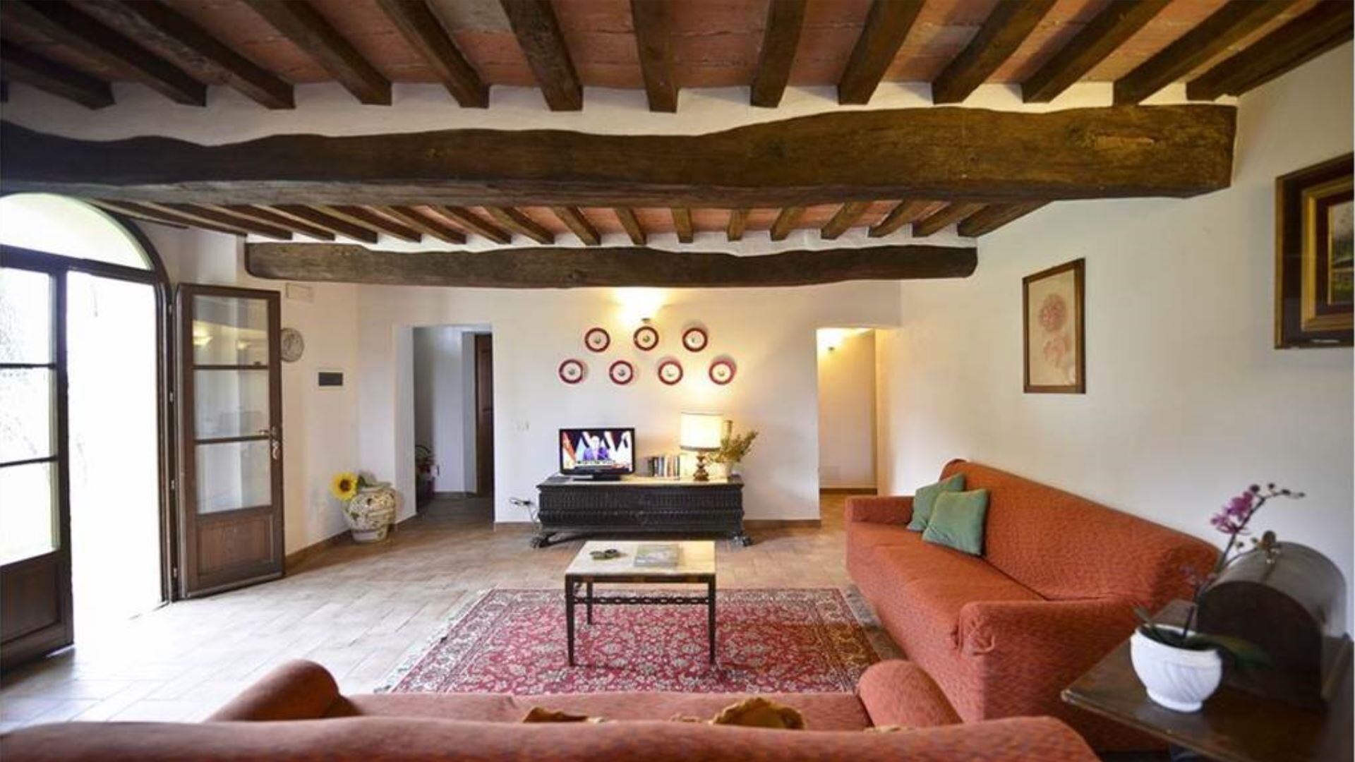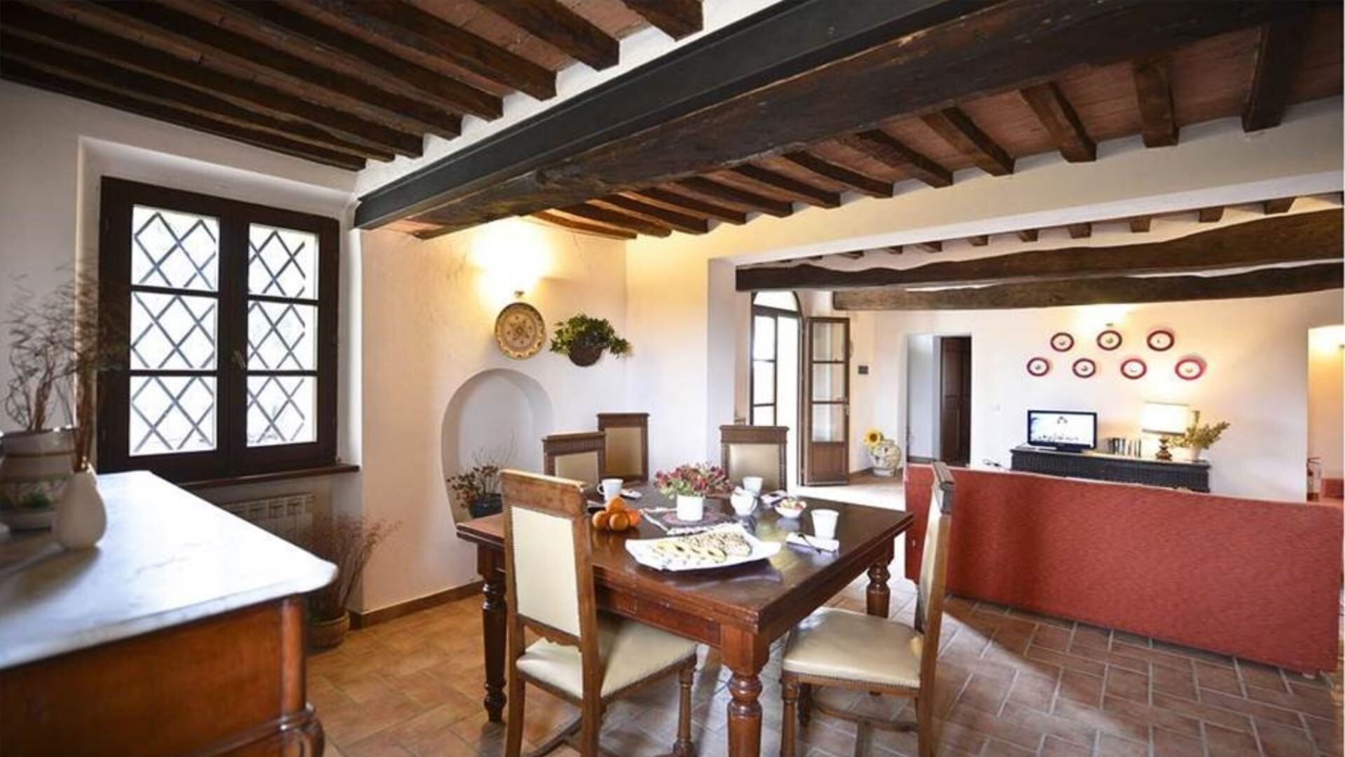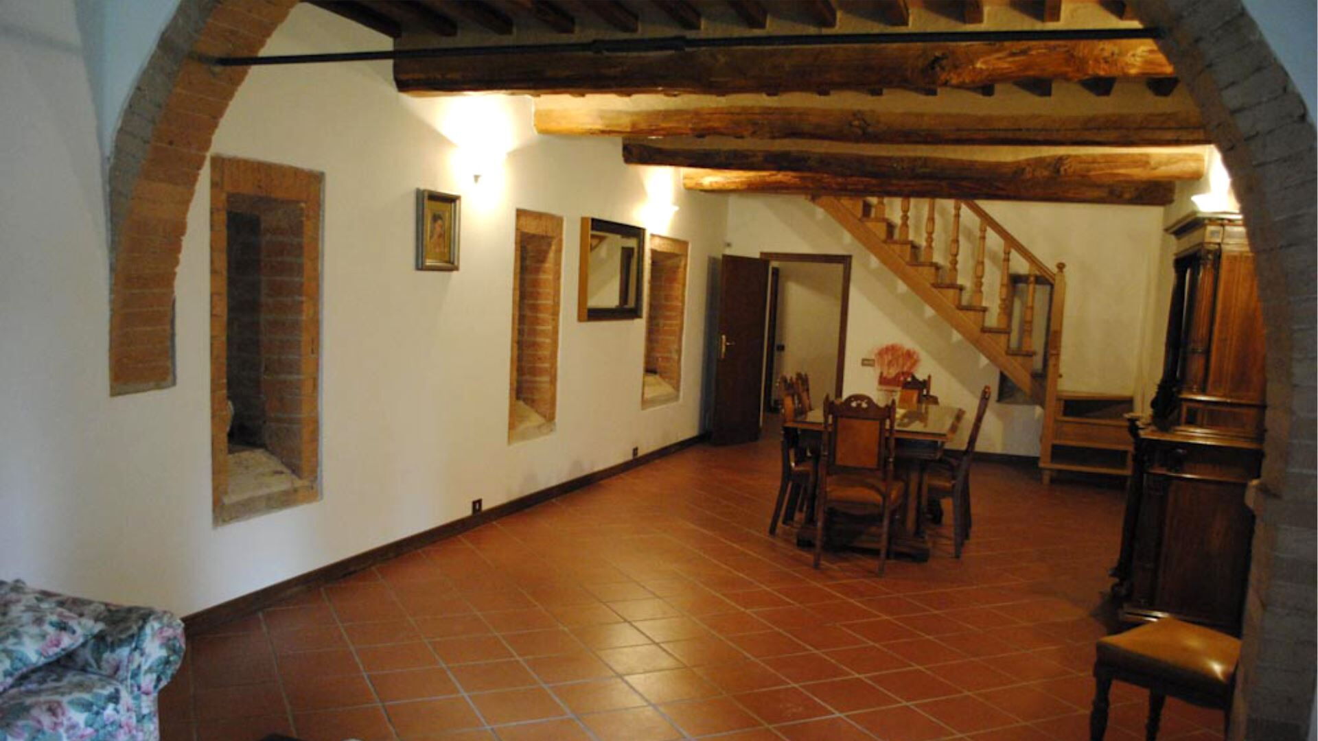 De villa is zorgvuldig uitgerust met een uitgebreid scala aan moderne voorzieningen om een comfortabel en gemakkelijk verblijf te garanderen. De privétuin biedt een exclusief buitenheiligdom voor villagasten gedurende hun verblijf. Entertainmentopties omvatten televisie met satellietzenders, die een verscheidenheid aan internationale programma's bieden voor uw vrije tijd. De uitnodigende open haard in de woonkamer op de begane grond creëert een gezellige sfeer tijdens koelere avonden en voegt authentiek karakter toe aan de leefruimte. De keukenfaciliteiten zijn bijzonder goed ingericht en beschikken over een vaatwasser die het opruimen na maaltijden vereenvoudigt en meer tijd vrijmaakt voor ontspanning. De speciale wasruimte is voorzien van een wasmachine, waardoor gasten gemakkelijk hun kledingbehoeften kunnen beheren tijdens langere verblijven. Voor buitenkookliefhebbers is er een barbecue beschikbaar in de tuin, perfect voor het bereiden van traditionele gegrilde maaltijden terwijl u geniet van het Italiaanse platteland. Horren zijn boven in alle slaapkamers en badkamers geïnstalleerd, wat comfortabele slaap en bescherming tijdens warmere maanden garandeert. De mogelijkheid bestaat om twee eenpersoonsbedden toe te voegen aan de bestaande configuratie, wat flexibiliteit biedt voor grotere groepen.