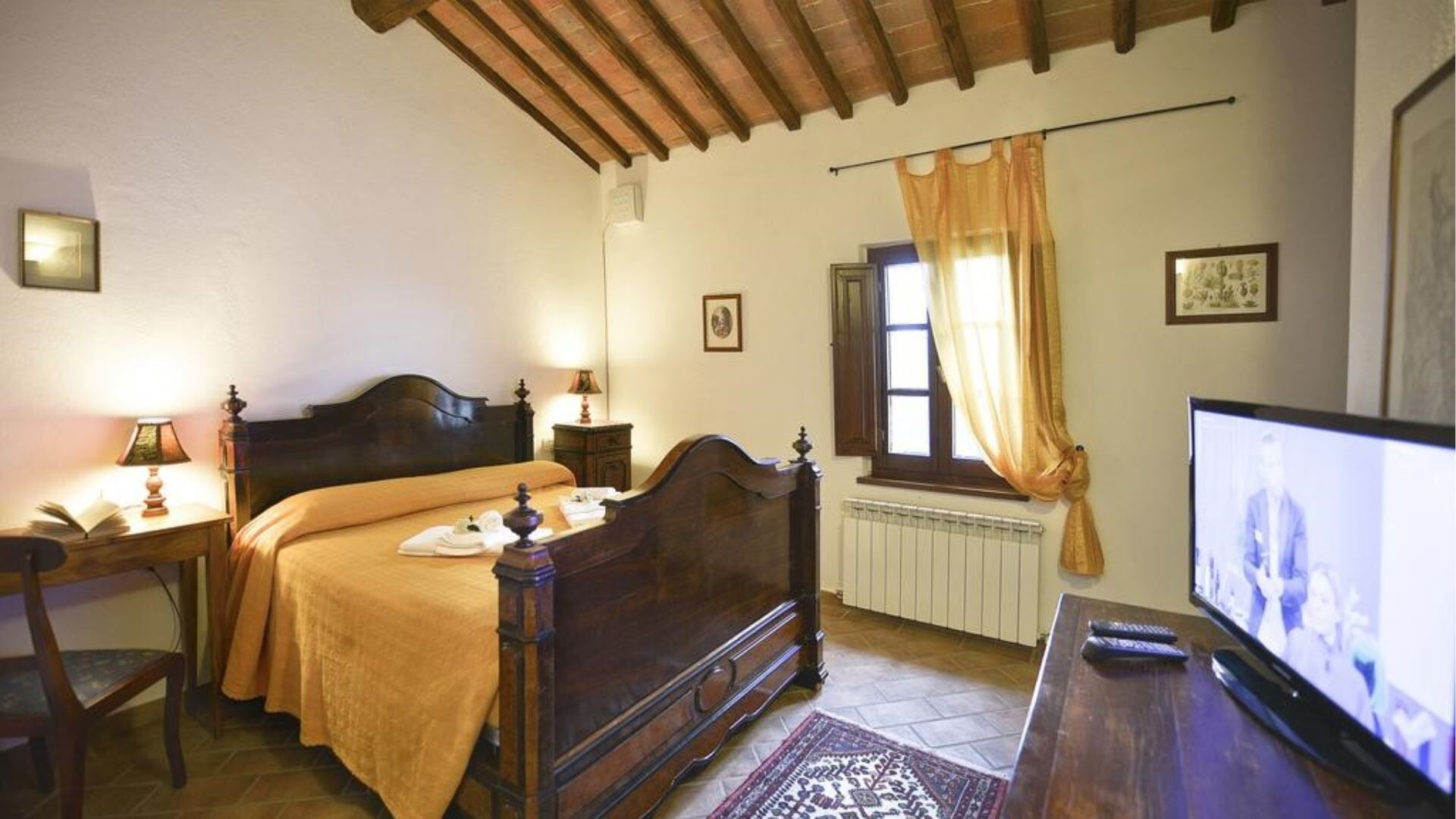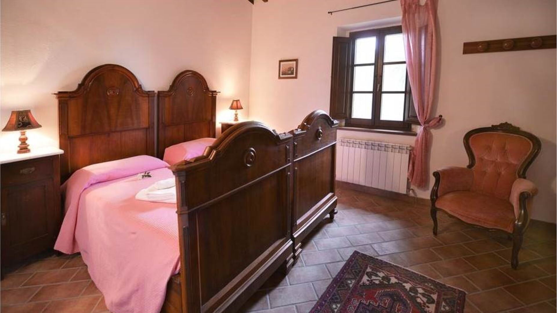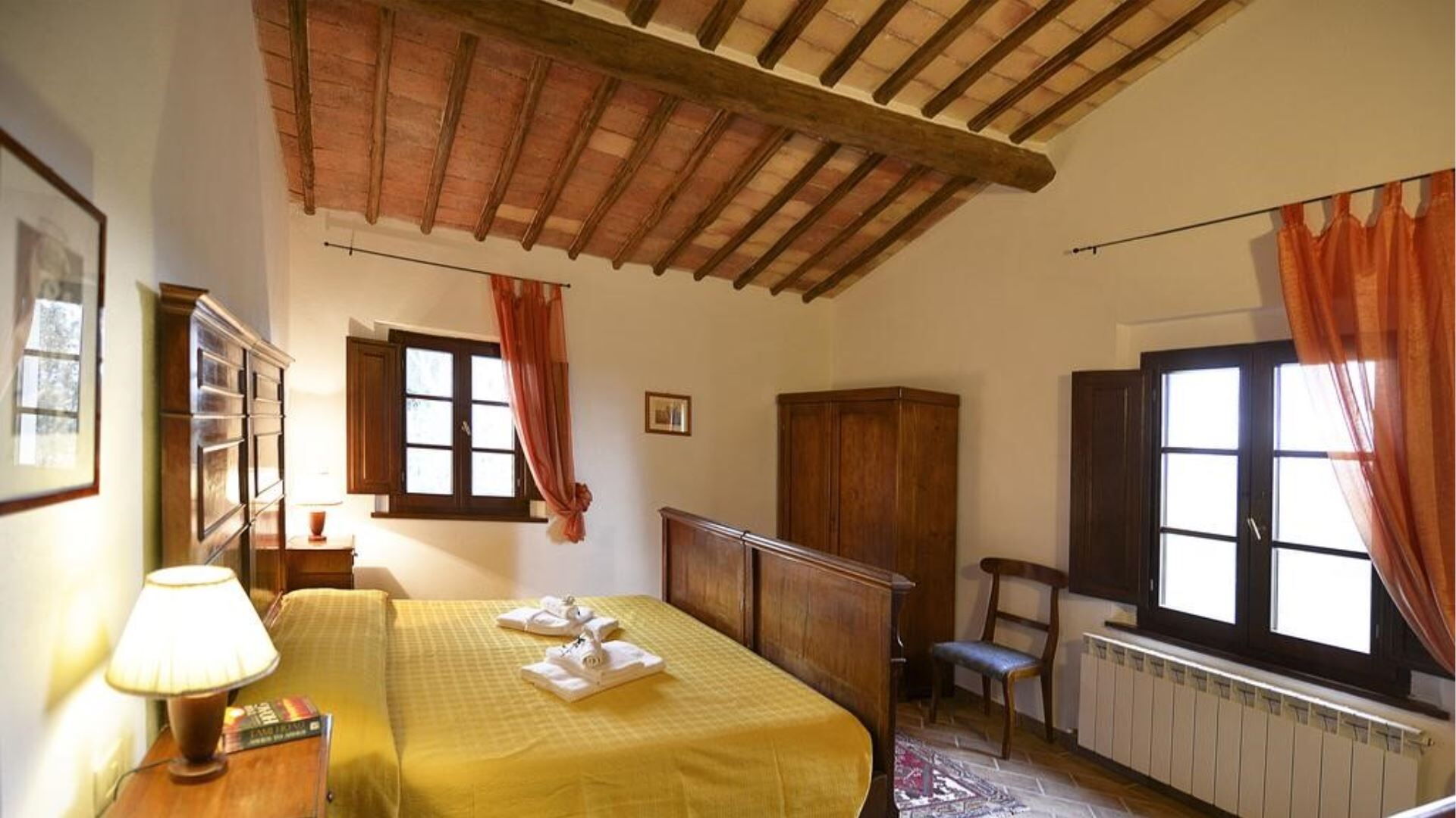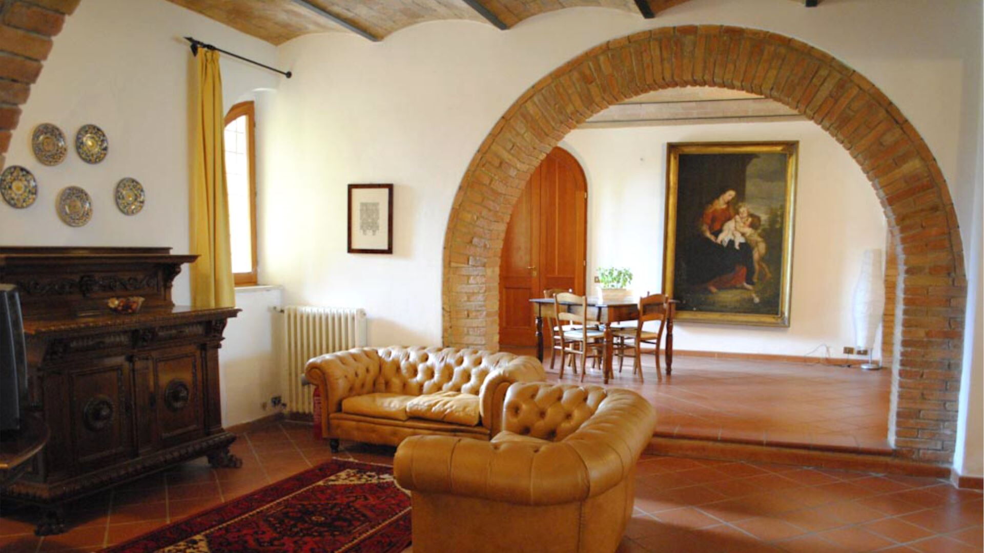 De villa is zorgvuldig uitgerust met een uitgebreid scala aan moderne voorzieningen om een comfortabel en gemakkelijk verblijf te garanderen. De privétuin biedt een exclusief buitenheiligdom voor villagasten gedurende hun verblijf. Entertainmentopties omvatten televisie met satellietzenders, die een verscheidenheid aan internationale programma's bieden voor uw vrije tijd. De uitnodigende open haard in de woonkamer op de begane grond creëert een gezellige sfeer tijdens koelere avonden en voegt authentiek karakter toe aan de leefruimte. De keukenfaciliteiten zijn bijzonder goed ingericht en beschikken over een vaatwasser die het opruimen na maaltijden vereenvoudigt en meer tijd vrijmaakt voor ontspanning. De speciale wasruimte is voorzien van een wasmachine, waardoor gasten gemakkelijk hun kledingbehoeften kunnen beheren tijdens langere verblijven. Voor buitenkookliefhebbers is er een barbecue beschikbaar in de tuin, perfect voor het bereiden van traditionele gegrilde maaltijden terwijl u geniet van het Italiaanse platteland. Horren zijn boven in alle slaapkamers en badkamers geïnstalleerd, wat comfortabele slaap en bescherming tijdens warmere maanden garandeert. De mogelijkheid bestaat om twee eenpersoonsbedden toe te voegen aan de bestaande configuratie, wat flexibiliteit biedt voor grotere groepen.