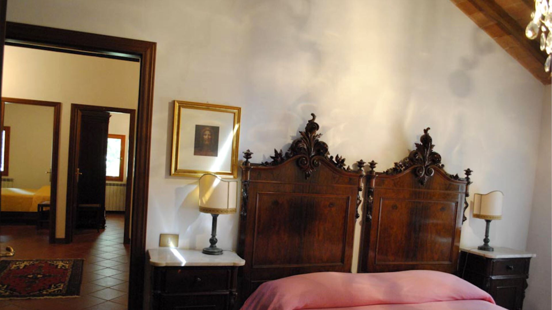 De villa biedt ruime accommodatie verspreid over drie verschillende verdiepingen, waarbij comfortabel plaats is voor maximaal 22 gasten in de 12 slaapkamers met 9 badkamers. De begane grond beschikt over een grote woonkamer die een indrukwekkende entreeruimte creëert, aangevuld met een speciale hoek met een speltafel voor vermaak. Dit niveau omvat twee servicebadkamers voor gemakkelijke gasttoegang, een charmante woonkamer met open haard, een formele eetkamer en een aparte ontbijtruimte. De volledig uitgeruste keuken op deze verdieping is voorzien van een oven, vriezer en vaatwasser, terwijl een aangrenzende wasruimte een wasmachine en gootsteen herbergt. De eerste verdieping is toegankelijk via een aantrekkelijke open houten trap en biedt onderdak aan het merendeel van de slaapvertrekken. Dit niveau bevat een tweepersoonsslaapkamer, een eenpersoonsslaapkamer en een badkamer met douche in één gedeelte. Verderop op deze verdieping vindt u een tweepersoonsslaapkamer, een slaapkamer met twee eenpersoonsbedden, een slaapkamer met een Frans bed en twee badkamers met douche. De uitgebreide indeling gaat verder met een comfortabele woonkamer, vijf extra tweepersoonsslaapkamers, één slaapkamer met twee eenpersoonsbedden, twee badkamers met zowel douche als bad, en één badkamer met douche. De zolderverdieping biedt een rustig toevluchtsoord met een tweepersoonsslaapkamer en een badkamer met douche, wat extra privacy en karakter biedt onder de balken.