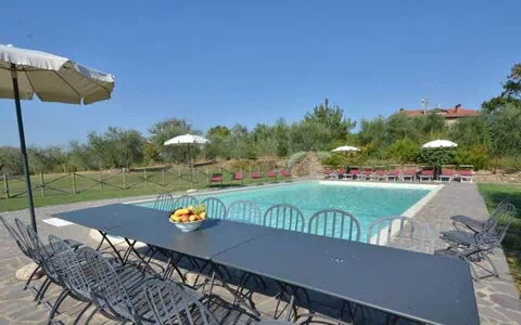 Villa Il Poggio is een elegante vakantiewoning in Marciano, Italië, zorgvuldig ontworpen om tot 18 gasten te huisvesten in ruim comfort. Deze onafhankelijke accommodatie bestaat uit een hoofdgebouw en een charmant bijgebouw, en biedt royale leefruimtes die perfect zijn voor grote gezinnen of groepen die op zoek zijn naar een authentiek Italiaans toevluchtsoord. De villa beschikt over internetverbinding via Wi-Fi door de gehele accommodatie, zodat u tijdens uw verblijf verbonden blijft, terwijl de ruime parkeerfaciliteiten handige ruimte bieden voor meerdere voertuigen. De accommodatie is volledig toegankelijk voor gasten met een beperking, met speciale voorzieningen en faciliteiten die zijn ontworpen om comfort en gemak van beweging te garanderen. Het verblijf ligt op 2 hectare prachtig omheind parklandschap, omgeven door essenhout, eikenbomen en elegante cipressen die een serene en besloten sfeer creëren.