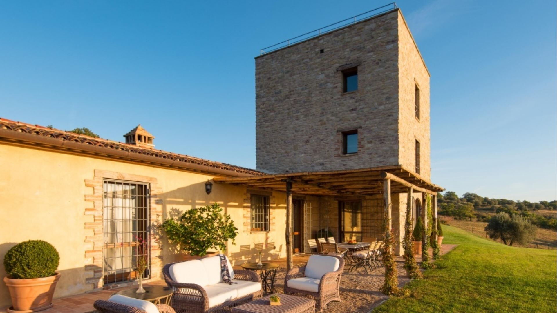 Villa Torre is gelegen op een exclusief Umbrisch landgoed dat duizenden hectaren ongerept bos en olijfgaarden omvat, bekend om zijn prachtige valleien, meren en rivieren. Het landgoed profiteert van zijn centrale ligging in Umbrië, waar de eenvoudige geneugten van het landleven kunst, geschiedenis en architectuur omarmen naast uitstekend eten en wijn. Het landgoedrestaurant bevindt zich op 12 km afstand, ongeveer 10 minuten met de auto, terwijl de Antognolla Golf Course gunstig is gepositioneerd bij de ingang van het landgoed. San Giovanni del Pantano met een kleine supermarkt ligt op slechts 2 minuten afstand. Pierantonio, een klein dorp met een goede selectie winkels en een bank, ligt op 8 km afstand, ongeveer 10 minuten met de auto. Lago Trasimeno ligt op 15 km afstand, bereikbaar in 20 minuten. De regionale hoofdstad Perugia ligt op 20 km afstand, ongeveer 25 minuten met de auto, en biedt een breed scala aan culturele activiteiten waaronder opera, het beroemde Umbria Jazz festival en het Eurochocolate festival. Gubbio ligt op 35 km afstand en is in 35 minuten te bereiken, terwijl Città di Castello op 35 km afstand ligt, een rit van 30 minuten. Assisi is bereikbaar in 40 minuten op 47 km afstand. Cortona ligt op 48 km afstand, ongeveer 45 minuten met de auto. Spello ligt op 52 km afstand, een reis van 35 minuten. Foligno ligt op 58 km afstand, ongeveer 45 minuten met de auto. Montepulciano ligt op 64 km afstand, ongeveer 1 uur met de auto. Todi ligt op 70 km afstand, ongeveer 1 uur met de auto. Spoleto ligt op 84 km afstand, ongeveer 1 uur met de auto. Rome ligt op 211 km afstand, ongeveer 2 uur en 30 minuten met de auto. Florence en Siena liggen op rijafstand, evenals Arezzo, Todi en Orvieto. Andere spectaculaire heuveldorpen zijn onder andere Cortona en Preggio, waarbij laatstgenoemde zijn jaarlijkse klassieke muziekfestival organiseert, evenals het jaarlijkse Montone Film Festival, dat een internationaal publiek trekt. Alle afstanden zijn berekend vanaf de ingang van de accommodatie.