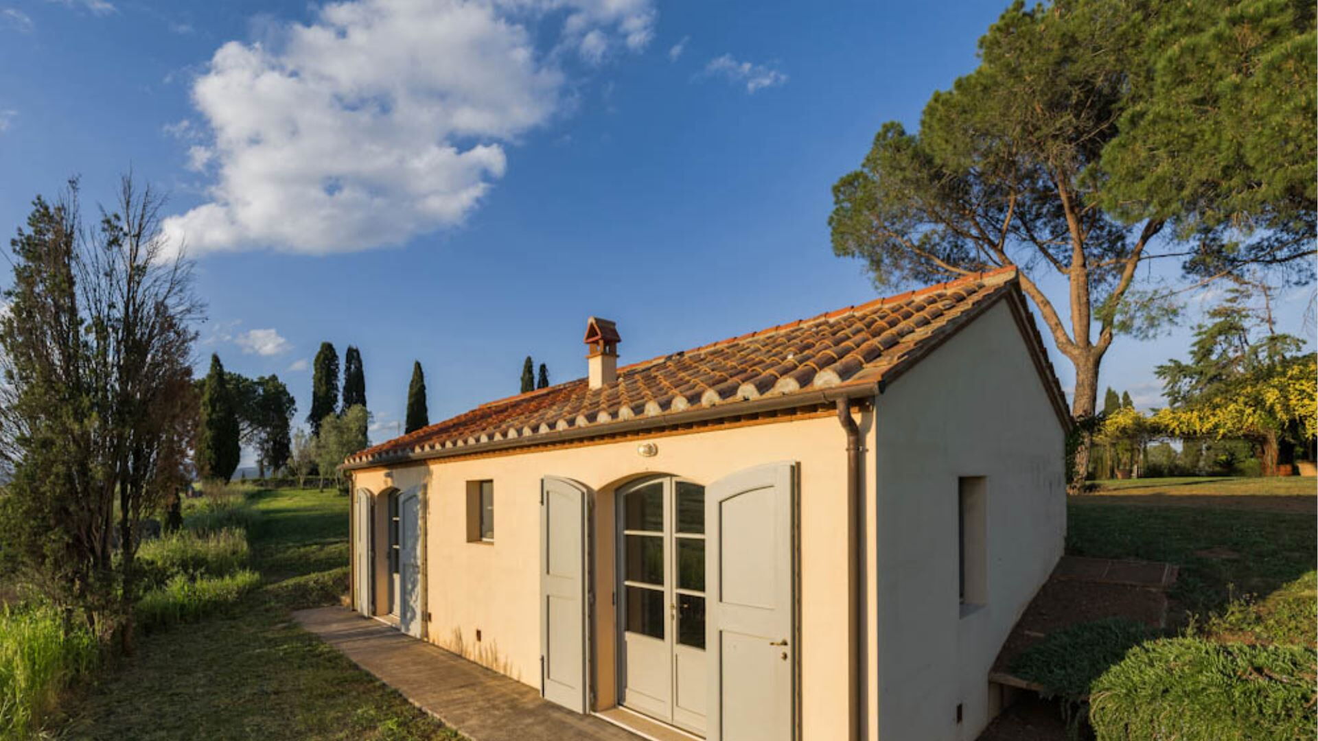 De villa wordt omgeven door een uitgestrekt park met zorgvuldige landschapsarchitectuur en een verscheidenheid aan weelderige beplanting. De buitenruimtes beschikken over volwassen bomen die uitgebreide schaduw bieden, levendige bloemperken die kleuraccenten toevoegen, en inheemse mediterrane planten die de natuurlijke schoonheid van de omgeving versterken. U vindt een zwembad op het terrein, beschikbaar voor uw gebruik van mei tot en met oktober, vergezeld van een kleine structuur bij het zwembad met een badkamer met toilet en wastafel, plus een douche uitgerust met een Turks bad. De buitenruimtes omvatten een barbecueplaats die perfect is voor dineren in de buitenlucht en entertaining, waardoor u ten volle kunt genieten van het aangename Toscaanse klimaat terwijl u wordt omringd door de rustige schoonheid van het platteland van de Maremma.