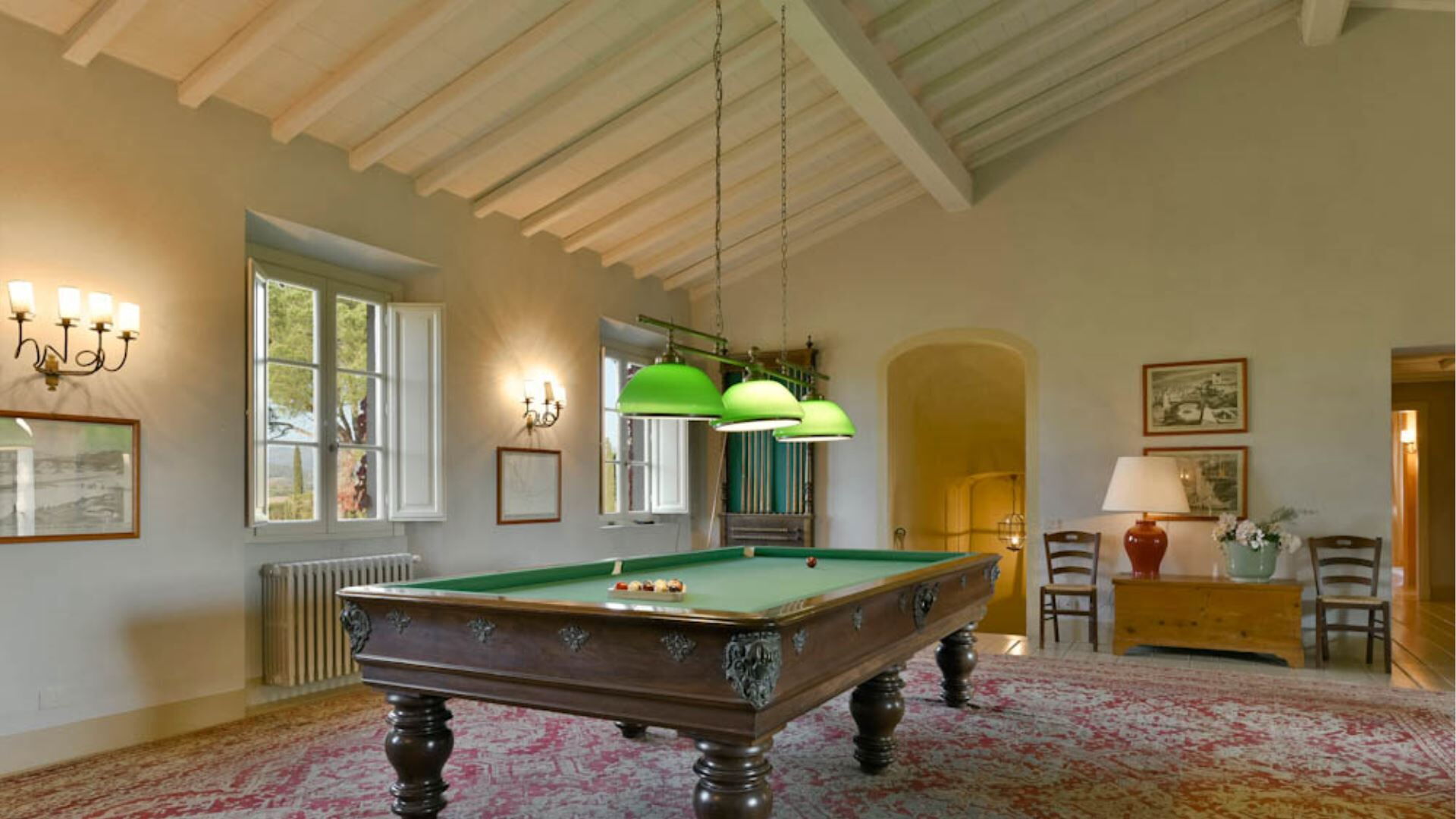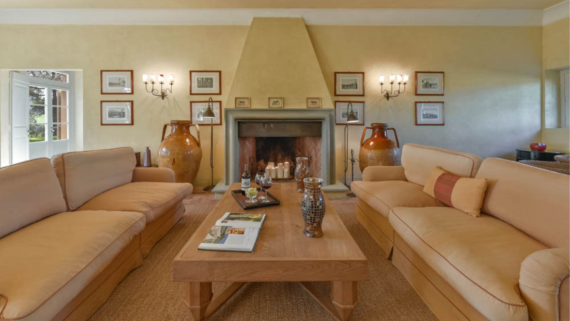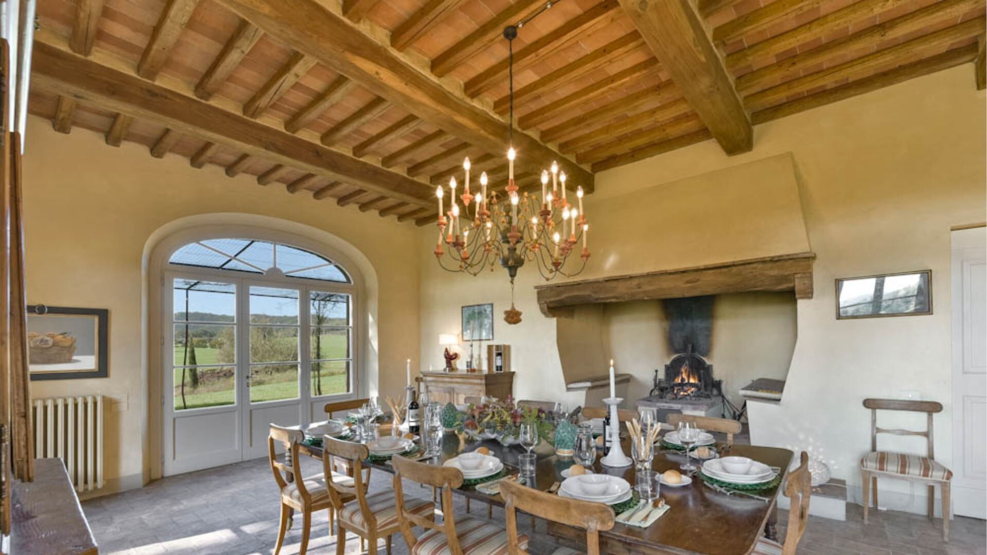 Het pand biedt uitgebreide klimaatbeheersing met airconditioning in alle accommodaties, wat uw comfort tijdens warmere maanden waarborgt. Entertainmentopties omvatten satelliet-tv en televisie, samen met een dvd-speler voor uw vrije tijd. De keuken is volledig uitgerust met moderne apparatuur inclusief een vaatwasser voor uw gemak. Een wasmachine is beschikbaar in de speciale wasruimte voor het verzorgen van uw kleding. Zowel de woonkamer als de eetkamer beschikken over charmante open haarden die een warme en uitnodigende sfeer creëren tijdens koelere avonden. Voor entertainment buiten heeft u toegang tot een barbecuefaciliteit die perfect is voor het bereiden van maaltijden in de buitenlucht. Het pand omvat ook praktische kantoorapparatuur met een computer en faxapparaat, en een Turks bad is beschikbaar in de douchefaciliteit bij het zwembad voor ultieme ontspanning.