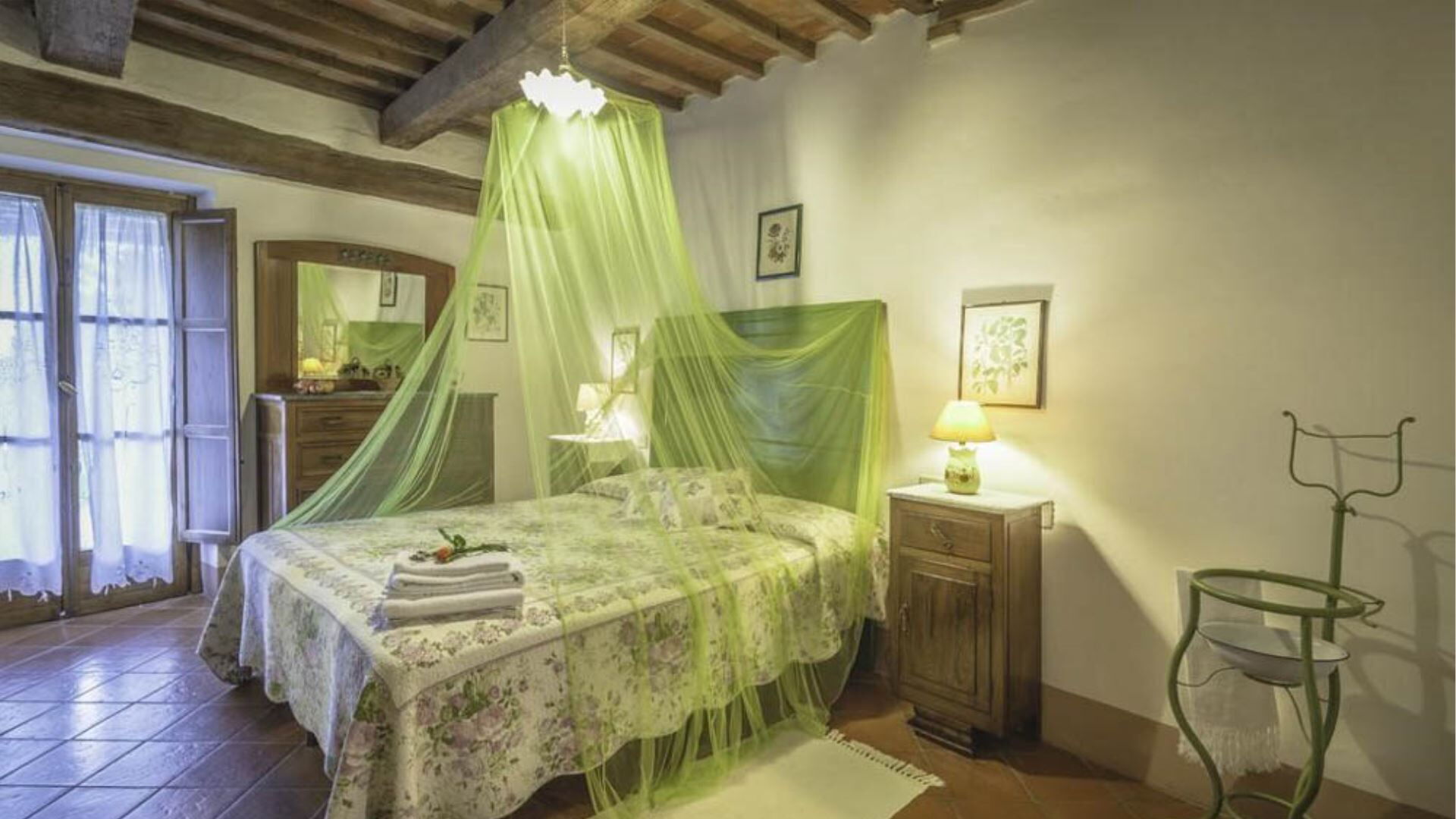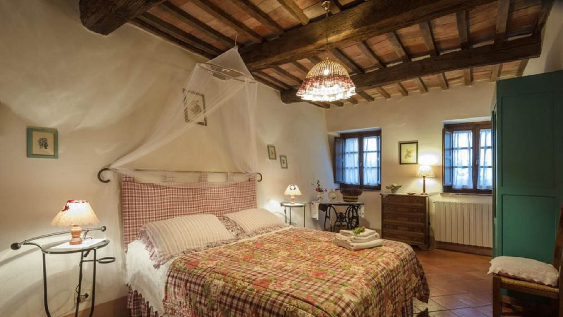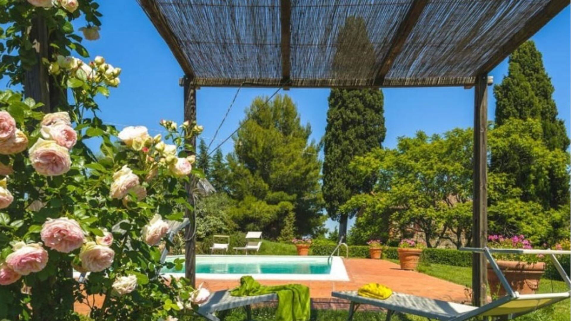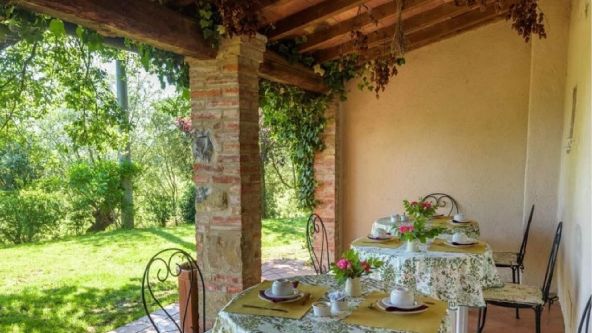 Deze onafhankelijke villa biedt plaats aan maximaal 21 gasten verdeeld over 10 slaapkamers en 8 badkamers. De accommodatie bestaat uit 6 individuele kamers en 2 appartementen, allemaal uitgerust met eigen badkamers met douches. Op de begane grond vindt u de Archetto kamer, een intieme en romantische ruimte met een tweepersoonsbed. De Yellow Room, licht en vrolijk, is ingericht met Provençaalse stoffen en een tweepersoonsbed, en komt direct uit op het gazon. De Green room en Rosa room, beide uitgerust met tweepersoonsbedden, komen uit op pergola's voor de speelplaats. De Triple Room, groot en ruim, is gebouwd in de oude kelder van de boerderij en biedt plaats aan 3 gasten met een tweepersoonsbed en een slaapbank. Op de bovenste verdieping beschikt de Il Focolare kamer over een tweepersoonsbed naast een grote open haard en omvat een kleine kitchenette. Het Apartment Le Persiane bevindt zich op de eerste verdieping, bereikbaar via een stenen trap, en biedt plaats aan 4 personen met een grote keuken, een lichte woonkamer, twee tweepersoonsslaapkamers en een badkamer. Het appartement Il Granaio, ook op de eerste verdieping en bereikbaar via een indrukwekkende stenen trap, beslaat ongeveer 80 vierkante meter voor 4 gasten en bestaat uit een grote keuken en woonkamer, een slaapkamer met twee bedden, een tweepersoonsslaapkamer en een badkamer. Een gemeenschappelijke ruimte en keuken zijn beschikbaar waar alle gasten samen kunnen komen om gezamenlijk maaltijden te bereiden en te nuttigen.