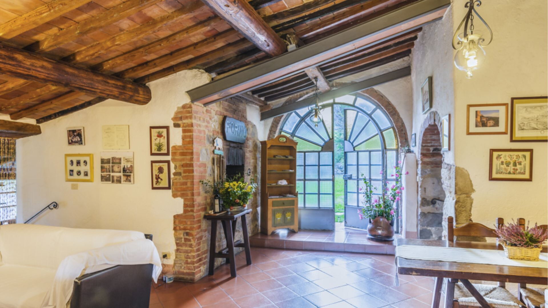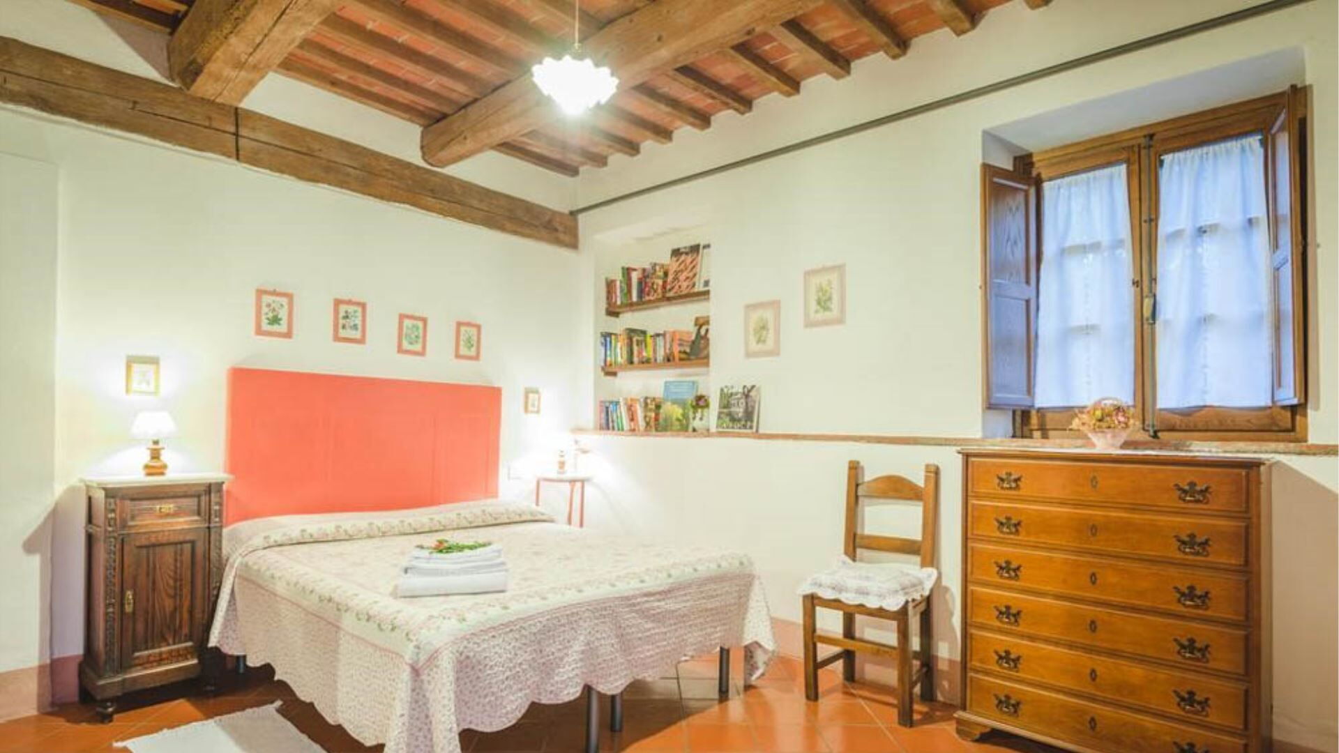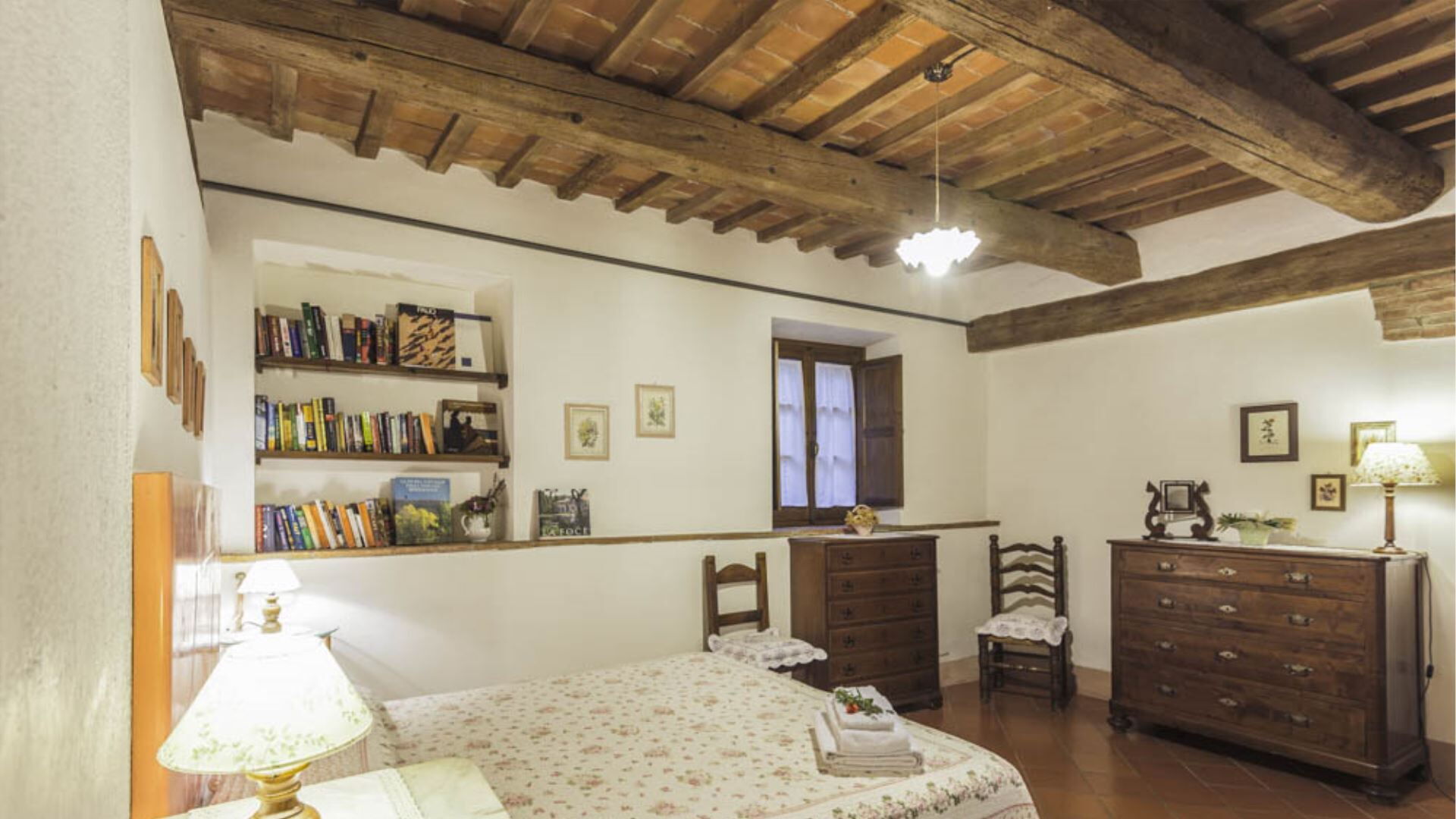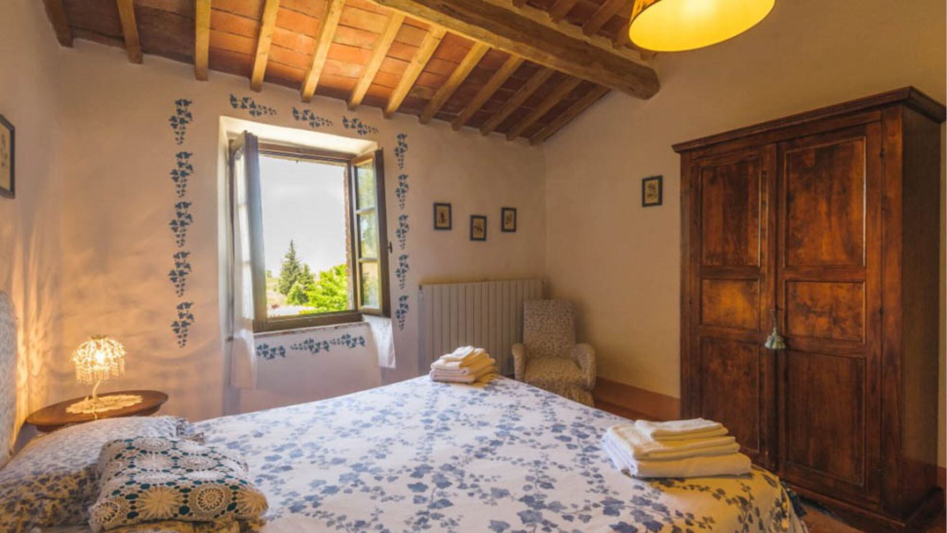 Deze onafhankelijke villa biedt plaats aan maximaal 21 gasten verdeeld over 10 slaapkamers en 8 badkamers. De accommodatie bestaat uit 6 individuele kamers en 2 appartementen, allemaal uitgerust met eigen badkamers met douches. Op de begane grond vindt u de Archetto kamer, een intieme en romantische ruimte met een tweepersoonsbed. De Yellow Room, licht en vrolijk, is ingericht met Provençaalse stoffen en een tweepersoonsbed, en komt direct uit op het gazon. De Green room en Rosa room, beide uitgerust met tweepersoonsbedden, komen uit op pergola's voor de speelplaats. De Triple Room, groot en ruim, is gebouwd in de oude kelder van de boerderij en biedt plaats aan 3 gasten met een tweepersoonsbed en een slaapbank. Op de bovenste verdieping beschikt de Il Focolare kamer over een tweepersoonsbed naast een grote open haard en omvat een kleine kitchenette. Het Apartment Le Persiane bevindt zich op de eerste verdieping, bereikbaar via een stenen trap, en biedt plaats aan 4 personen met een grote keuken, een lichte woonkamer, twee tweepersoonsslaapkamers en een badkamer. Het appartement Il Granaio, ook op de eerste verdieping en bereikbaar via een indrukwekkende stenen trap, beslaat ongeveer 80 vierkante meter voor 4 gasten en bestaat uit een grote keuken en woonkamer, een slaapkamer met twee bedden, een tweepersoonsslaapkamer en een badkamer. Een gemeenschappelijke ruimte en keuken zijn beschikbaar waar alle gasten samen kunnen komen om gezamenlijk maaltijden te bereiden en te nuttigen.