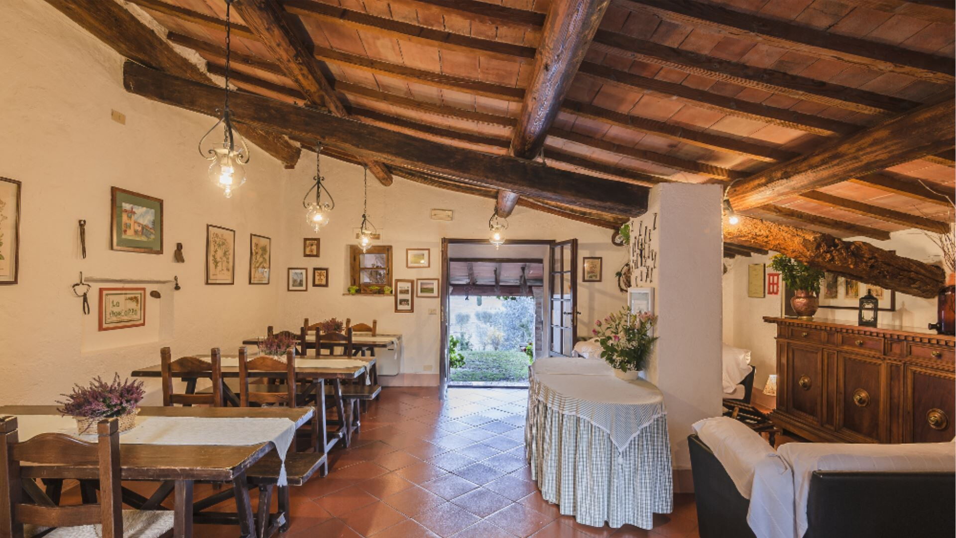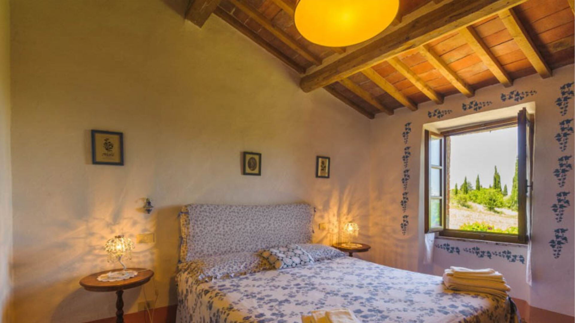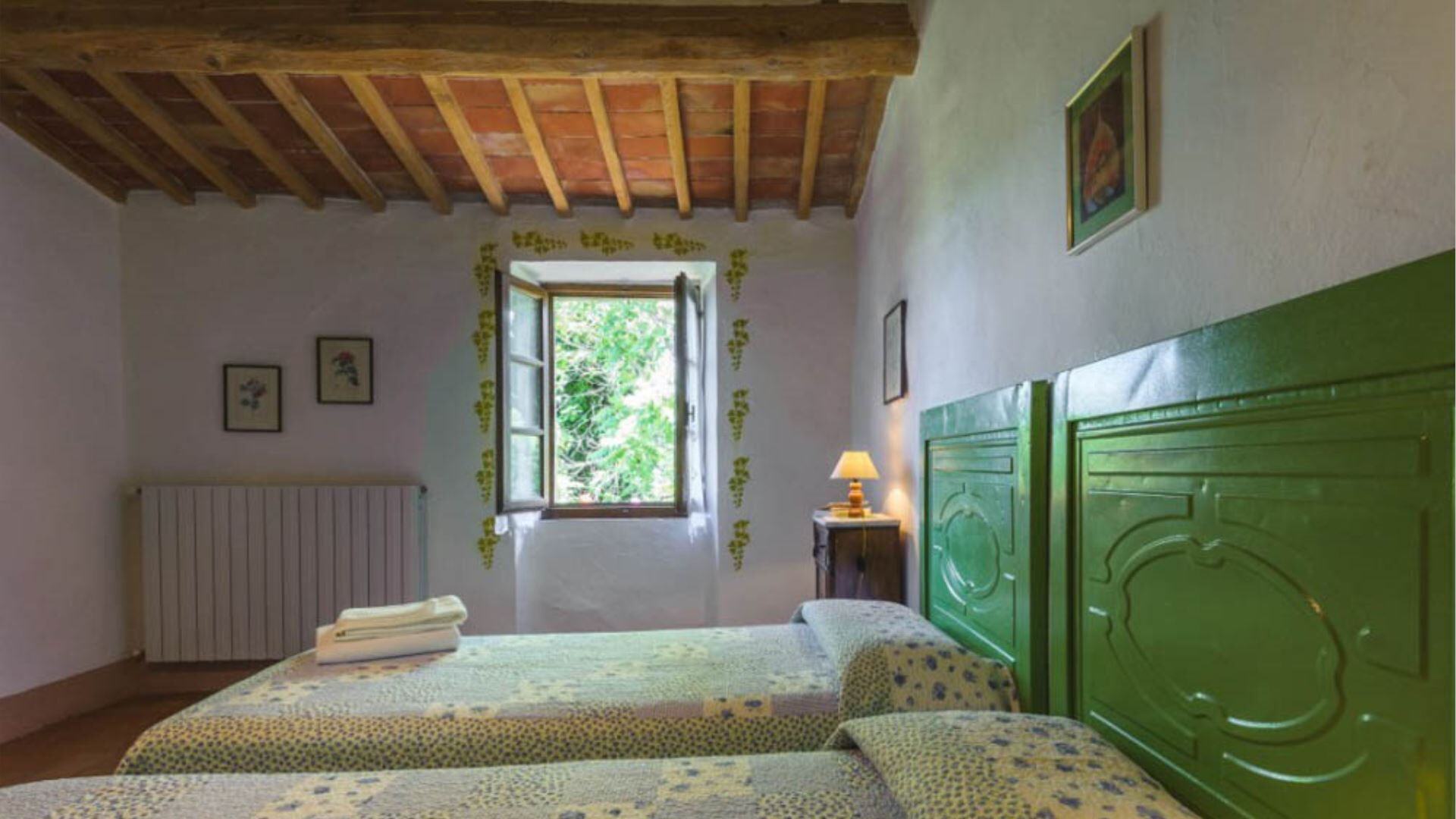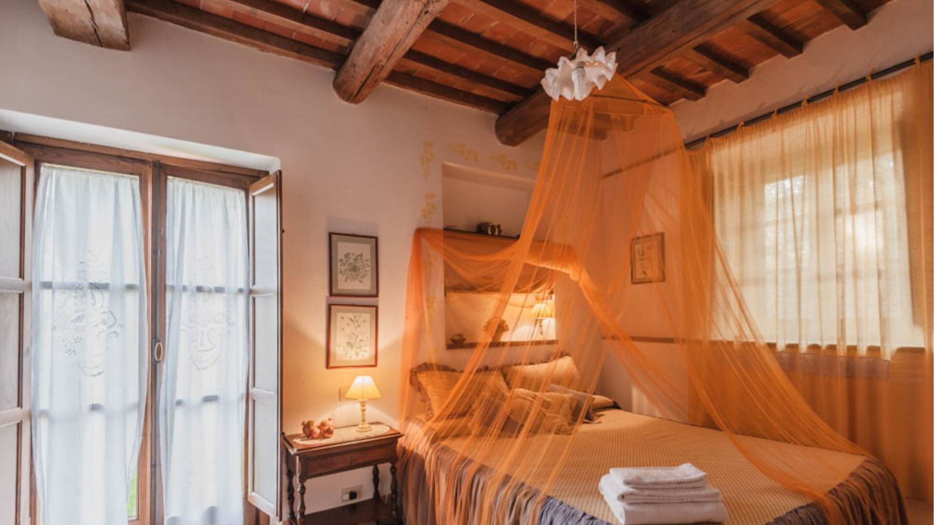 Deze onafhankelijke villa biedt plaats aan maximaal 21 gasten verdeeld over 10 slaapkamers en 8 badkamers. De accommodatie bestaat uit 6 individuele kamers en 2 appartementen, allemaal uitgerust met eigen badkamers met douches. Op de begane grond vindt u de Archetto kamer, een intieme en romantische ruimte met een tweepersoonsbed. De Yellow Room, licht en vrolijk, is ingericht met Provençaalse stoffen en een tweepersoonsbed, en komt direct uit op het gazon. De Green room en Rosa room, beide uitgerust met tweepersoonsbedden, komen uit op pergola's voor de speelplaats. De Triple Room, groot en ruim, is gebouwd in de oude kelder van de boerderij en biedt plaats aan 3 gasten met een tweepersoonsbed en een slaapbank. Op de bovenste verdieping beschikt de Il Focolare kamer over een tweepersoonsbed naast een grote open haard en omvat een kleine kitchenette. Het Apartment Le Persiane bevindt zich op de eerste verdieping, bereikbaar via een stenen trap, en biedt plaats aan 4 personen met een grote keuken, een lichte woonkamer, twee tweepersoonsslaapkamers en een badkamer. Het appartement Il Granaio, ook op de eerste verdieping en bereikbaar via een indrukwekkende stenen trap, beslaat ongeveer 80 vierkante meter voor 4 gasten en bestaat uit een grote keuken en woonkamer, een slaapkamer met twee bedden, een tweepersoonsslaapkamer en een badkamer. Een gemeenschappelijke ruimte en keuken zijn beschikbaar waar alle gasten samen kunnen komen om gezamenlijk maaltijden te bereiden en te nuttigen.