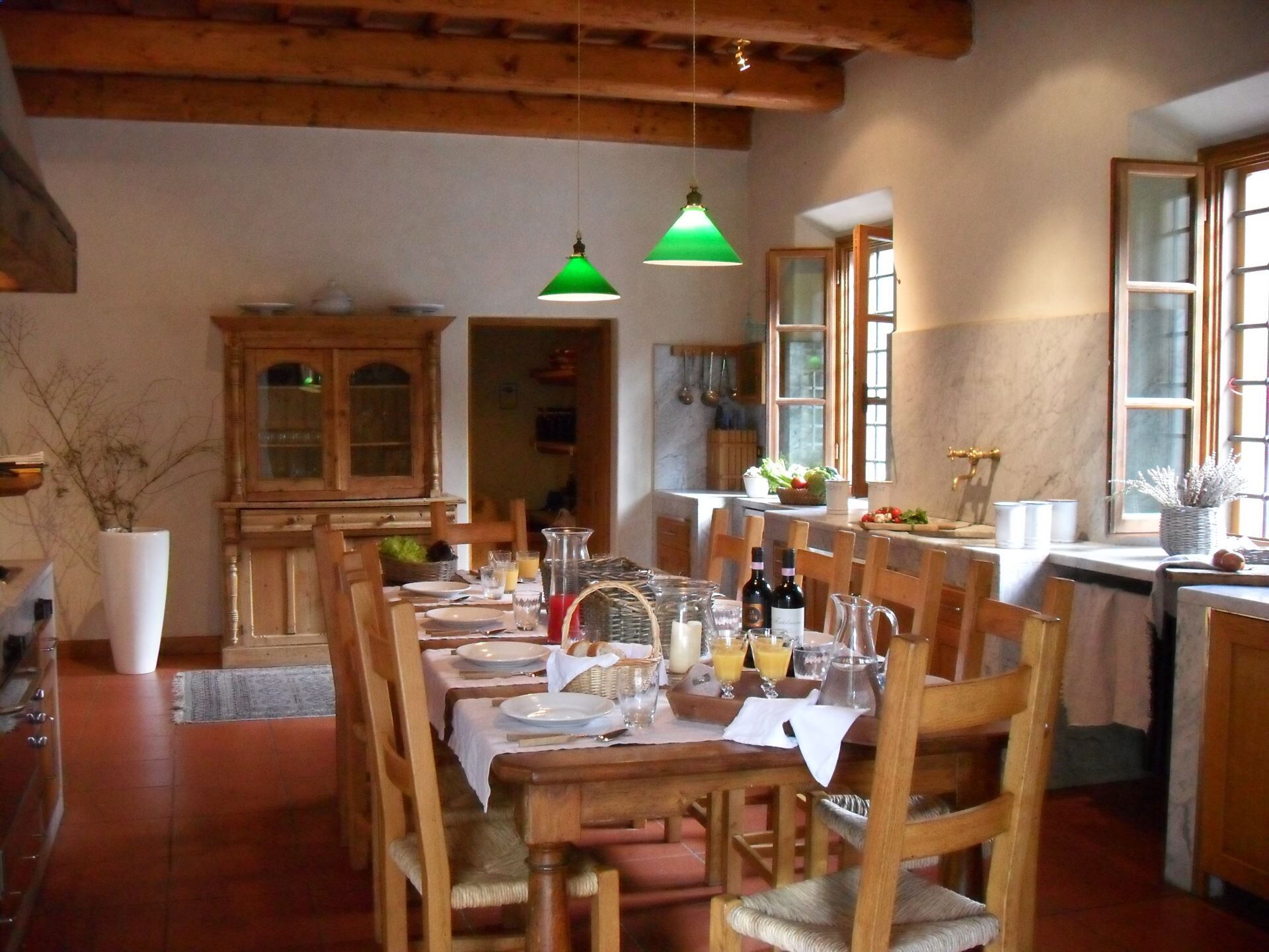 De gehele accommodatie is uitgerust met Airconditioning in alle slaapkamers om uw comfort tijdens warme Toscaanse zomers te garanderen, terwijl Verwarming Beschikbaar van 01.11 tot 31.03 de villa knus houdt tijdens koelere maanden. Entertainment wordt geboden via Satelliet-tv en Televisiesystemen door de gehele residentie. De ruime keuken is volledig uitgerust met moderne gemakken inclusief een Vaatwasser en Magnetron, waardoor maaltijdbereiding moeiteloos verloopt. Voor liefhebbers van buitenkoken is een Barbecue beschikbaar binnen het pergolagebied en de keuken. De villa beschikt over meerdere indrukwekkende Open haarden vervaardigd uit pietra serena-steen, gelegen in de keuken, eetkamer en woonkamers van zowel de hoofdvilla als het bijgebouw, die warme en uitnodigende sferen creëren. Een speciale wasruimte herbergt een Wasmachine voor uw gemak tijdens langere verblijven. De uitgestrekte Privétuin omvat 9 hectare exclusief terrein met prachtig aangelegde gebieden en natuurlijk bos, dat voldoende ruimte biedt voor buitenactiviteiten en vredige wandelingen terwijl volledige privacy is gegarandeerd.