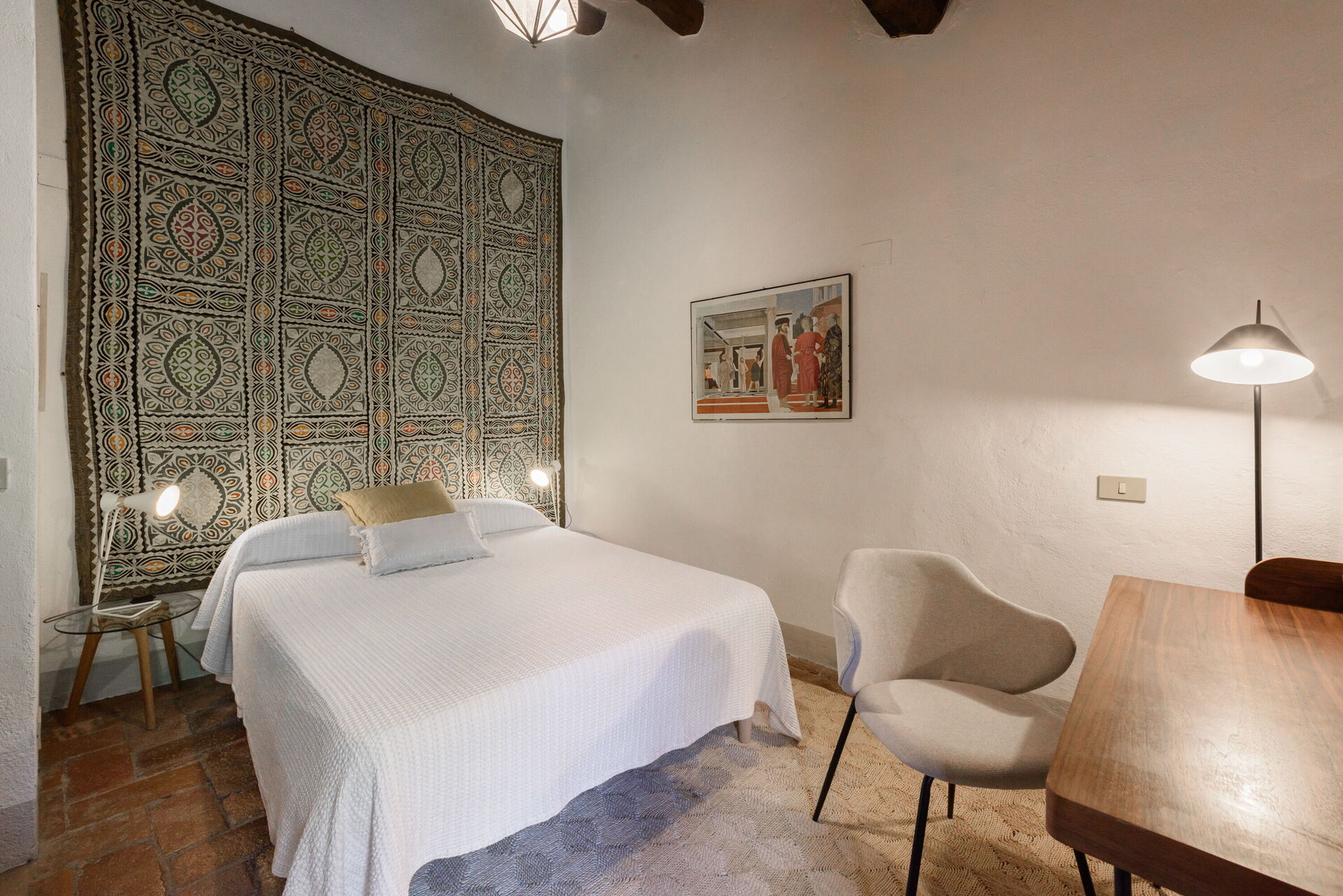 Slaapkamer 4: smal tweepersoonsbed, WIFI internet, hor, plafondventilator.