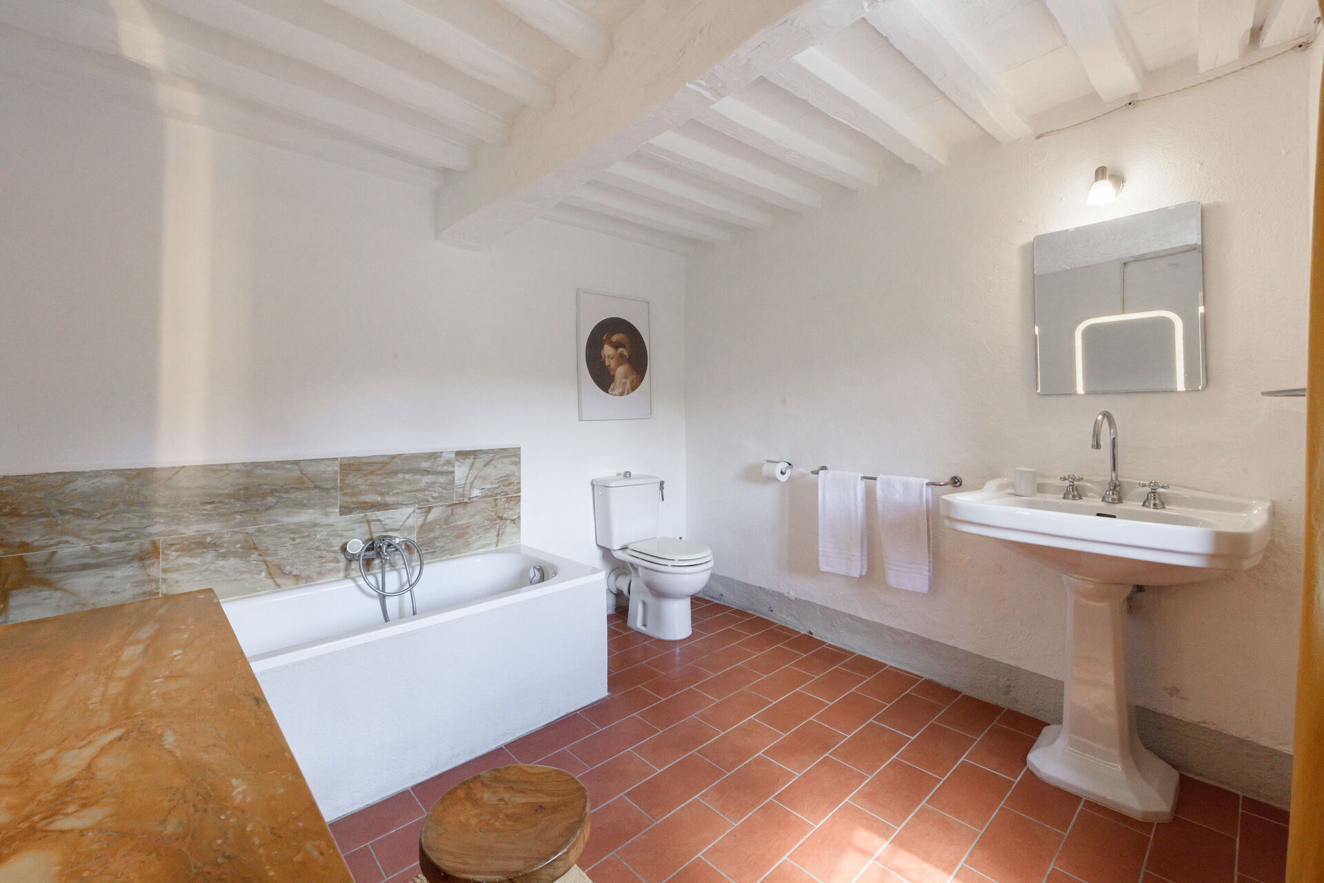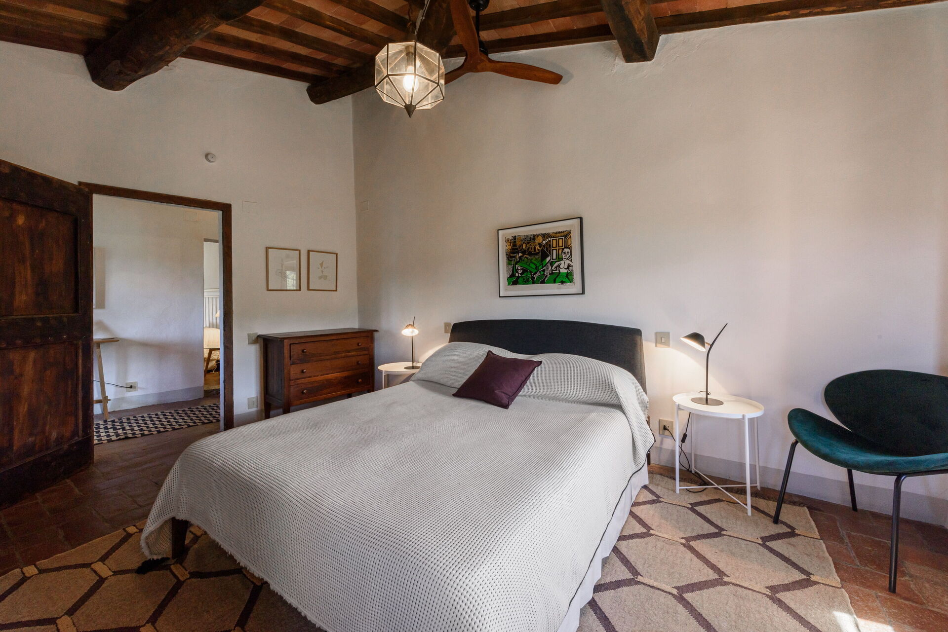 Zodra u aankomt wordt u welkom geheten door de eigenaar of beheerder en vindt u een mooie, schone en goed onderhouden woning met uitzicht over de heuvels perfect voor een ontspannen vakantie in Toscane. Na een drukke dag winkelen kunt u de tijd doorbrengen met vrienden en familie bij het zwembad, en genieten van een glaasje wijn - een perfecte manier om te ontspannen aan het einde van de dag. Buiten zijn er ook een patio en barbecue. Als u van koken houdt is er een goed uitgeruste keuken met o.a. koffiezetapparaat, magnetron oven, broodrooster en ijskast en natuurlijk voldoende servies en bestek voor tot 12 personen. Als u liever buiten eet is er een patio waar u van het weer kan genieten terwijl u buiten eet.
