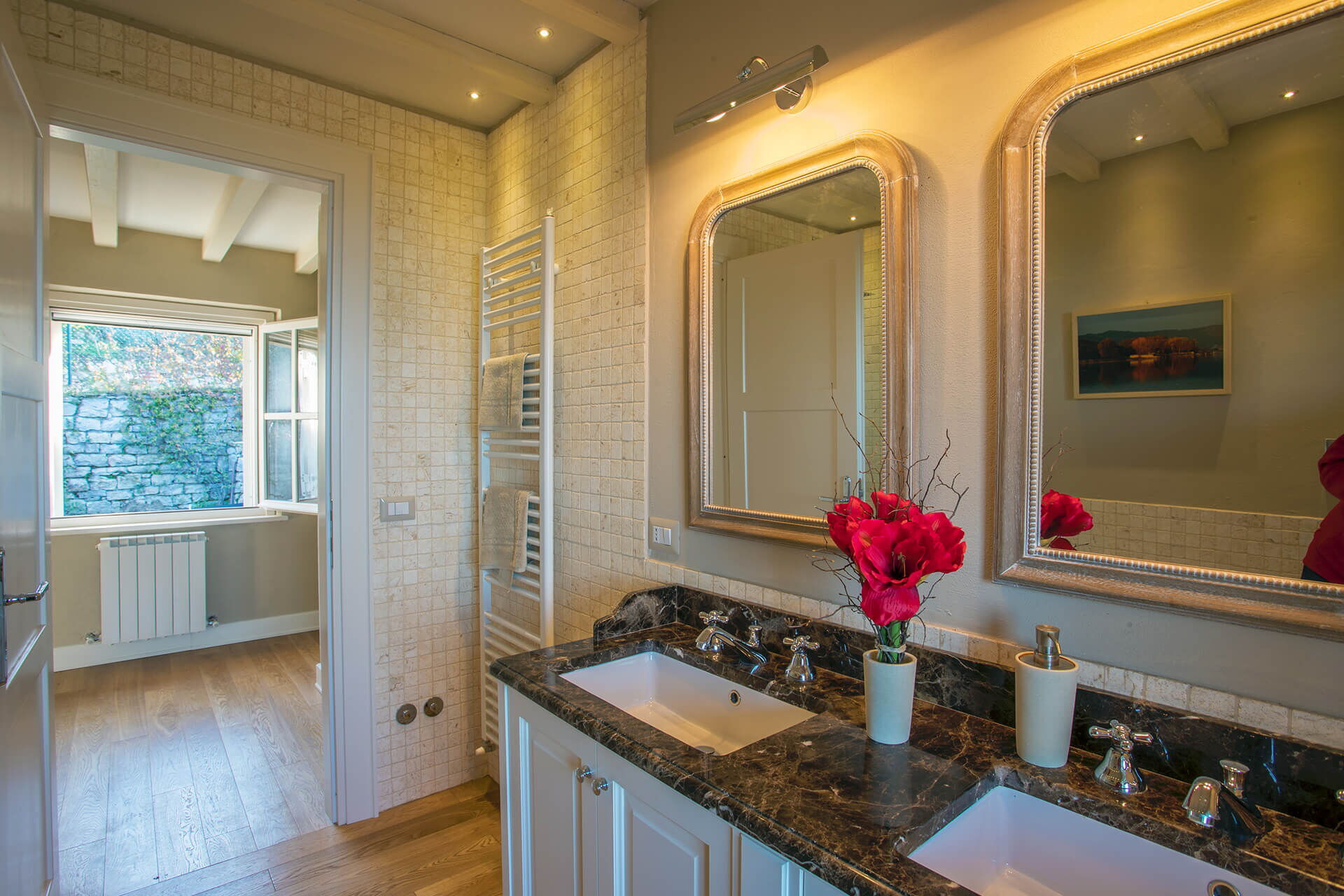 Badkamer 2: dubbele wastafel, toilet , bidet, douche, haardroger.