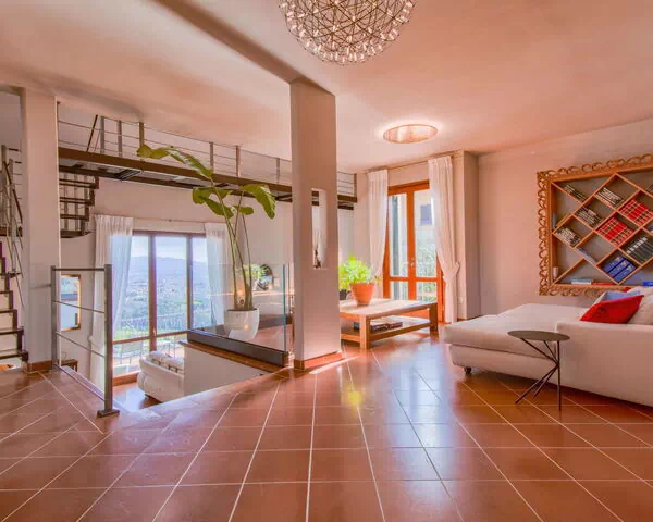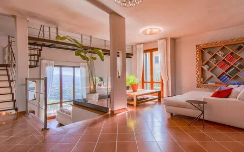 "Panorama", villa 7-kamers 360 m2. Modern en smaakvol ingericht: woonkamer met open haard (alleen decoratie), Digitale TV en air-conditioning. Uitgang naar het balkon. 1 2-pers. kamer met afgeschuinde daken met air-conditioning. 2 2-pers. kamers, elke kamer heeft Digitale TV en air-conditioning. Bad/bidet/WC. Vloerverwarming. Souterrain: 1 kamer met panoramavenster met 1 bed, 1 2-pers bed, douche/bidet/WC, Digitale TV en air-conditioning. Eetkamer met open haard (alleen decoratie). Open keuken (oven, afwasmachine, 5 inductiekookplaten, broodrooster, waterkoker, magnetron, diepvriezer, elektrische koffiemachine). Houten vloeren. Panoramazicht op het dal en het zwembad. Ter beschikking: wasmachine, droger, klamboe, haardroger. Internet (Internet (WiFi), gratis). Rookvrij huis. Rookmelders, brandblusser. IT047003C2UW4L5863