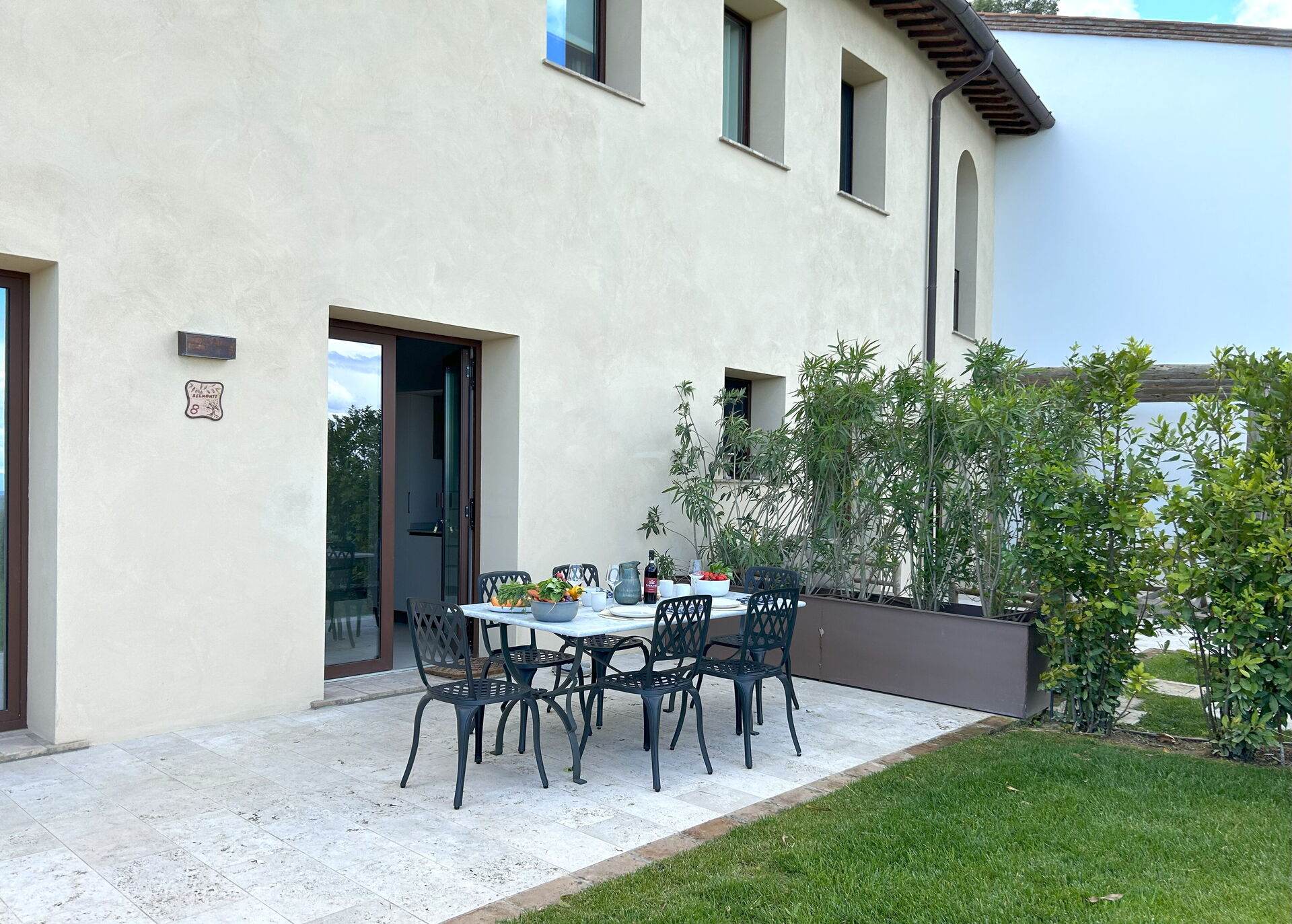 Het zwembad is verwarmd van mei tot oktober en wordt uitsluitend gedeeld door de tien appartementen en drie villa's.