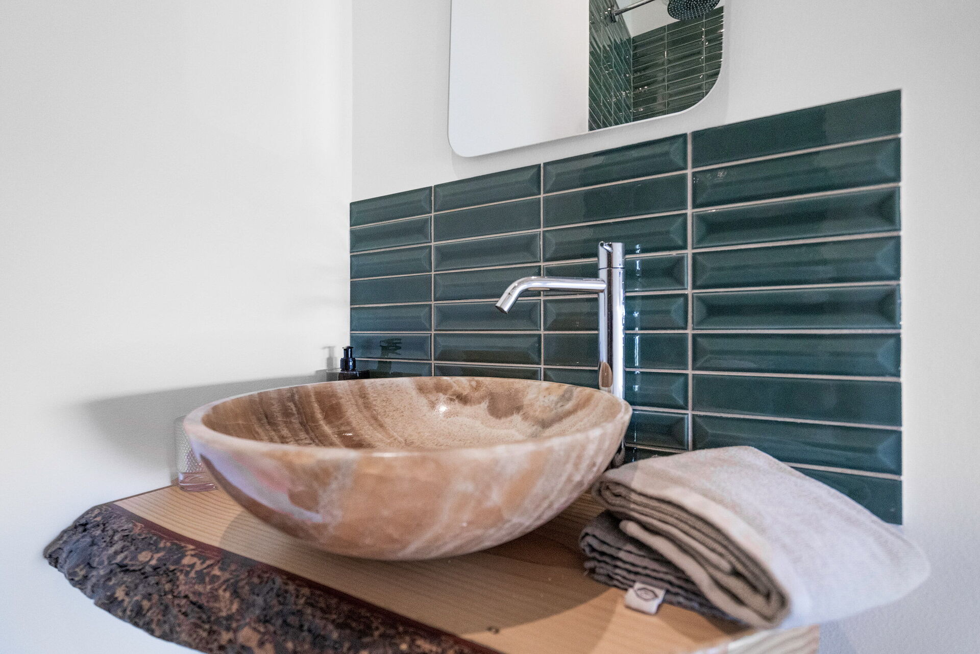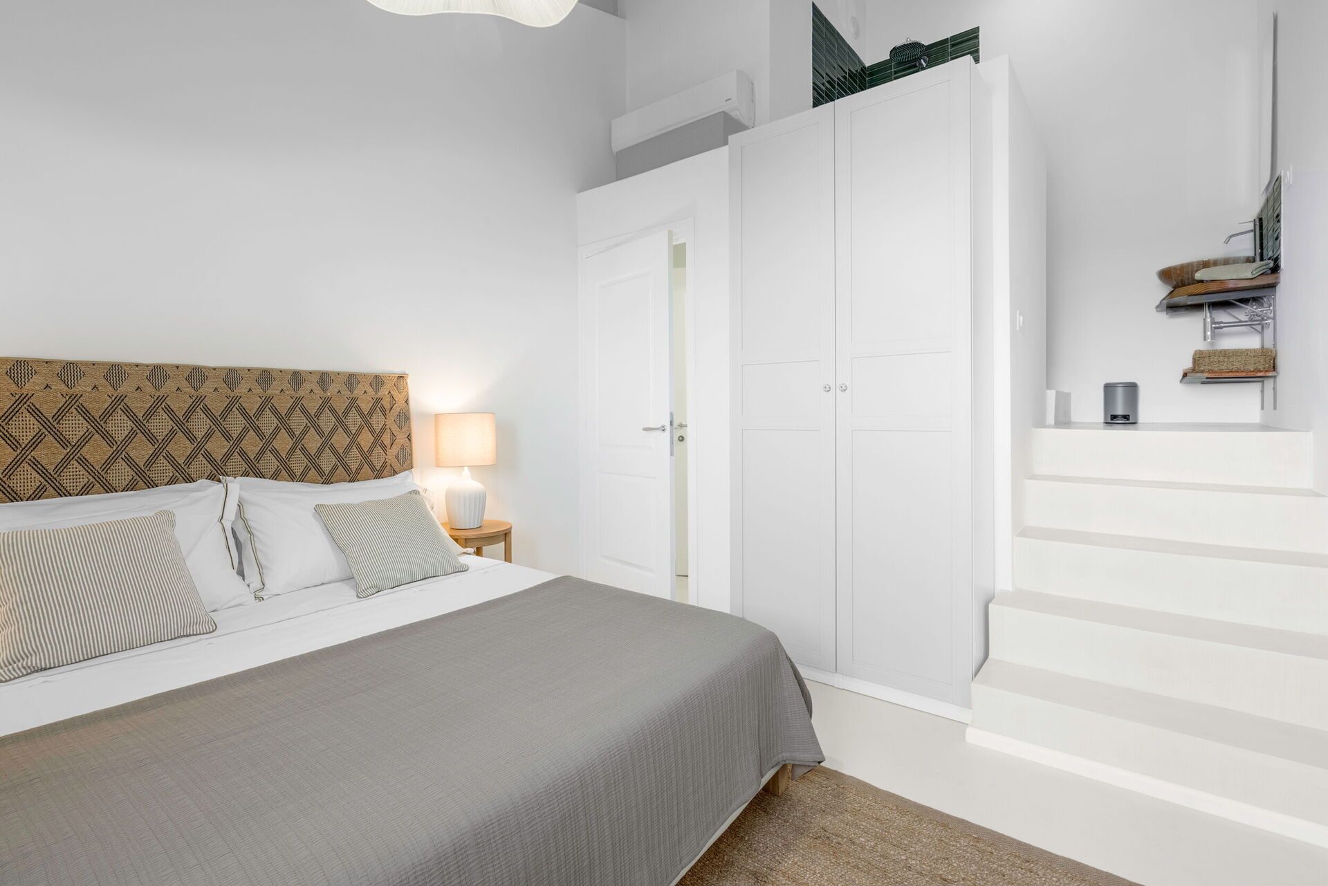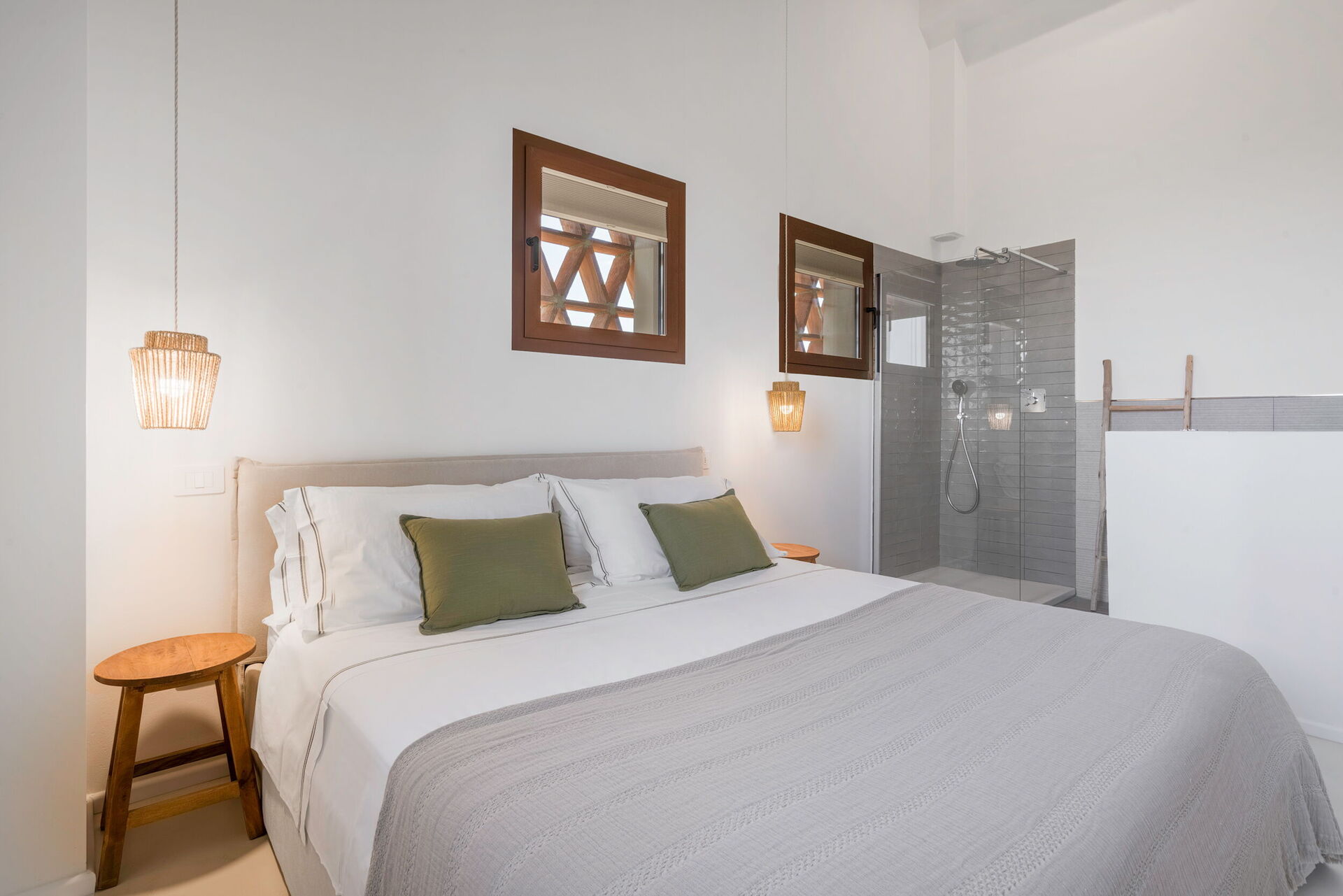 Slaapkamer met badkamer: tweepersoonsbed, WIFI internet, airconditioning, wastafel, douche.