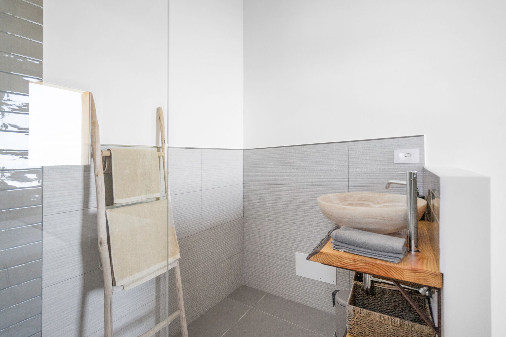 Badkamer: toilet , douche.