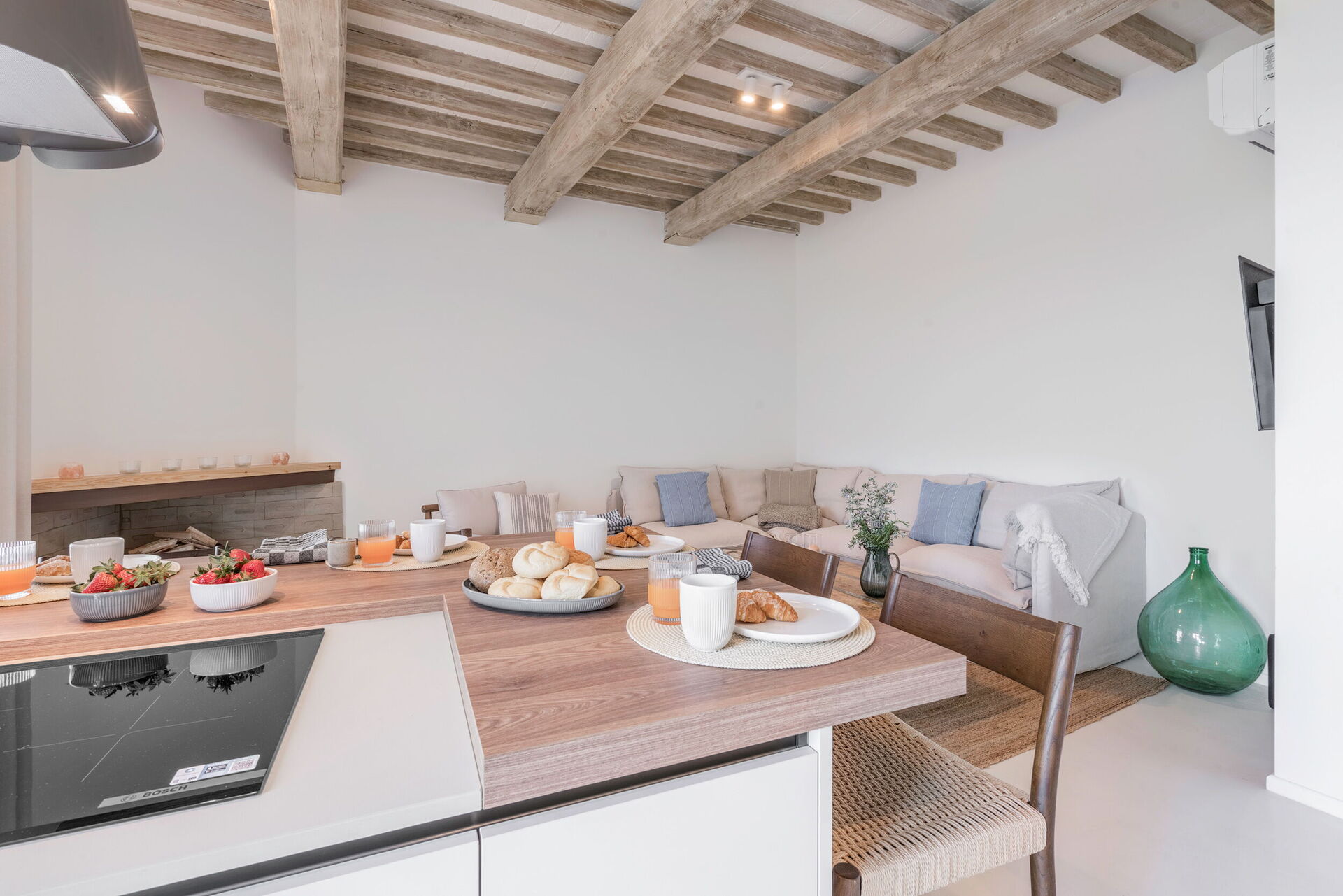 Bij aankomst vindt u een fraaie, schone en goed onderhouden woning met uitzicht over de heuvels en de stad ideaal voor een geweldige vakantie in Toscane. Hoe u de dagen ook doorbrengt - musea bezoek, met excursies, winkelen of rijdende door het prachtige landschap, zodra u thuis komt kunt u uitrusten samen met familie en vrienden bij het zwembad voor een perfecte afsluiting van nog weer een dag in Toscane. Dineren met vrienden en familie is een grote onderdeel van de Toscaanse cultuur. Maak gebruik van de goed uitgeruste keuken om maaltijden te bereiden met lokale producten terwijl u op vakantie bent. De keuken biedt o.a. een koffiezetapparaat, fornuis en ijskast, en natuurlijk ook voldoende servies en bestek voor minstens vier personen.