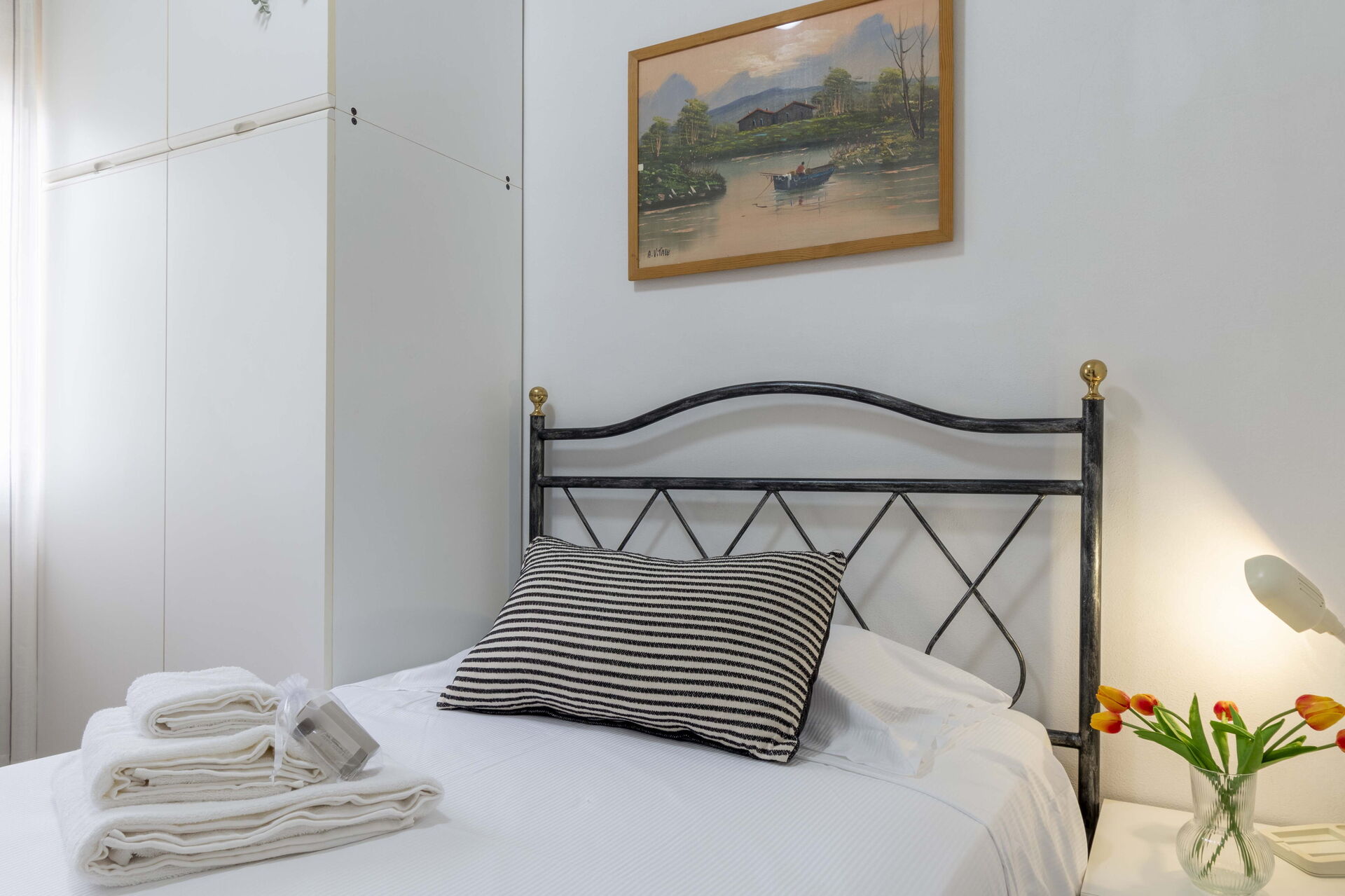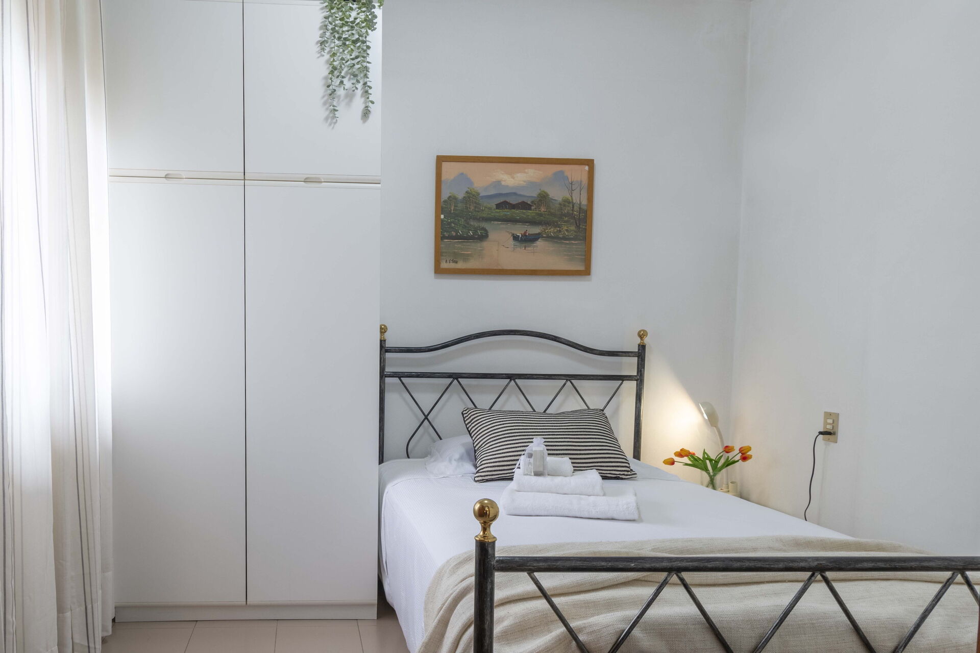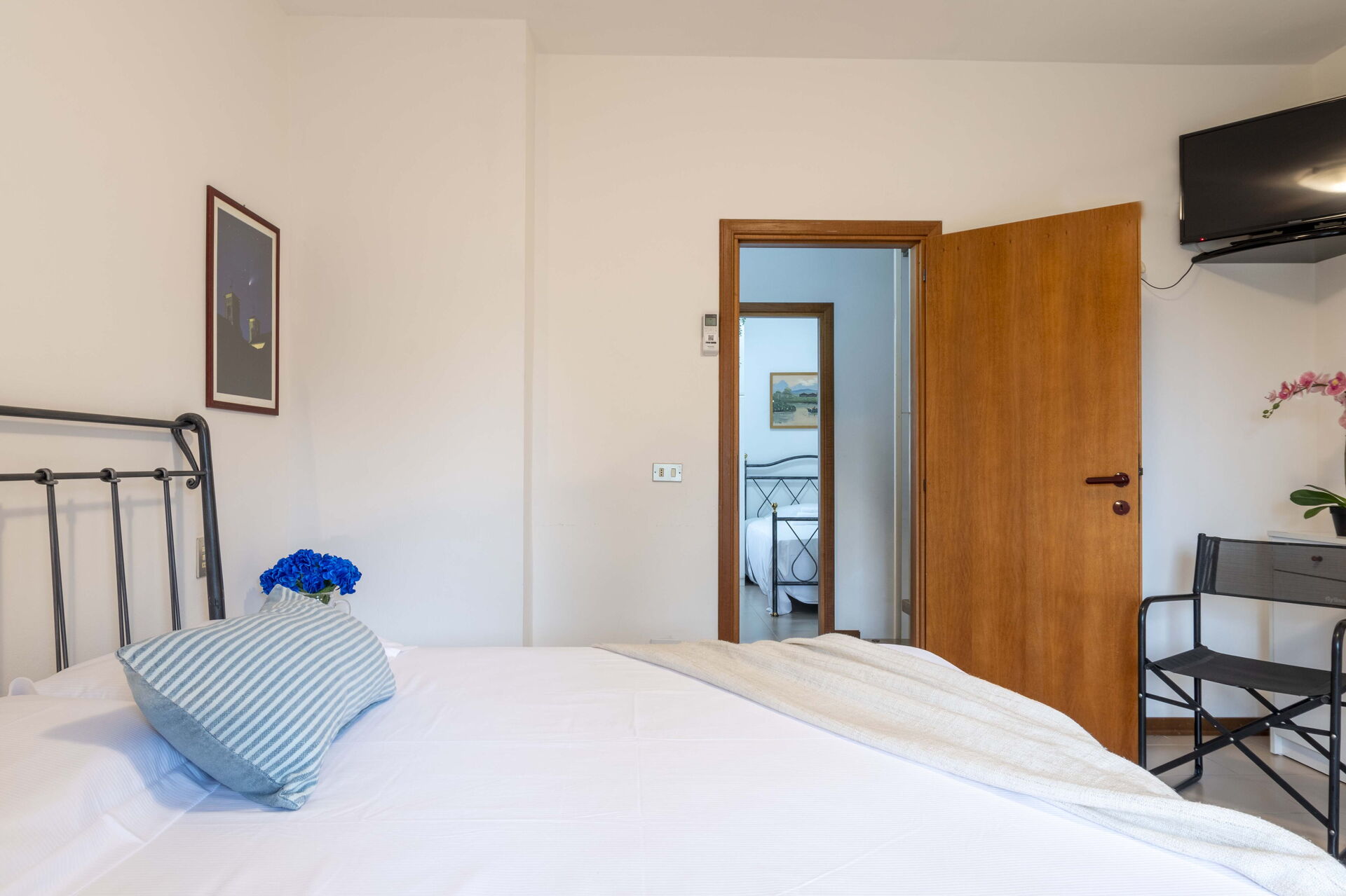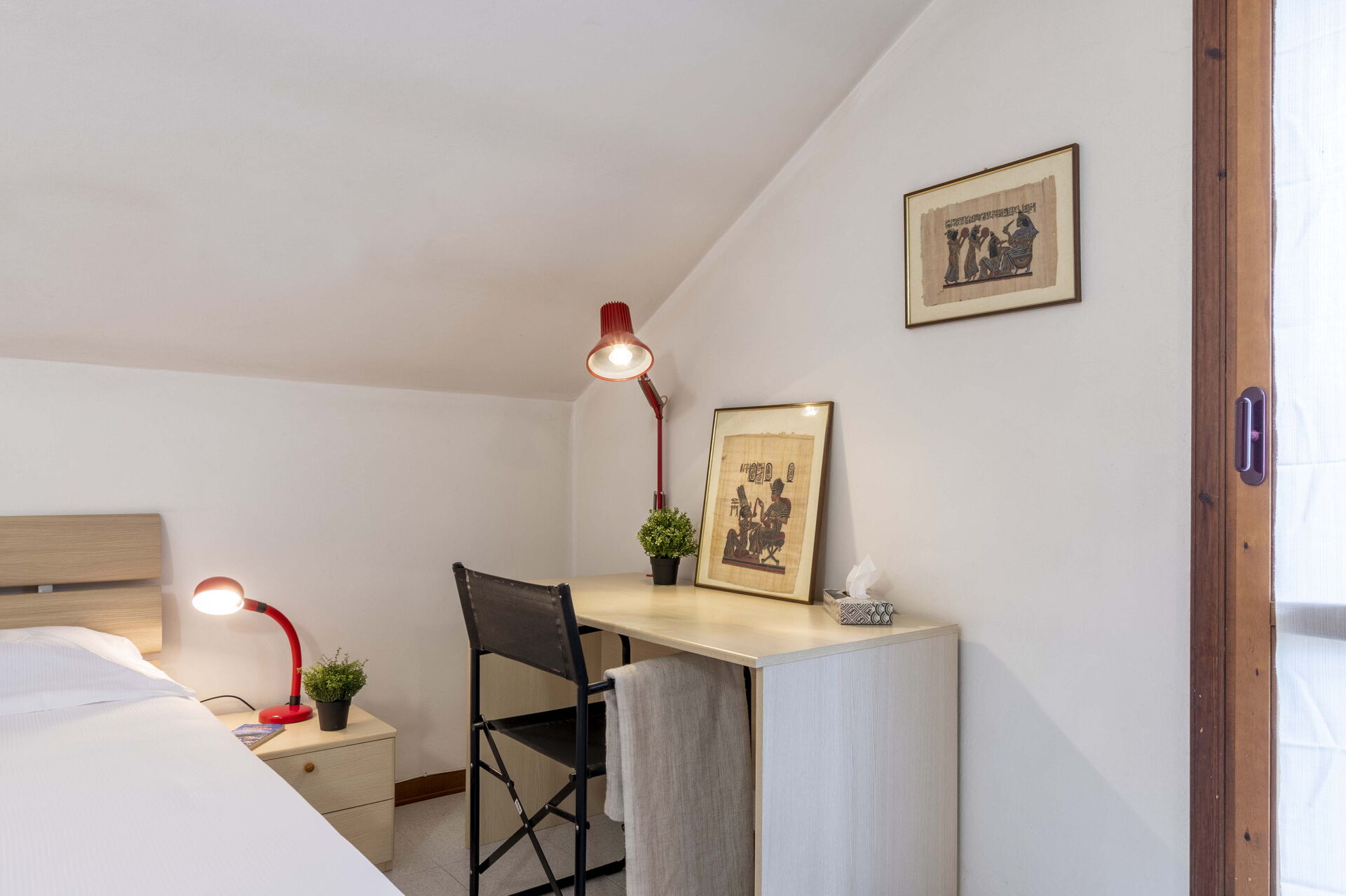 Slaapkamer 1: eenpersoonsbed, airconditioning, fauteuil.