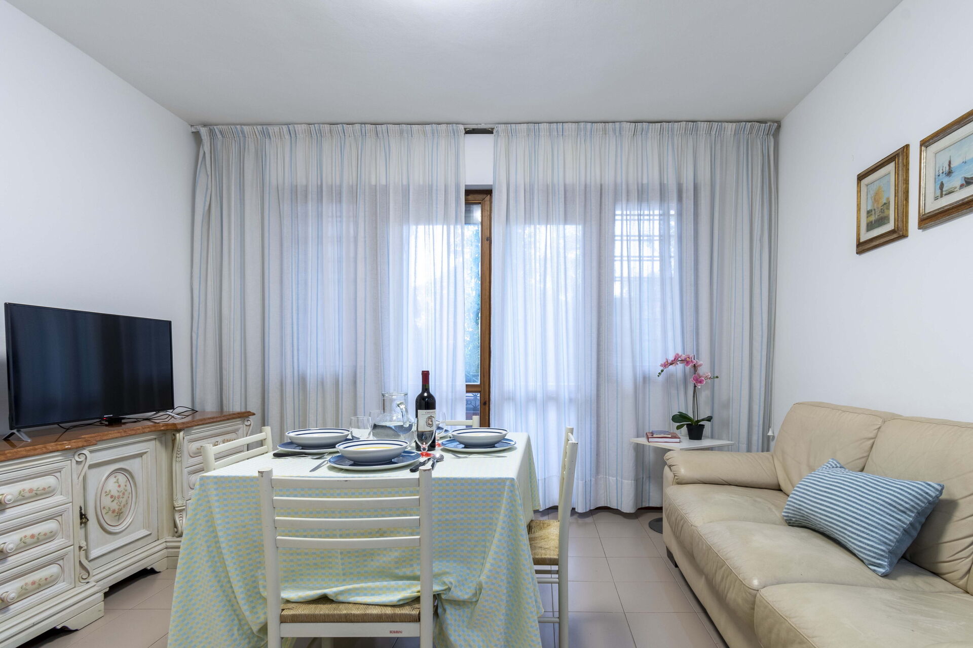 Keuken: goed uitgeruste keuken, vaatwasser, ijskast, diepvriezer, magnetron, kookplaat, oven, broodrooster, italiaans koffiezetapparaat, koffiezetapparaat, WIFI internet, airconditioning, co2 detector, uitgang naar het terras.