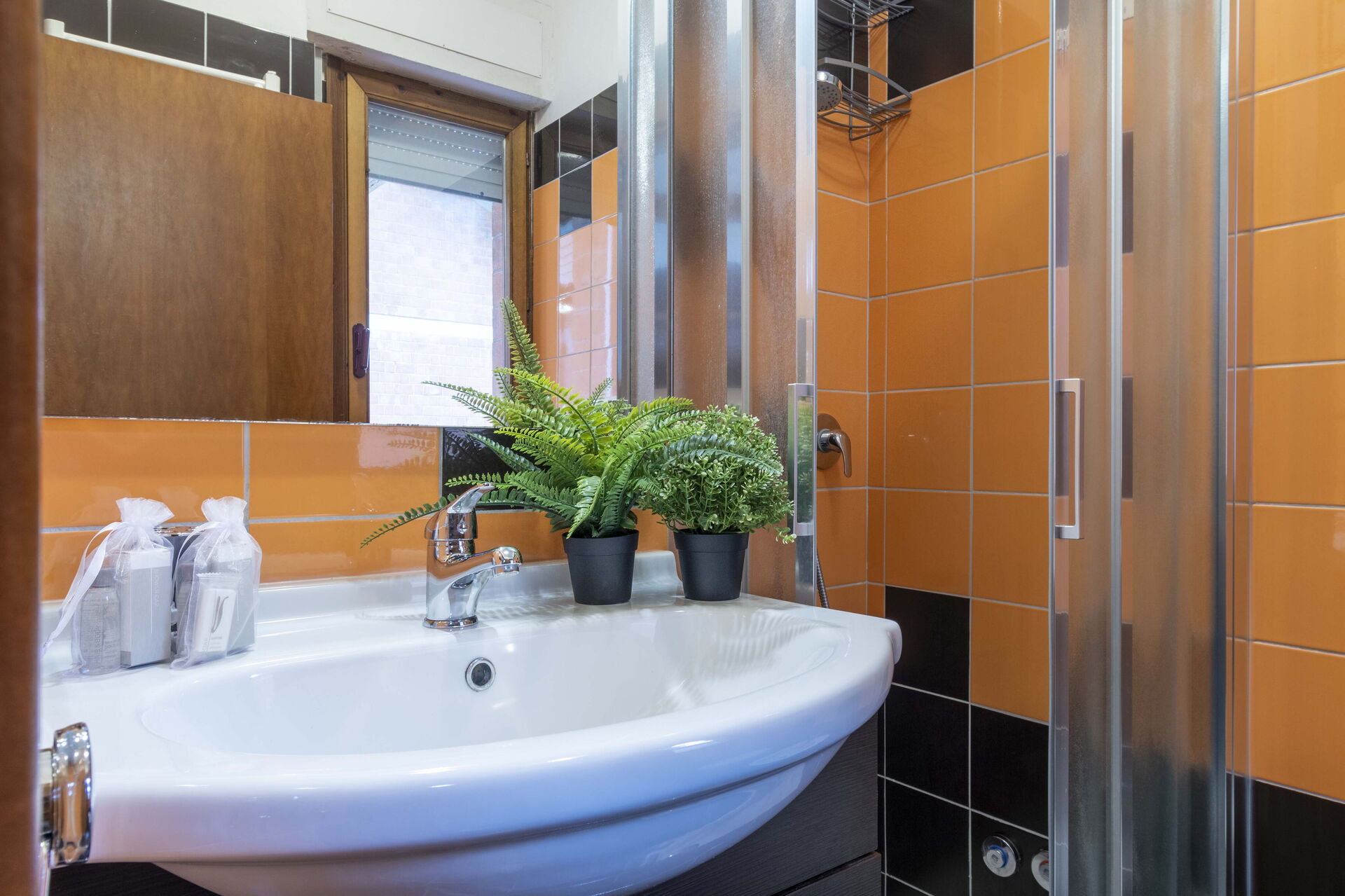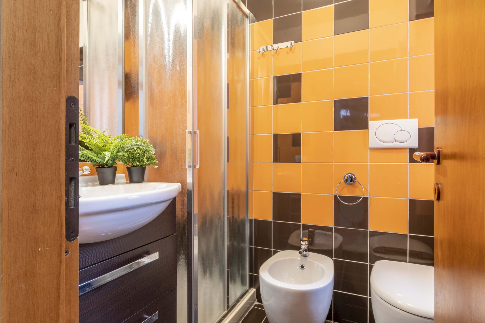 Badkamer: wastafel, toilet , bidet, douche, haardroger, wasmachine.