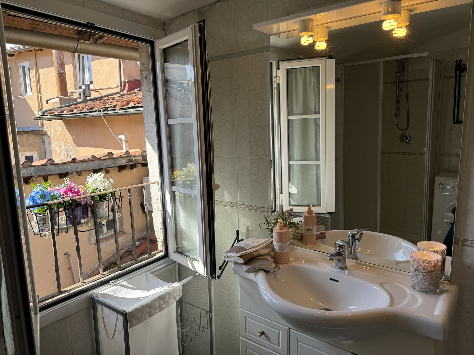 Badkamer: wastafel, toilet , bidet, douche, wasmachine, WIFI internet.