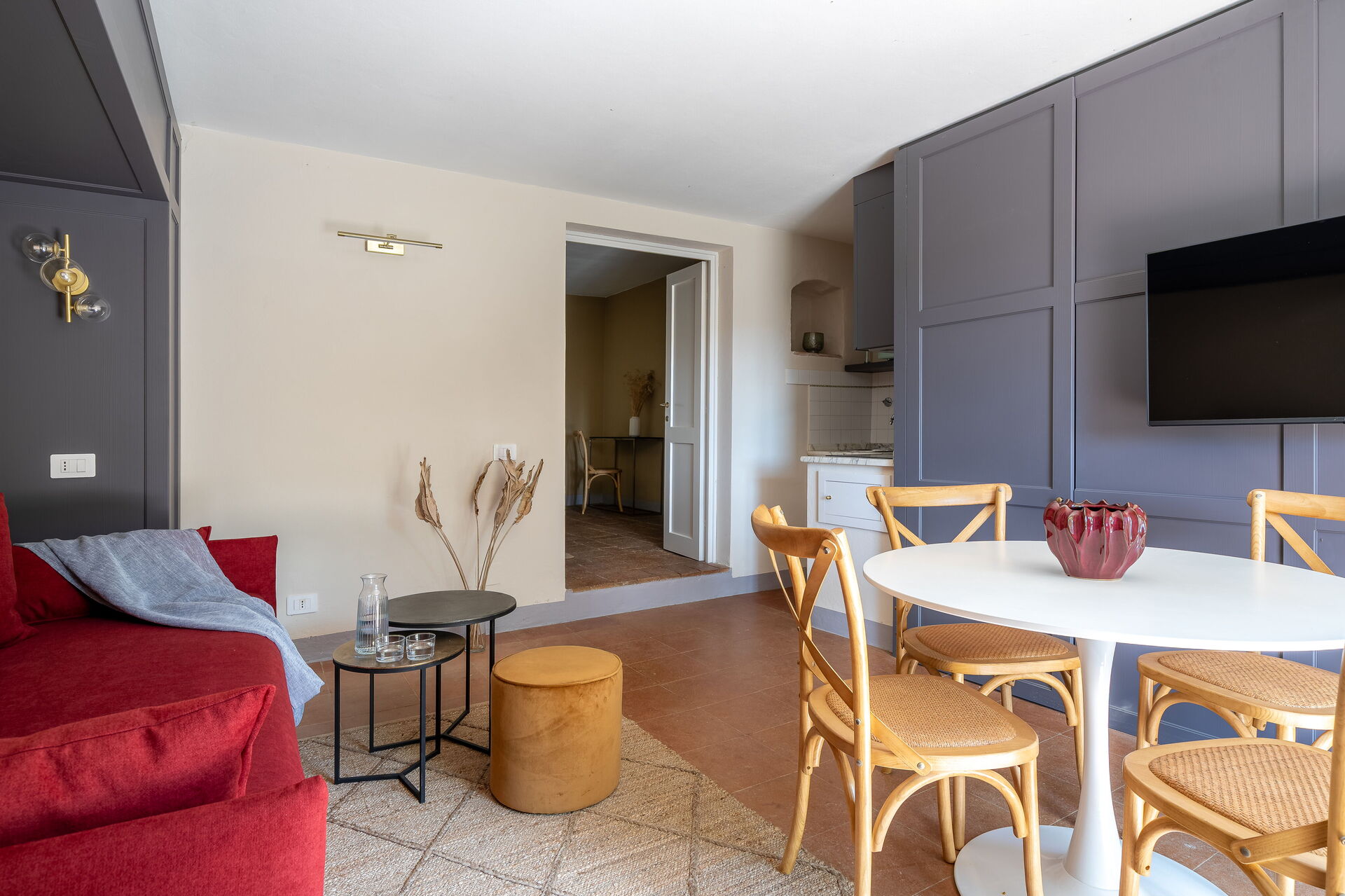 Relais Badia a Passignano - Appartamento Pinot Ner (41 m2) is een appartement met 1 slaapkamer en een badkamer verdeeld over een verdieping, geschikt voor max. twee personen.