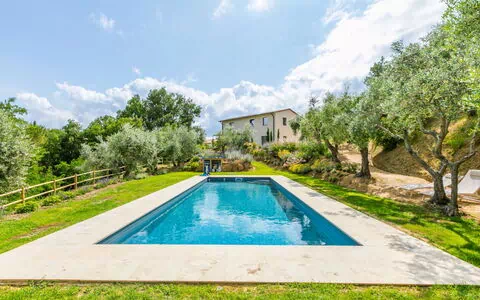 Montisi 15 km van Montalcino: Moderne, mooi huis "Villa Montisi", van 2 verdiepingen, bouwjaar 2020, omgeven door bomen en velden. 500 m van het centrum van Montisi, zonnige, verhoogde ligging in een woonwijk, te midden van groen. Voor alleengebruik: mooie tuin met bloemen en bomen, openluchtzwembad (4 x 12 m, 120 - 150 cm diepte, seizoensgebonden beschikbaarheid: 01.Mei. - 30.Sep.) met trap. Buitendouche, tuinmeubelen, barbecue, onderhoud zwembad door de eigenaar/tuinman. In het huis: air-conditioning, wasmachine, droger. Berging beschikbaar. Parkeerplaats bij het huis op het terrein. Winkel, levensmiddelenwinkel 500 m, supermarkt 10 km, restaurant 500 m, centrum te voet bereikbaar in 5 minuten, bushalte "Montisi" 500 m. Attracties in de buurt: Montalcino 23 km, Pienza 30 km, Montapulciano 25 km, Siena 50 km. Baby uitrusting (incl.). Groepen jongeren uitsluitend op aanvraag.