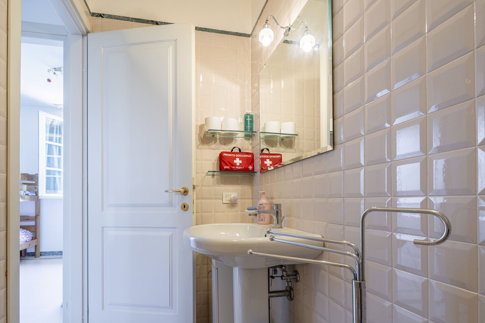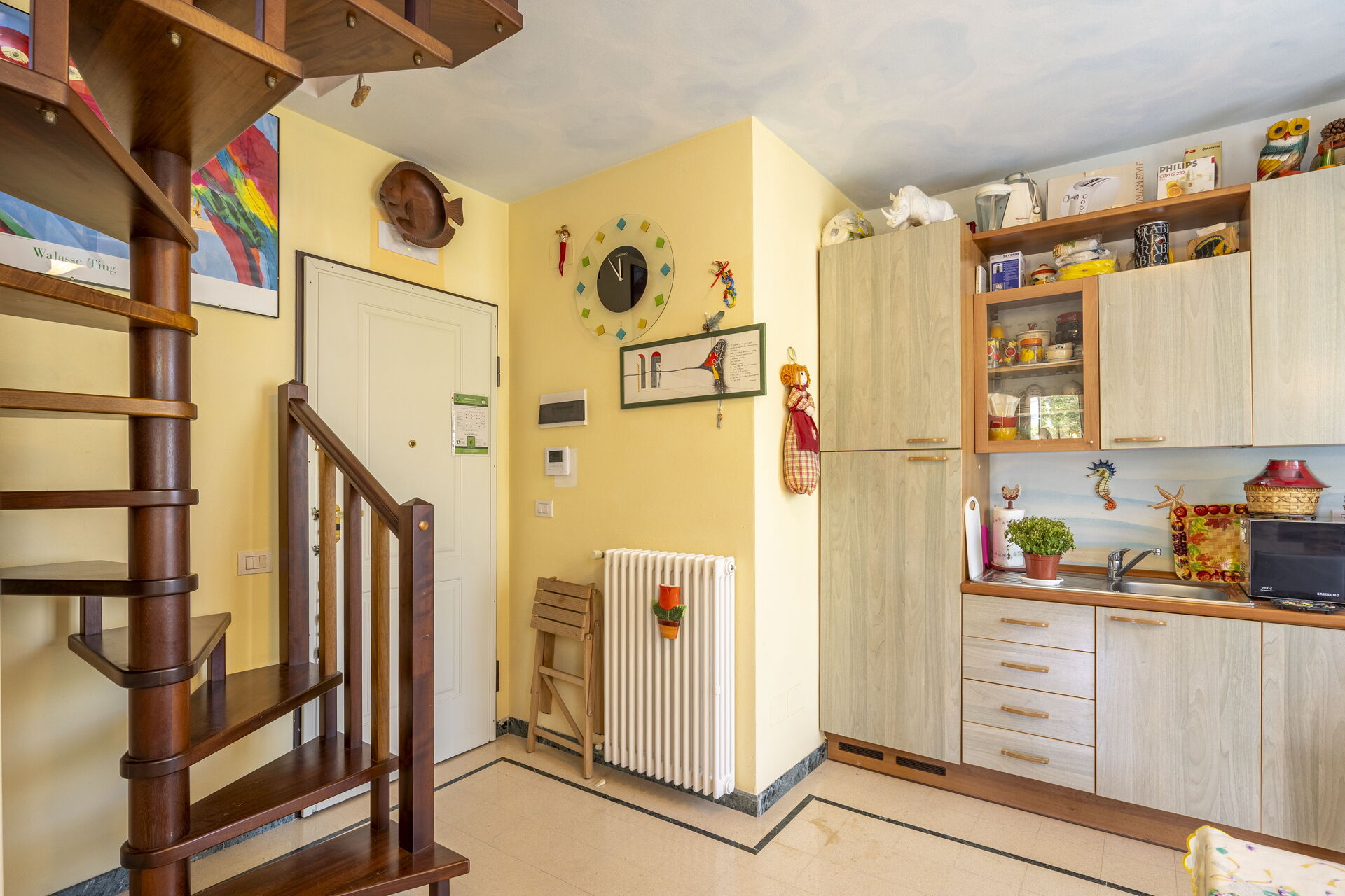 Keuken – woonkamer: goed uitgeruste keuken, eettafel, ijskast, diepvriezer, magnetron, kookplaat, oven, italiaans koffiezetapparaat, bank, WIFI internet, tv, uitgang naar het balkon.