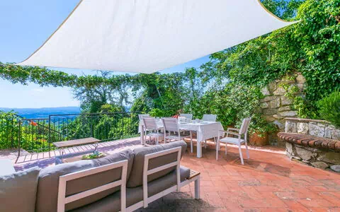 "Terrazza sul Chianti", halfvrijstaand huis 7-kamers 150 m2 op 3 verdiepingen. Ruim en licht, gerenoveerd in 2025, zeer smaakvol en gezellig ingericht: hal. Groot woonkamer met panoramavenster op het westen met open haard en TV (Flatscreen TV), air-conditioning. Uitgang naar het terras. Open eetkamer met kookhoek en air-conditioning. Uitgang naar de tuin. Groot, open keuken (oven, afwasmachine, Gasfornuis, 5 kookpitten (vlammen), broodrooster, waterkoker, magnetron, diepvriezer, elektrische koffiemachine, pads voor de koffiemachine (Nespresso) extra) met air-conditioning. Uitgang naar het terras. Aparte WC. Bovenverdieping: 1 groot 2-pers. kamer met douche/bidet/WC en TV (Flatscreen TV), air-conditioning. Uitgang naar het balkon. 2 2-pers. kamers, elke kamer heeft douche/bidet/WC en air-conditioning. 1 2-pers. kamer met air-conditioning. Douche/bidet/WC. 2e Verdieping: groot, open woon-/slaapkamer met afgeschuinde daken, hoogte van het plafond 100 - 220 cm met 1 bed (80 cm), 1 divanbed (130 cm), open haard (alleen decoratie), air-conditioning. Uitgang naar het balkon. Verwarming, air-conditioning. Parketvloeren, natuurstenen vloeren. Groot terras gedeeltelijk overdekt, op het westen gelegen, zithoek in de tuin. Terrasmeubelen, barbecue, bergruimte. Mooi panoramazicht op het landschap. Ter beschikking: wasmachine, kluis, strijkijzer, klamboe, kinderstoel, kinderbed tot 2 jaar, haardroger, haardhout (extra). Internet (WiFi, gratis). Parkeerplaats bij het huis. Geschikt voor families. Niet rokers woning. Privé ingang, rookmelders, brandblusser. IT052005C2MJMX9V8B