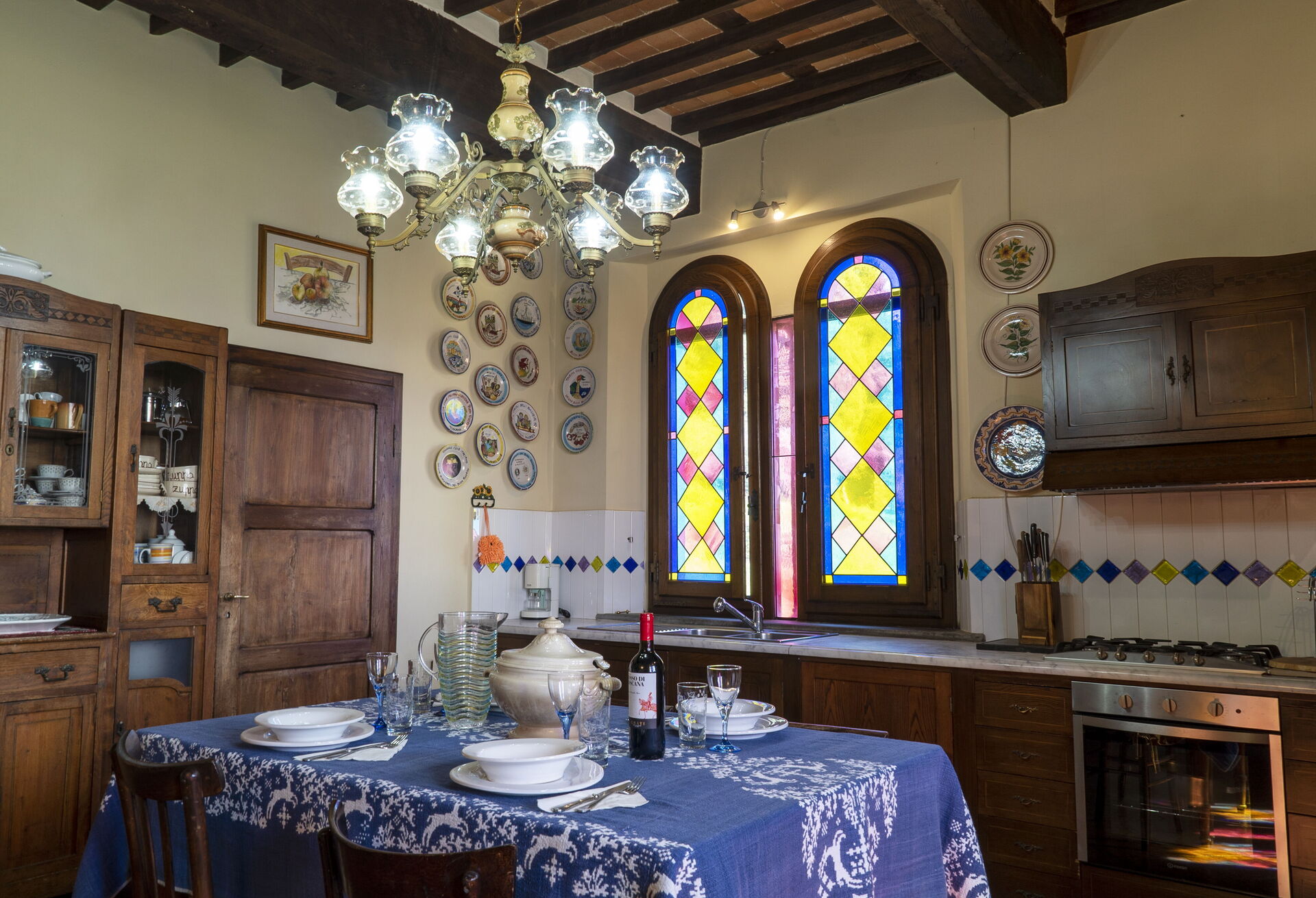 Zodra u aankomt vindt u een mooie, schone en goed onderhouden woning met uitzicht over de stad ideaal voor een geweldige vakantie in Toscane. Na een hectische dag toeren kunt u de tijd doorbrengen met vrienden en familie en genieten van een glaasje wijn - een perfecte manier om te uitrusten aan het einde van de dag. Eten met vrienden en familie is een grote onderdeel van de Toscaanse cultuur. Maak gebruik van de goed uitgeruste keuken om maaltijden te bereiden met lokale producten terwijl u op vakantie bent. De keuken biedt o.a. een koffiezetapparaat, broodrooster, fornuis en ijskast, en natuurlijk ook voldoende servies en bestek voor minstens zes personen.