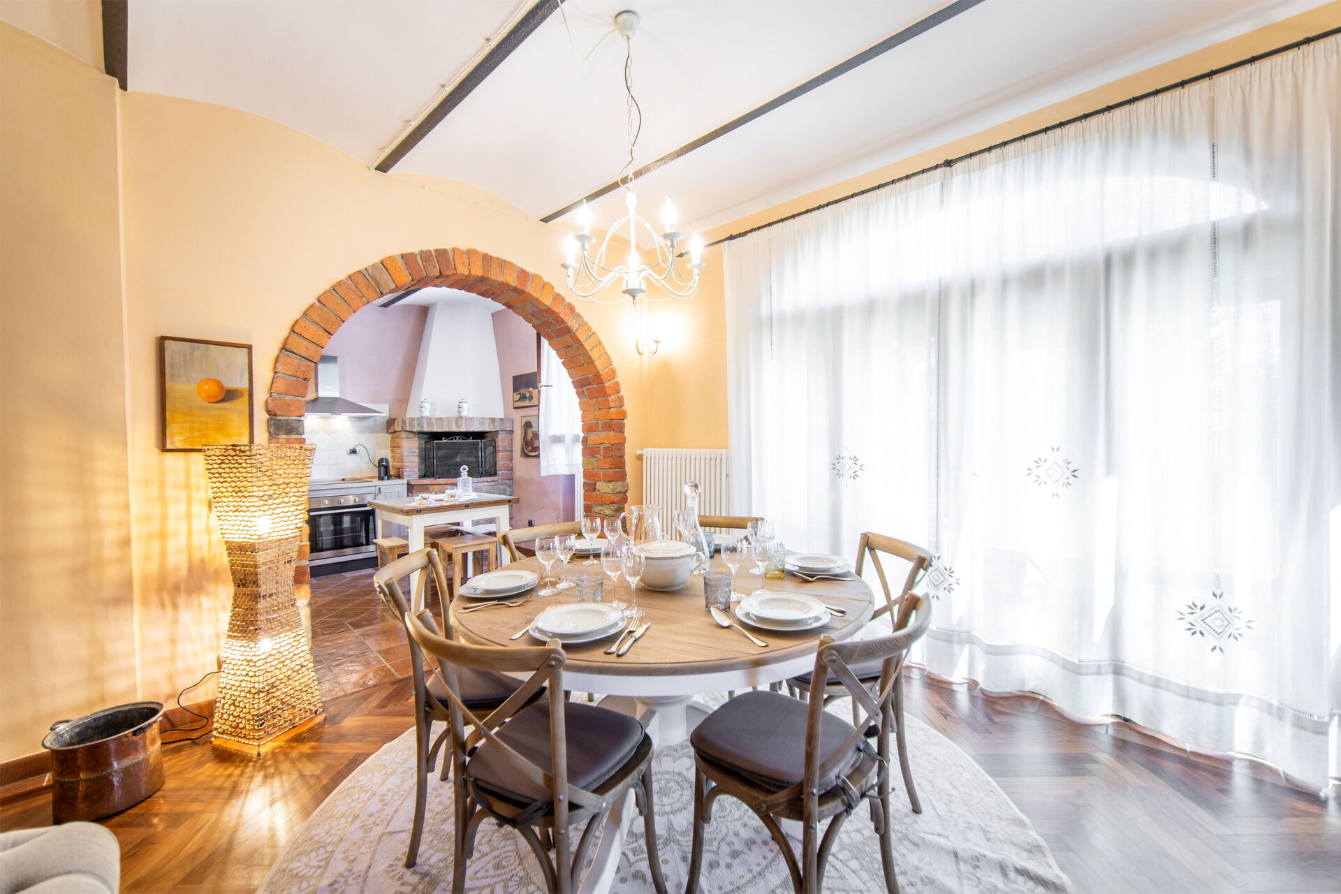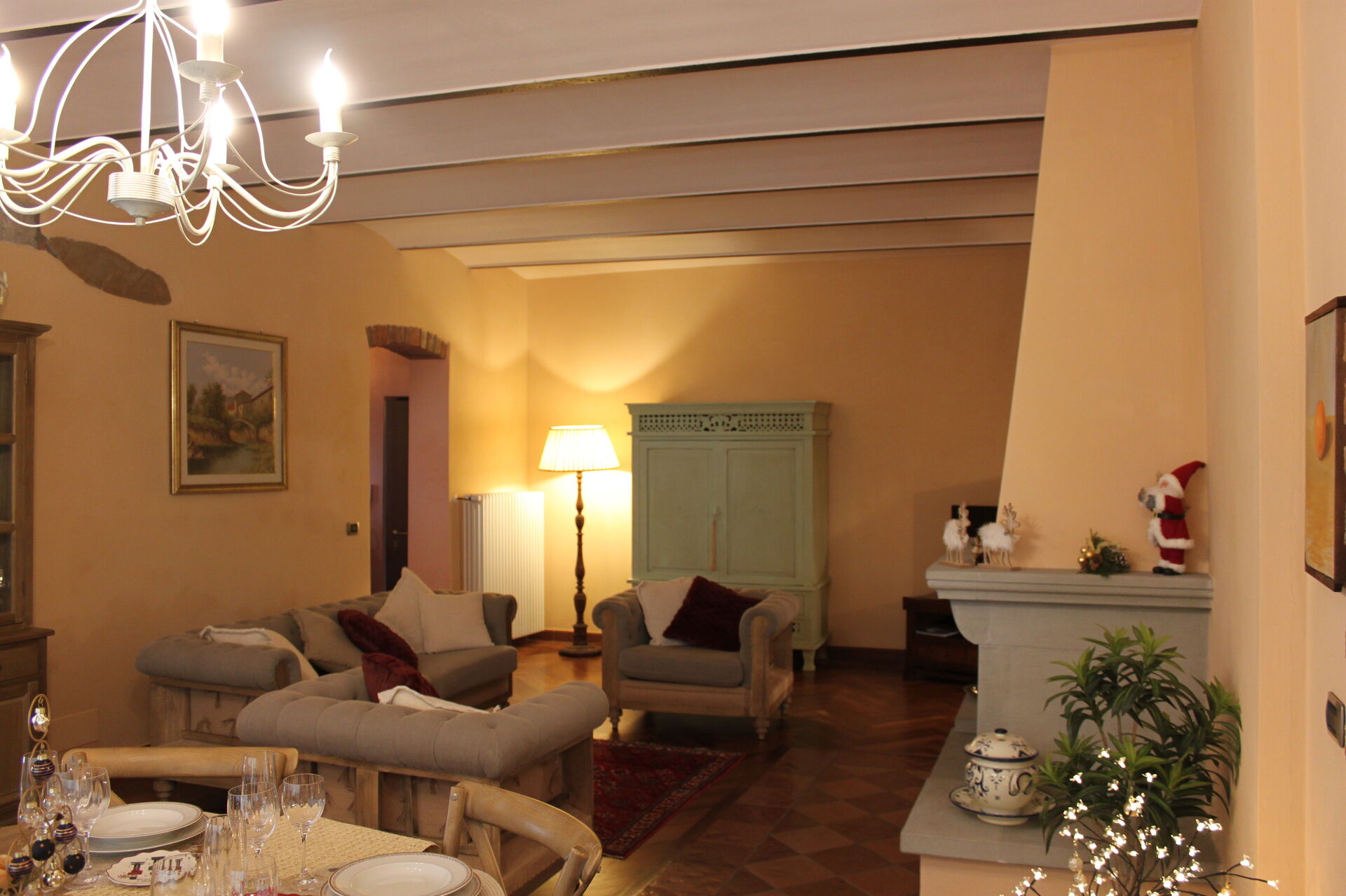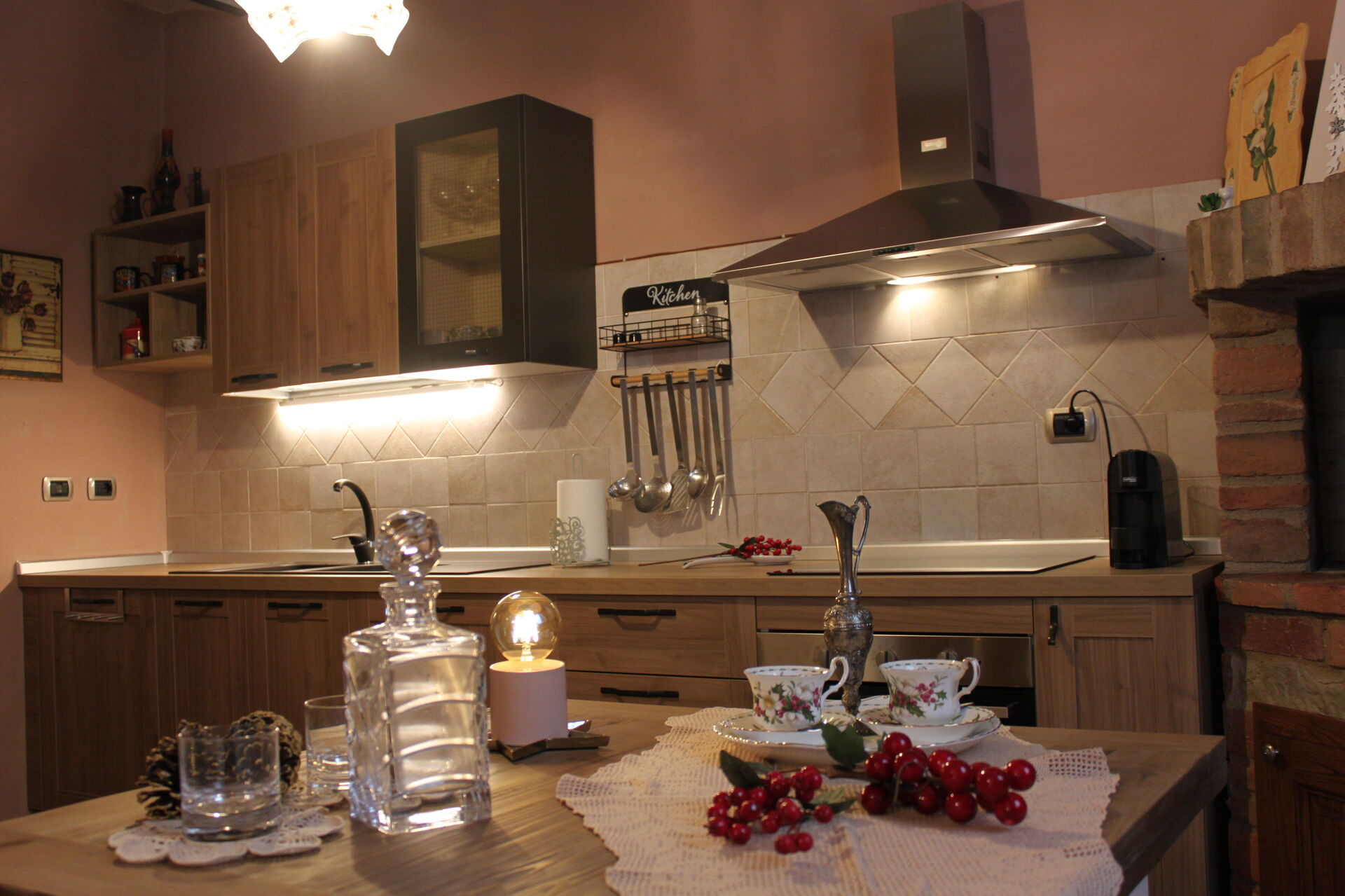 Keuken – woonkamer: goed uitgeruste keuken, eettafel, vaatwasser, ijskast, diepvriezer, magnetron, kookplaat, oven, broodrooster, italiaans koffiezetapparaat, koffiezetapparaat, bank, fauteuil, open haard, WIFI internet, internet, hor, kinderstoel, satelliet tv, uitgang naar de tuin.