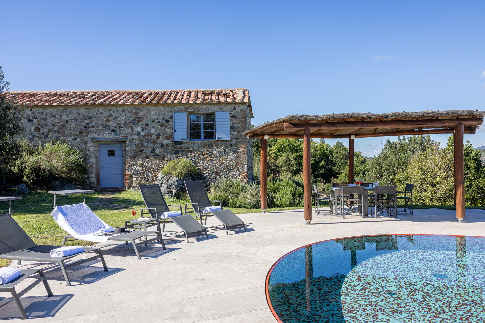 Tuin: zwembad (verwarmd), WIFI internet, barbecue, dineren in de buitenlucht, eettafel, tuinmeubilair, ligstoel.