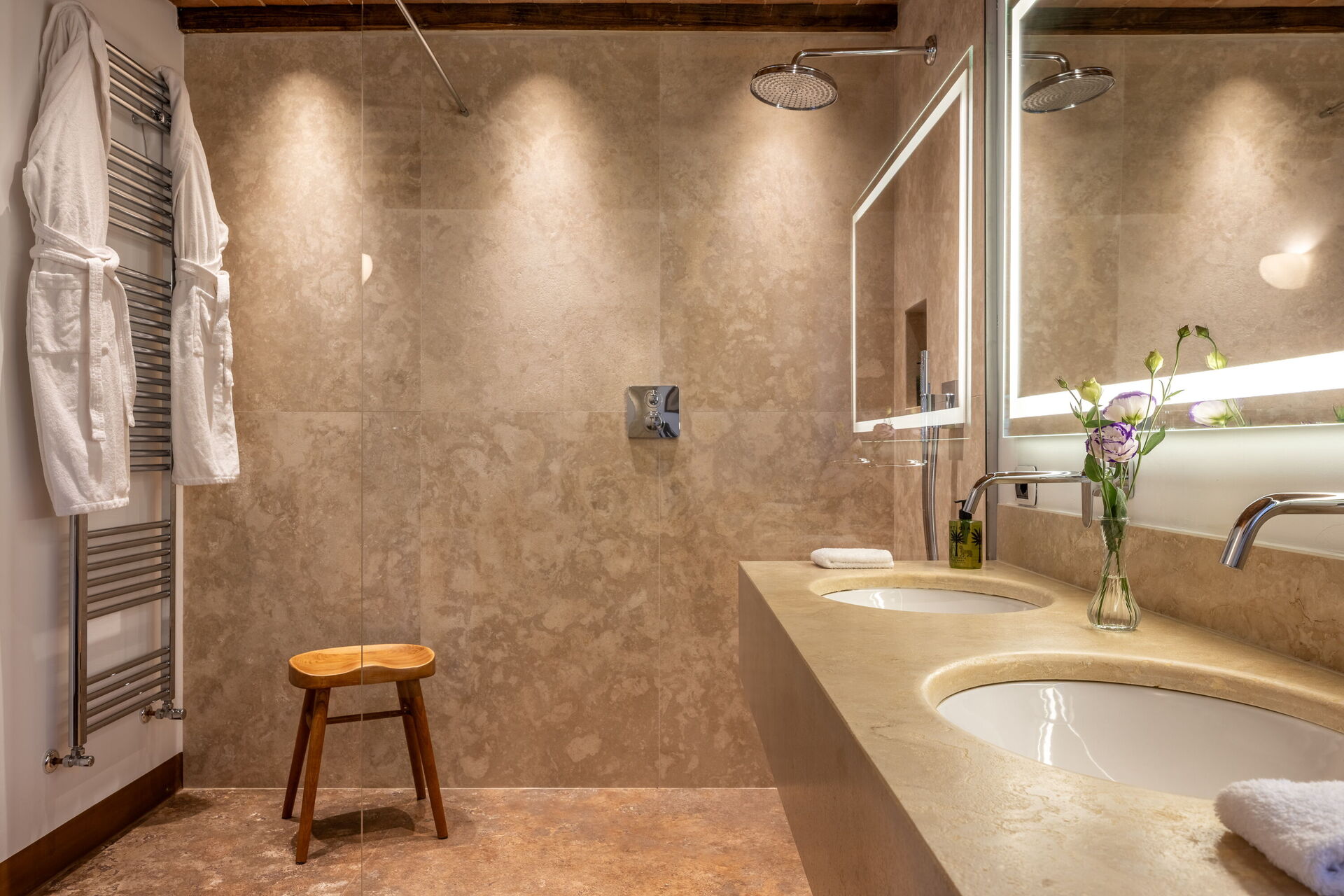 Er zijn twee bijgebouwen, elk met een tweepersoonsslaapkamer en een badkamer.
