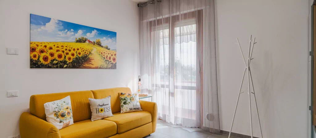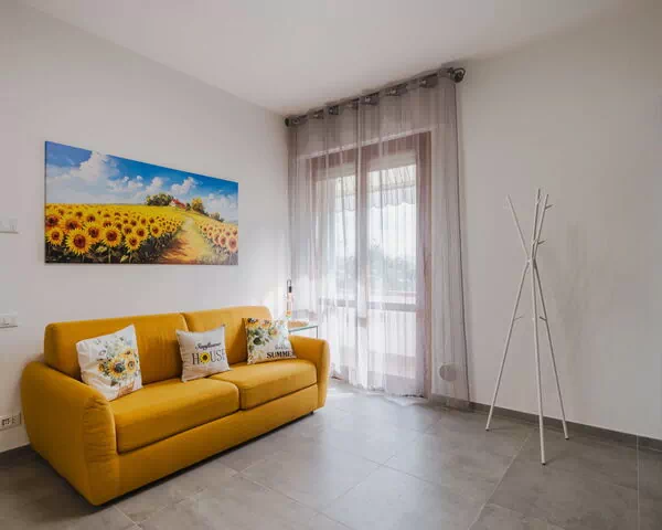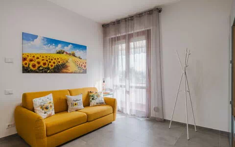 "Sunflower 2", appartement 4-kamers 95 m2 op de 1e verdieping. Comfortabel en gezellig ingericht: woon-/eetkamer met eettafel en TV (Flatscreen TV). Uitgang naar het balkon. 2 2-pers. kamers. 1 kamer met 1 x 2 stapelbedden. Kookhoek (afwasmachine, Gasfornuis, 4 kookpitten (vlammen), broodrooster, waterkoker, diepvriezer, elektrische koffiemachine). Uitgang naar het balkon. 2 douche/bidet/WC's. Gas-verwarming, air-conditioning. Verwarming alleen beschikbaar van 01.11. tot 07.04. 2 kleine balkons. Zitgelegenheid. Ter beschikking: wasmachine, strijkijzer, klamboe, haardroger. Internet (WiFi). Geschikt voor families. Rookvrij huis. Rookmelders, brandblusser, geen lift. IT046033C2DA6Y8FKM