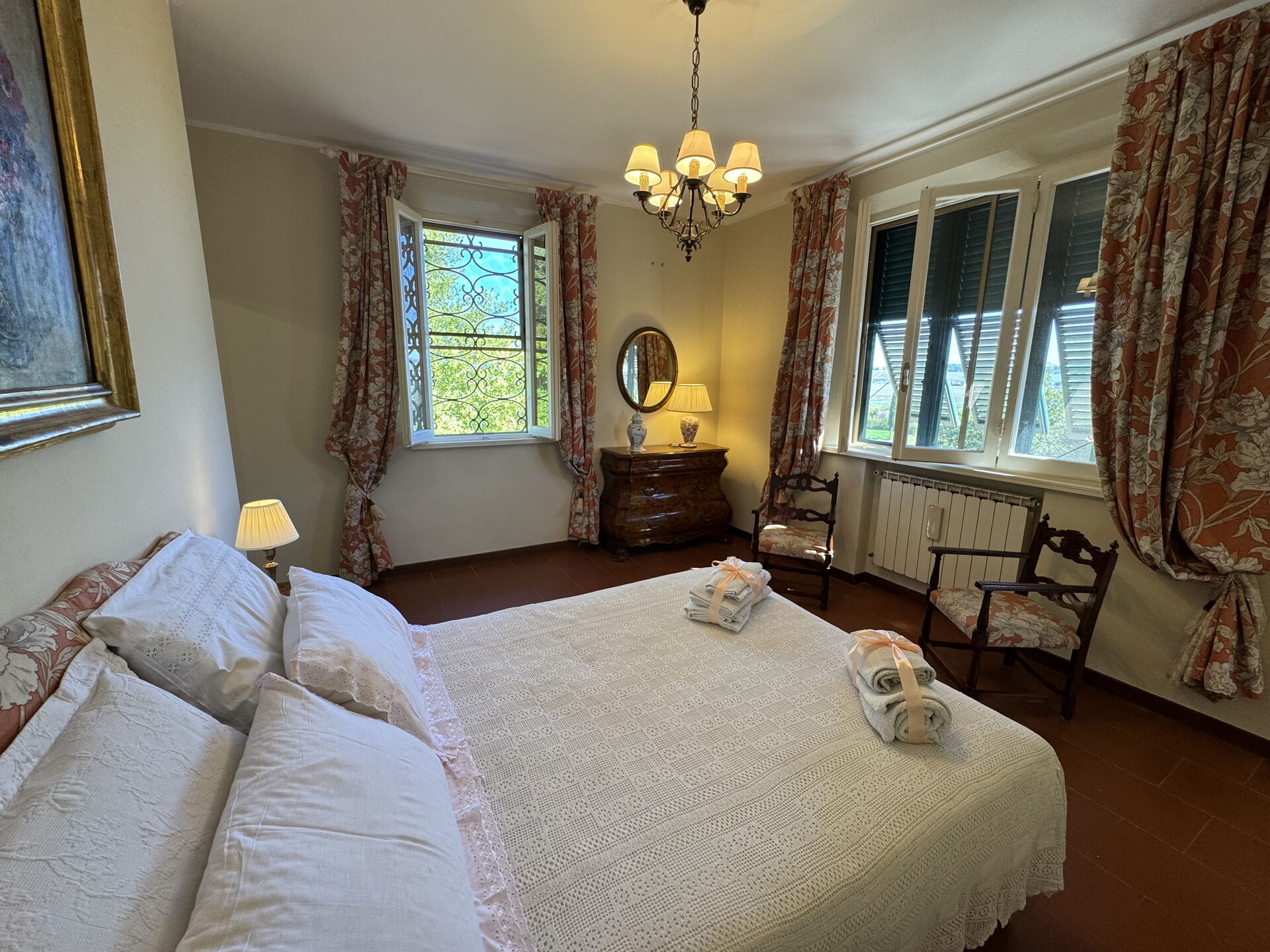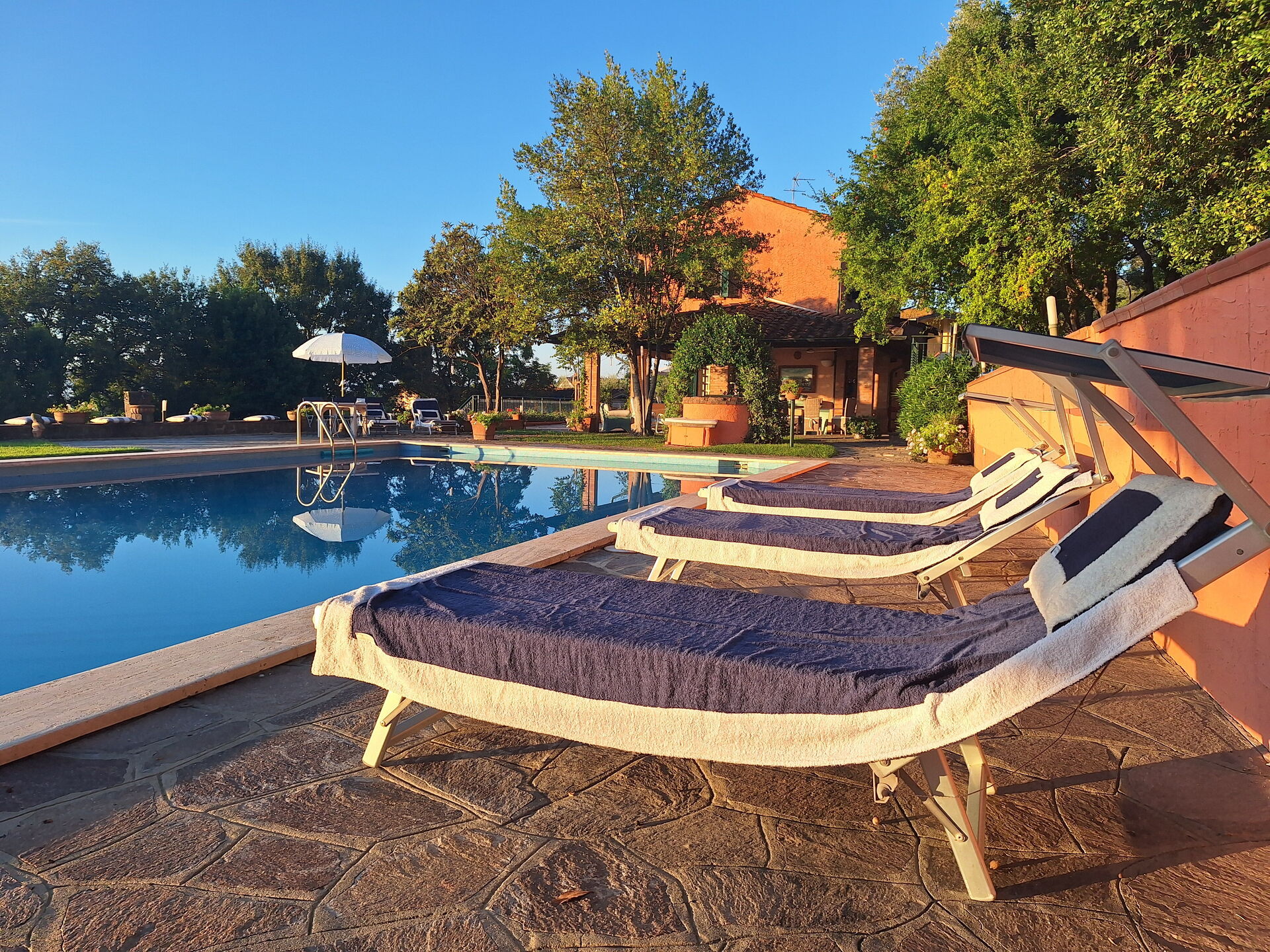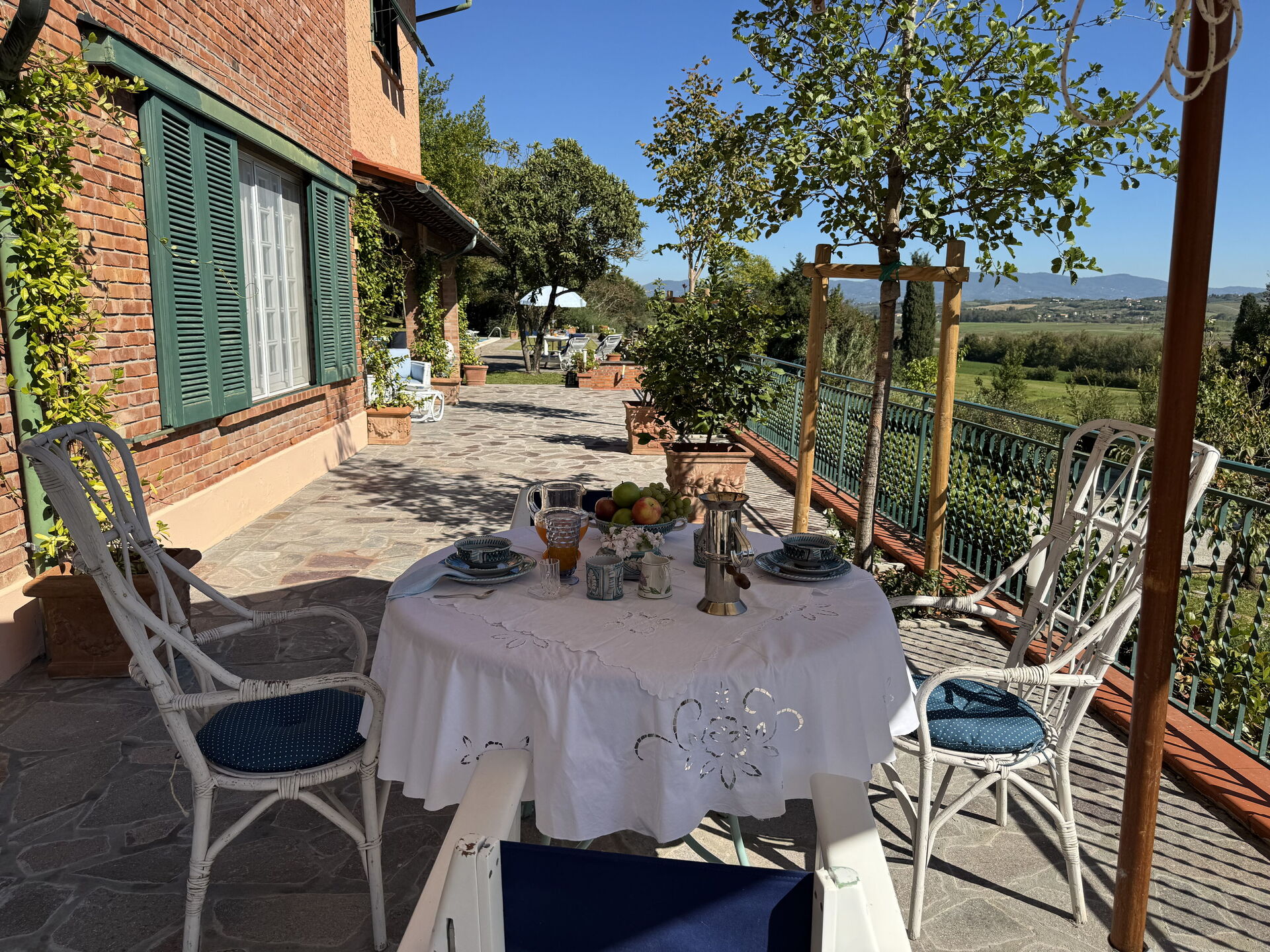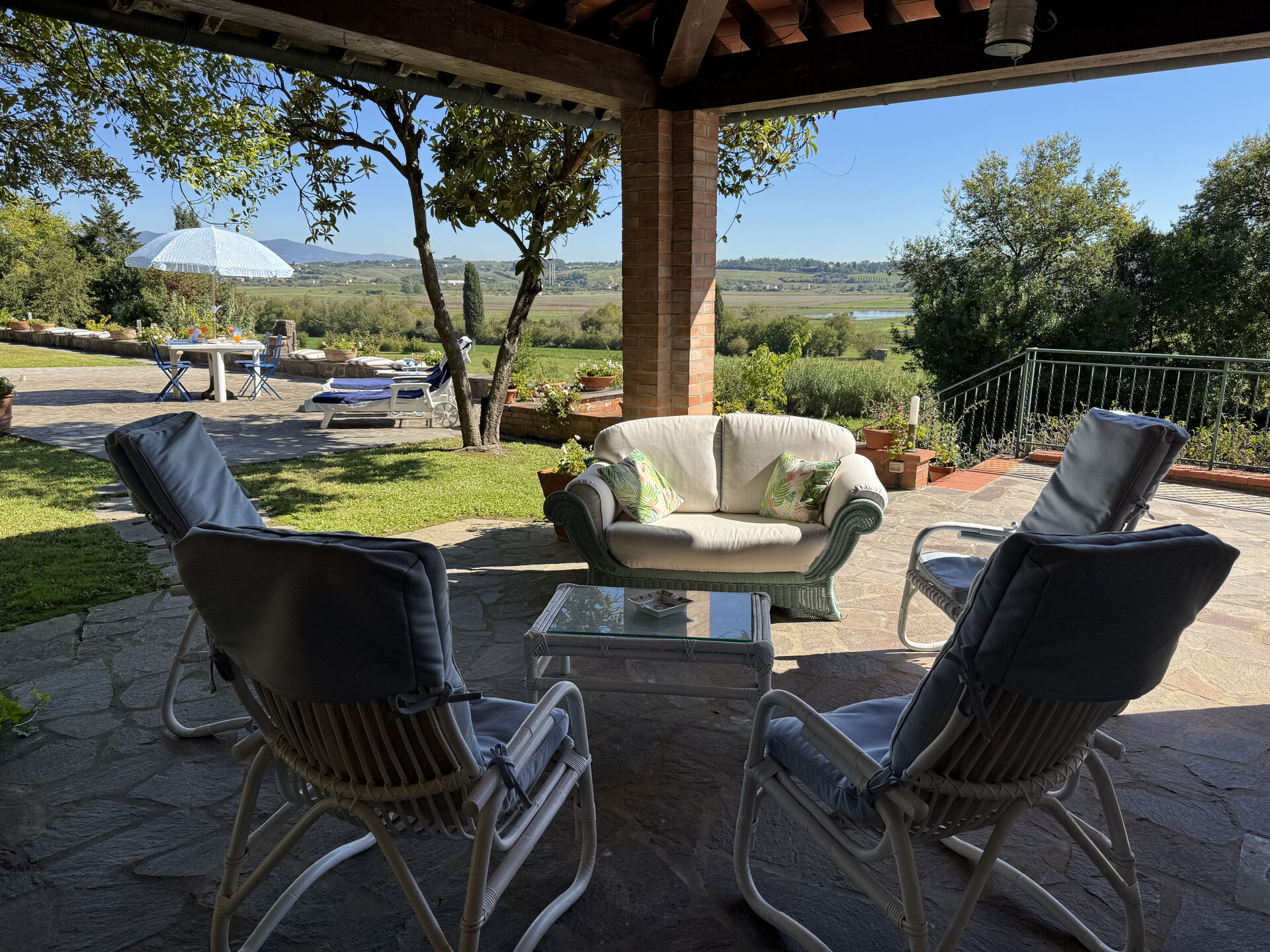 In the immediate vicinity are idyllic villages offering regional cuisine and numerous leisure activities, from hiking and cycling to wine tasting. Near the holiday home is a small private lake where you can fish (without a special permit) and enjoy other sporting activities such as tennis, archery and horse riding. The location is ideal: quiet but central for discovering the highlights of Tuscany – whether it's a stroll through the alleys of Volterra, a visit to Leonardo da Vinci's birthplace and museum in Vinci, a day trip to Florence or Siena, or a picnic in the middle of the vineyards. Family-friendly excursion destinations are also just a few kilometres away.