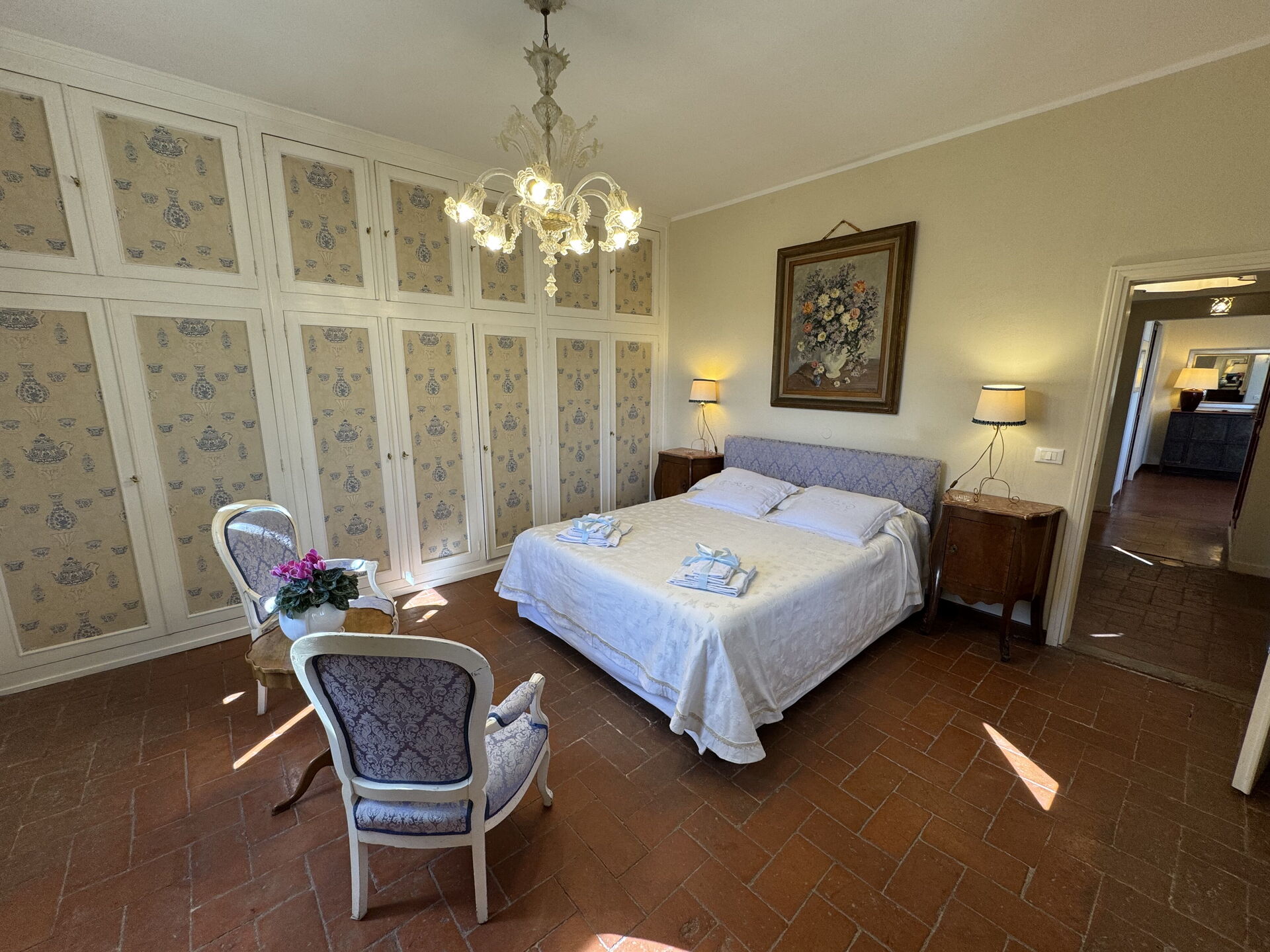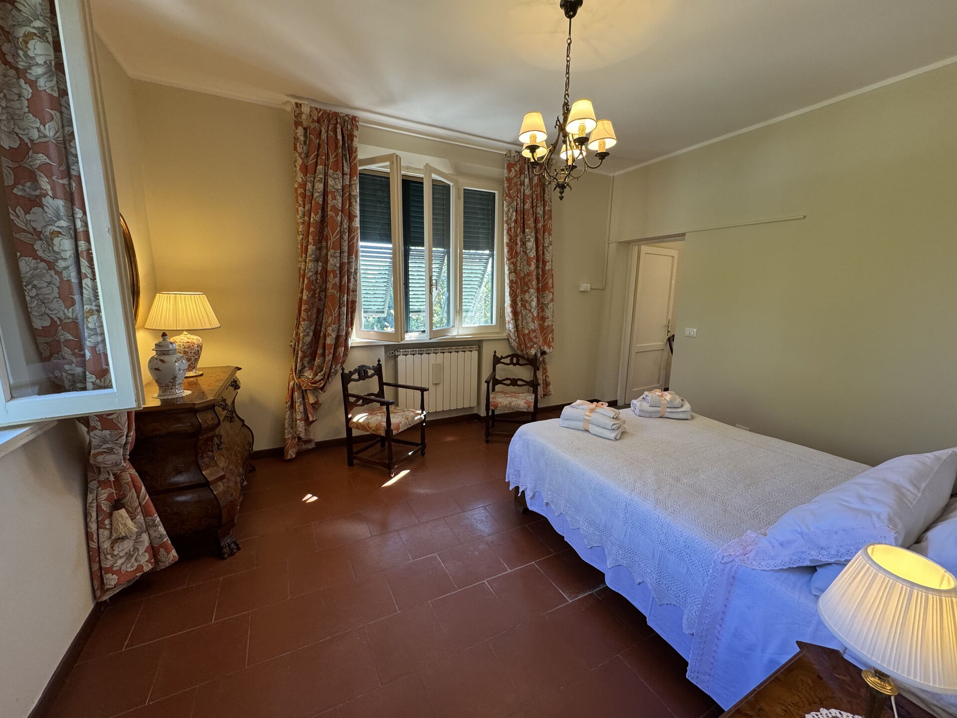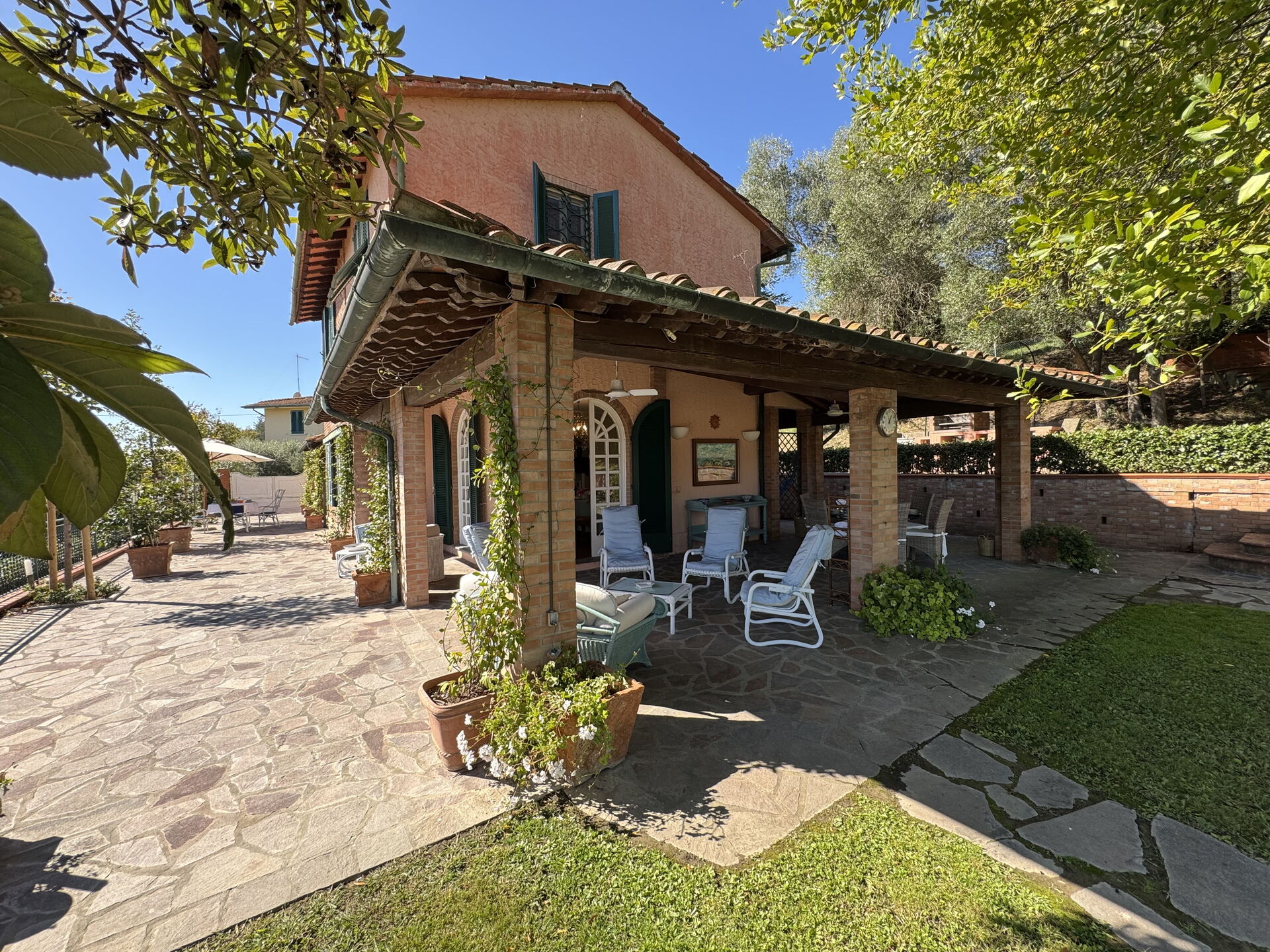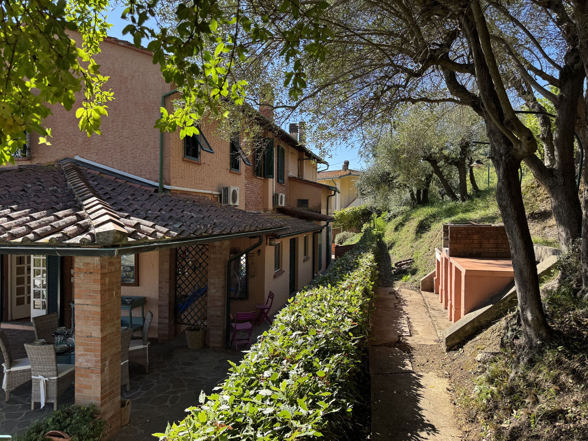 In the immediate vicinity are idyllic villages offering regional cuisine and numerous leisure activities, from hiking and cycling to wine tasting. Near the holiday home is a small private lake where you can fish (without a special permit) and enjoy other sporting activities such as tennis, archery and horse riding. The location is ideal: quiet but central for discovering the highlights of Tuscany – whether it's a stroll through the alleys of Volterra, a visit to Leonardo da Vinci's birthplace and museum in Vinci, a day trip to Florence or Siena, or a picnic in the middle of the vineyards. Family-friendly excursion destinations are also just a few kilometres away.