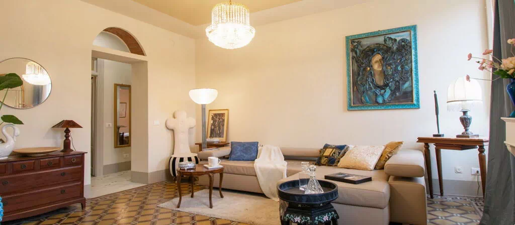"Deco Lux", appartement 5-kamers 110 m2 op de 3e verdieping. Luxueus en stijlvol ingericht: woonkamer met open haard (alleen decoratie), Digitale TV en air-conditioning. 2 2-pers. kamers, elke kamer heeft air-conditioning. 1 2-pers. kamer met douche/bidet/WC en air-conditioning. (oven, afwasmachine, 4 inductiekookplaten, broodrooster, waterkoker, elektrische koffiemachine). Douche/bidet/WC. Mooi uitzicht op de stad. Ter beschikking: wasmachine, droger, kinderstoel, kinderbed tot 2 jaar, haardroger. Internet (WiFi, gratis). Rookvrij huis. Maximaal 1 huisdier/hond toegestaan. Rookmelders, brandblusser. IT046017C2ZD2TQZ36