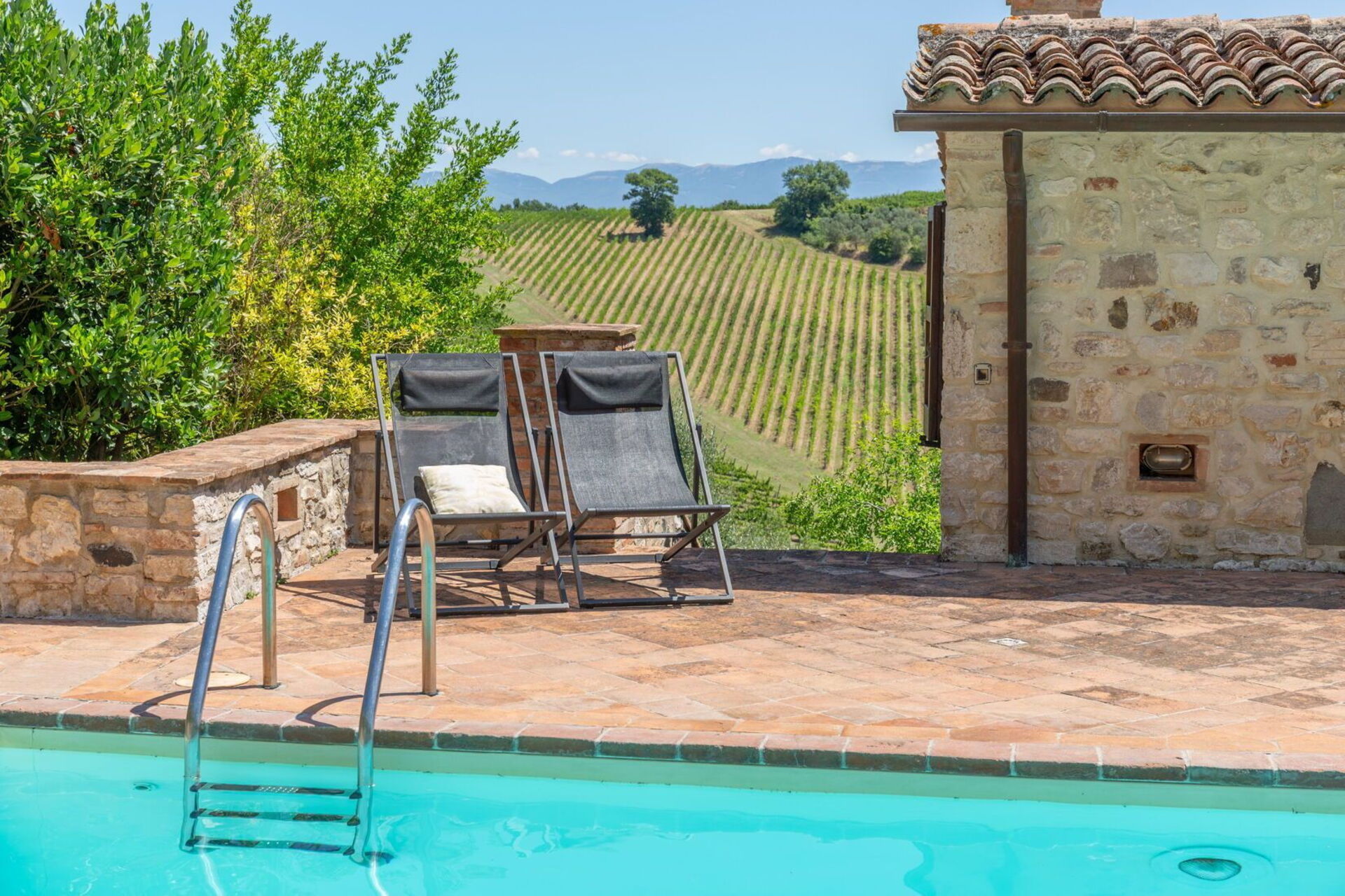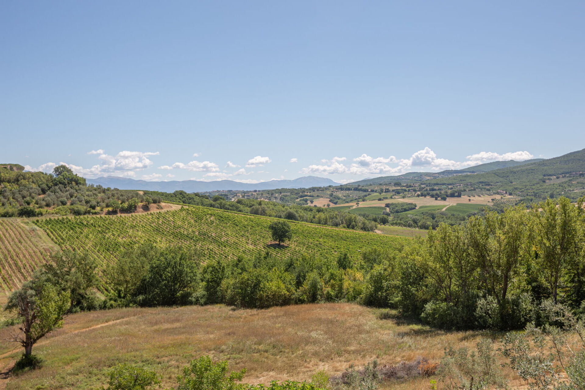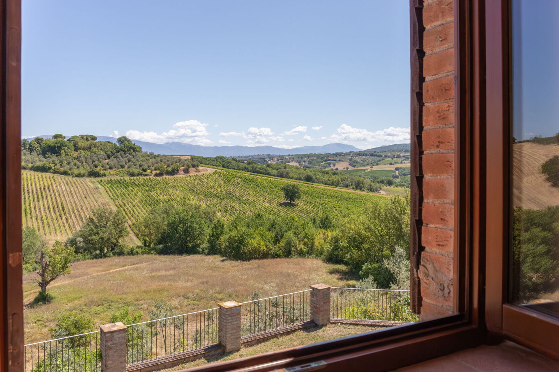 Casale Nido is set in a panoramic, south-facing position, offering stunning views of the Martani Mountains and the renowned Sagrantino DOC vineyards. Easily accessible via a short stretch of well-maintained country road, the property ensures excellent privacy without being isolated — essential services are just a few minutes away.
