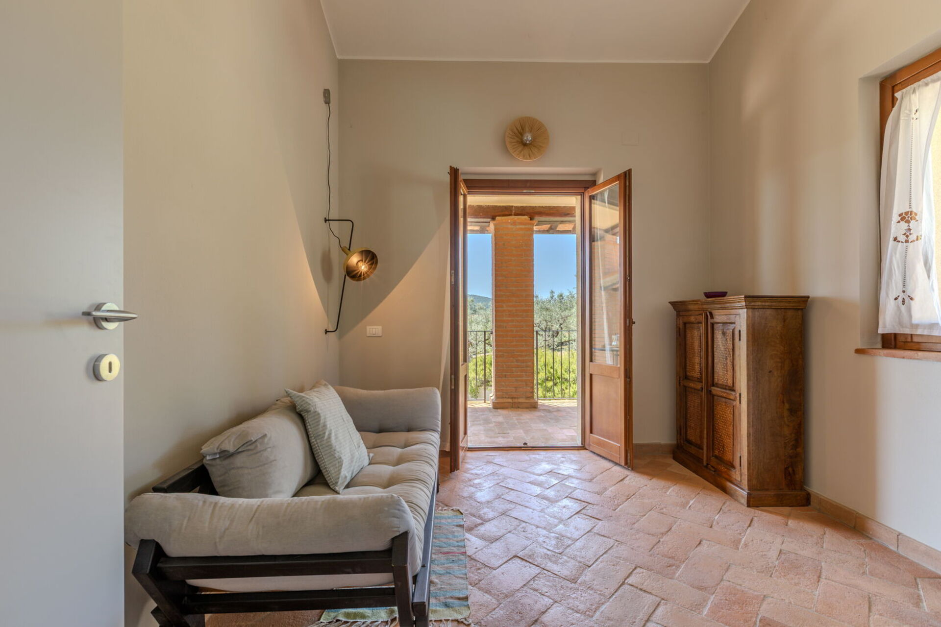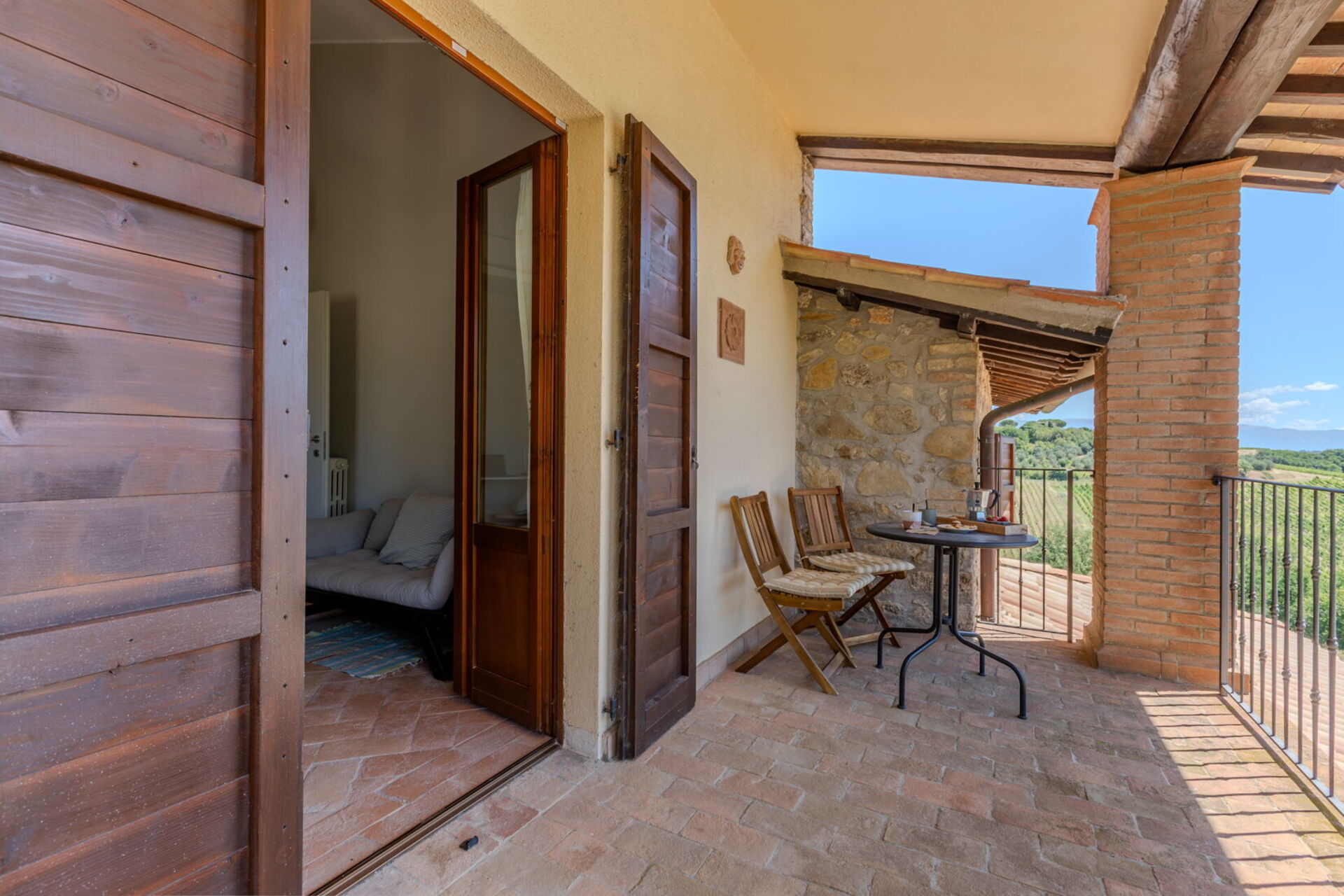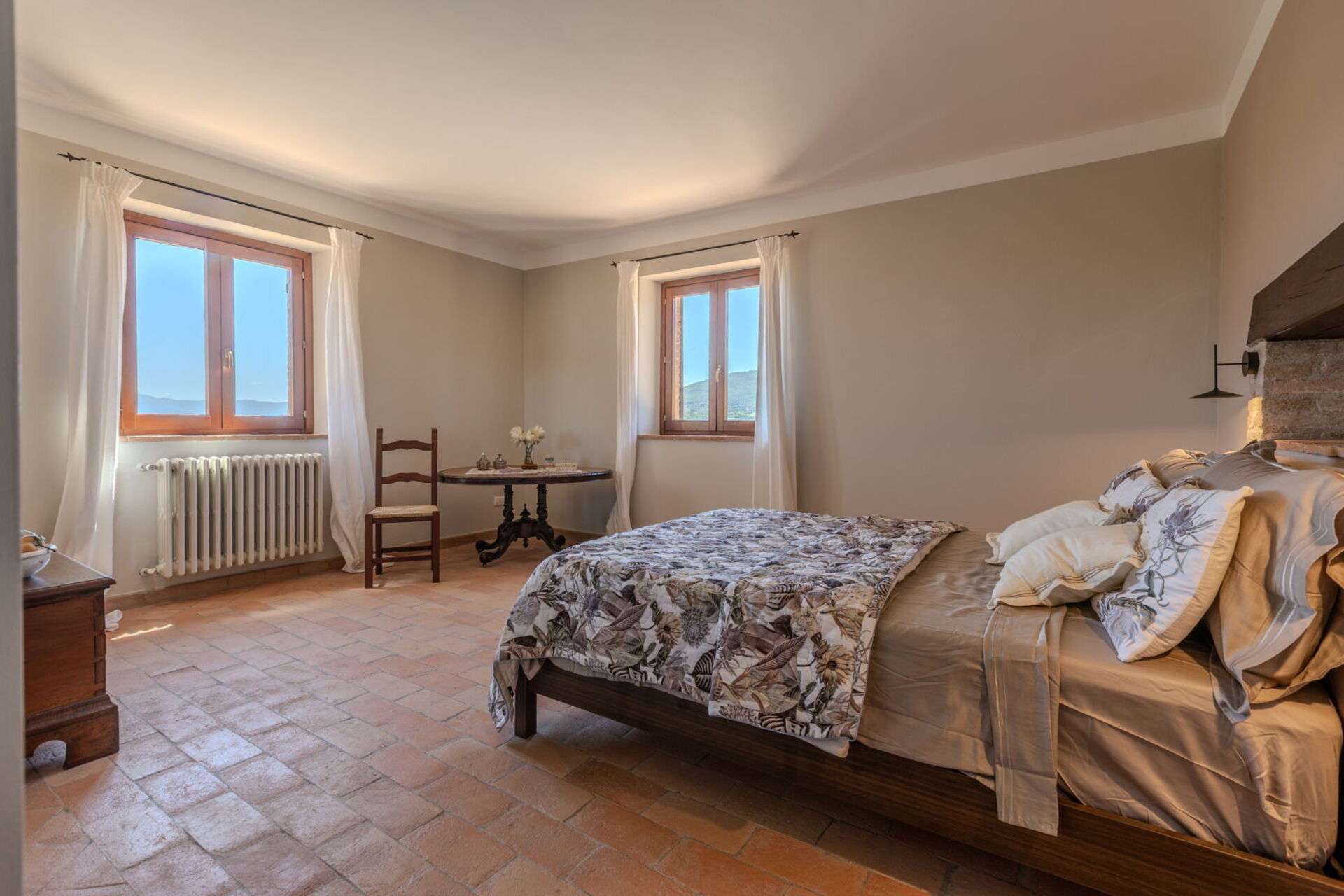 Casale Nido is set in a panoramic, south-facing position, offering stunning views of the Martani Mountains and the renowned Sagrantino DOC vineyards. Easily accessible via a short stretch of well-maintained country road, the property ensures excellent privacy without being isolated — essential services are just a few minutes away.