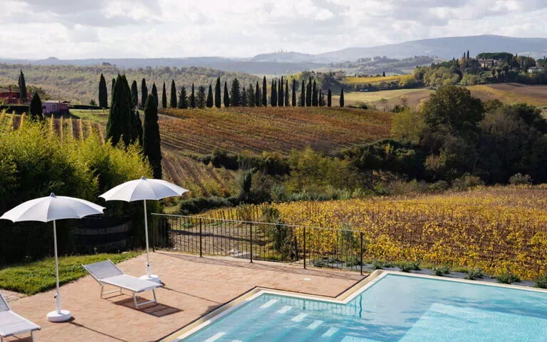 "Podere Galieni", 8-kamers cottage 250 m2 op 3 verdiepingen. Ruim en licht, volledig gerenoveerd in 2025, zeer comfortabel en smaakvol ingericht: woon-/eetkamer met eettafel en kookhoek. Uitgang naar de tuin. Groot eetkamer met panoramavenster met air-conditioning. Uitgang naar het terras, naar het zwembad. 1 kamer met 1 bed (80 cm, lengte 200 cm), 1 2-pers bed, douche/bidet/WC en TV (Flatscreen TV), air-conditioning. Keuken (oven, afwasmachine, broodrooster, waterkoker, magnetron, elektrische koffiemachine). Aparte WC. Souterrain: 2 douche/WC's. Bovenverdieping: (buitentrap), 2 2-pers. kamers, elke kamer heeft douche/bidet/WC en TV (Flatscreen TV), air-conditioning. 1 kamer met 1 bed (80 cm, lengte 200 cm), 1 2-pers bed, douche/bidet/WC en TV (Flatscreen TV), air-conditioning. Uitgang naar het terras. 2 kamers, elke kamer heeft 1 bed (80 cm, lengte 200 cm), 1 2-pers bed, douche/bidet/WC en TV (Flatscreen TV), air-conditioning. Verwarming, air-conditioning. Groot terras overdekt, zithoek in de tuin. Terrasmeubelen, ligstoelen, bergruimte. Zeer mooi panoramazicht op het landschap en San Gimignano. Ter beschikking: wasmachine, strijkijzer, klamboe, kinderstoel, kinderbed tot 2 jaar, haardroger. Internet (WiFi, gratis). Parkeerplaats bij het huis. Niet rokers woning. Rookmelders, brandblusser. Geen interne verbinding tussen de aparte wooneenheden. Geen interne verbinding tussen de etages. Het zwembad genoemd in de beschrijving is voor privé gebruik.
