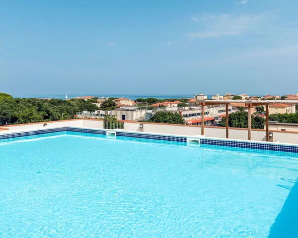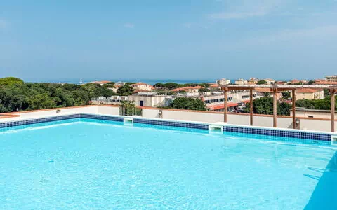 Het gemeenschappelijke zwembad meet 10 x 10 meter en is beschikbaar van 15 mei tot 15 oktober. Een buitendouche is aanwezig op het terrein. De uitgestrekte gemeenschappelijke tuinen beslaan 10.000 m² en bieden ruime open ruimtes waar gasten kunnen ontspannen en genieten van het warme kustklimaat.