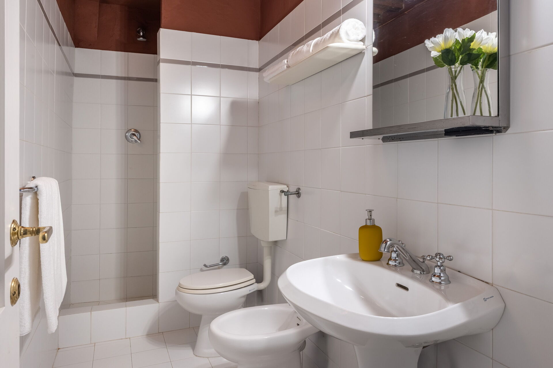 Badkamer: wastafel, toilet , bidet, douche, haardroger.