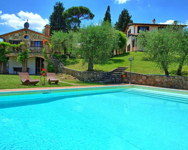 Villa Ulivi is gelegen op de top van een kleine heuvel, in het prachtige ongerepte Toscaanse landschap dichtbij Arezzo. De vakantievilla ligt op loopafstand van het charmante, middeleeuwse stadje Lucignano. Dit prachtige privé-eigendom met 6 slaapkamers en 7 badkamers verdeeld over het hoofdgebouw en het bijgebouw, biedt een fantastisch uitzicht over de Val Di Chiana vanaf de terrassen en tuinen. De villa is onlangs volledig gerenoveerd, ingericht in een klassieke Toscaanse smaak en biedt toch alle moderne gemakken.