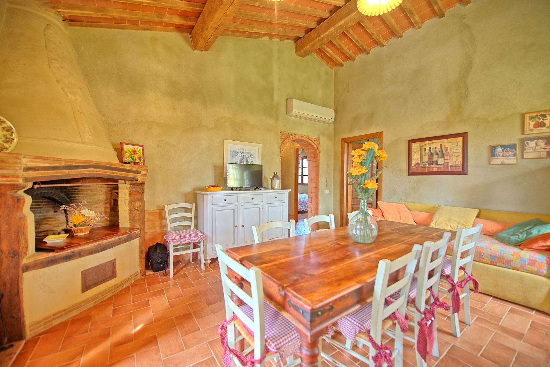 1° verdieping: ruime woon/eetkamer (sat-TV) met open haard en kookhoek (diepvriezer, oven, vaatwasser), 3 slaapkamers met tweepersoonsbed met eenpersoons-slaapfauteuil in elke kamer (kluisje), badkamer met douche (haardroger), WC (zonder raam). Eigen zitplaats buiten.