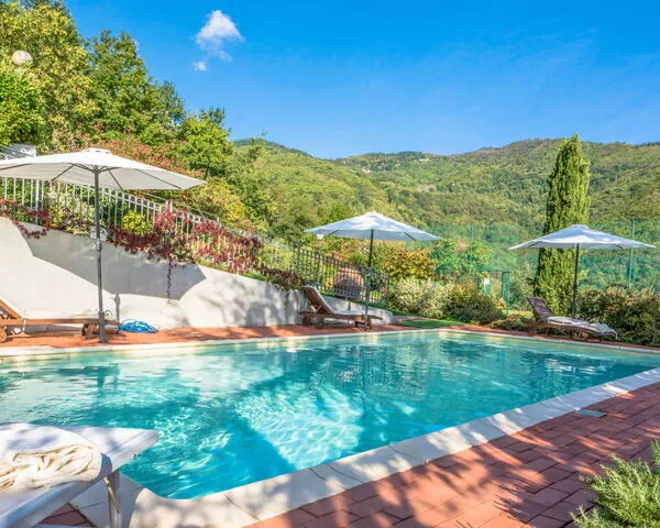 Villa Campo del Mulino ligt in de groene heuvels van Pistoia, op 400 meter hoogte. De vrijstaande villa biedt een panoramisch uitzicht over het Toscaanse landschap en staat op een omheind terrein van 15.000 vierkante meter, wat volledige privacy en afzondering garandeert. De ligging op een zonnige heuvel maakt dit een rustig en herstellend toevluchtsoord.
