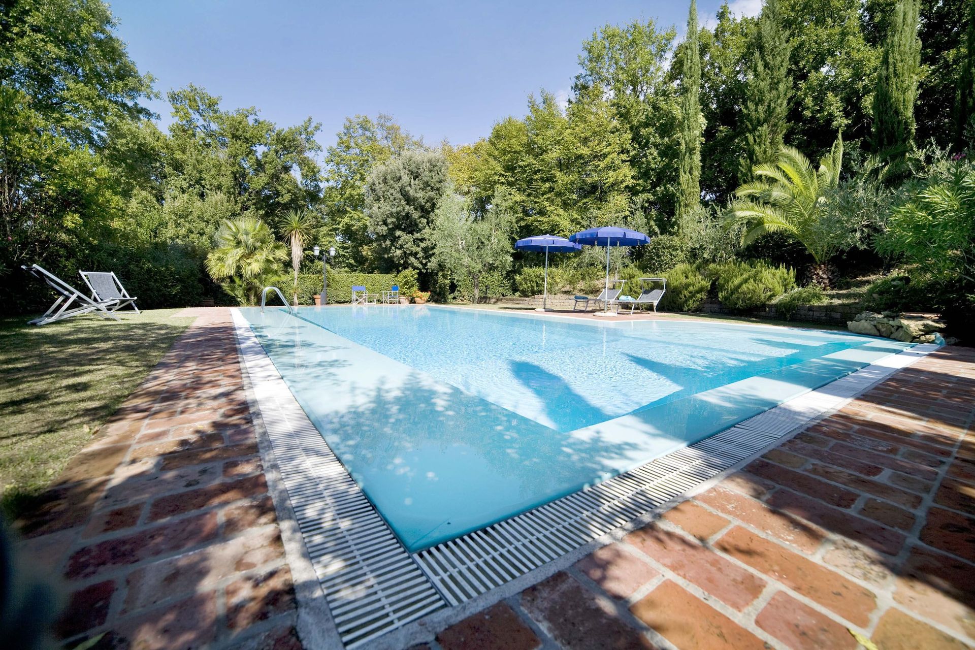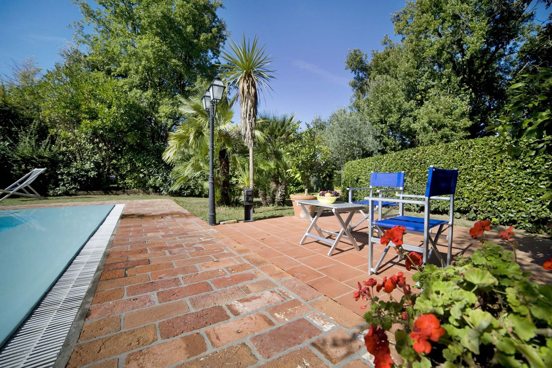 Het huis, dat op hetzelfde landgoed gelegen is als het huis Le Rondini (ook in ons programma), is omgeven door een zeer grote en goed onderhouden vlakke tuin, waar een ongewoon groot zwembad voor zo'n klein huis is gelegen. Het zwembad heeft een zout waterfiltersysteem (dus geen chloor). De tuin is rondom omheind en dus veilig voor kinderen, en er is ook een kinderspeelplaats.
