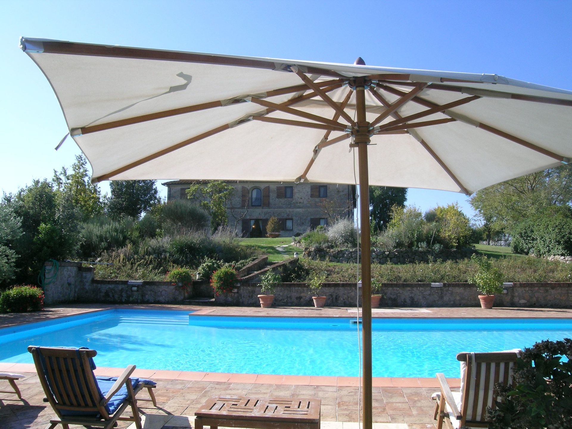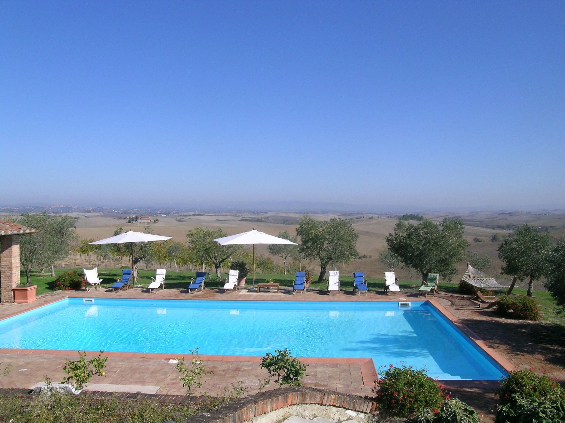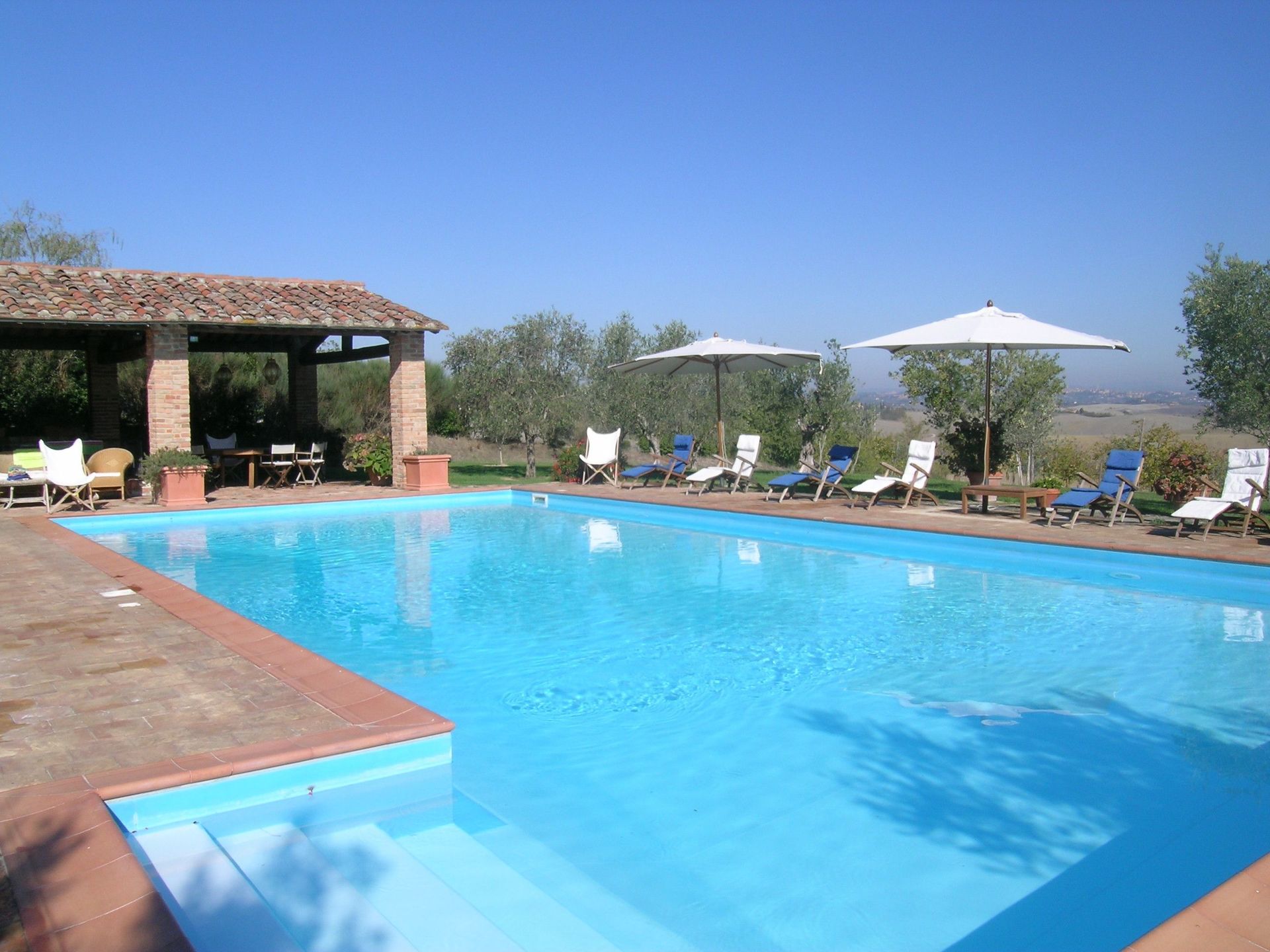 Mooi en groot landhuis met dependance en privé zwembad, volstrekt rustig gelegen midden op een groot landgoed met magnifiek uitzicht over de Crete Senesi met de stad Siena aan de horizon. De villa is zorgvuldig en met smaak gerestaureerd en nu een schitterend landhuis voor een groep van 14 personen.